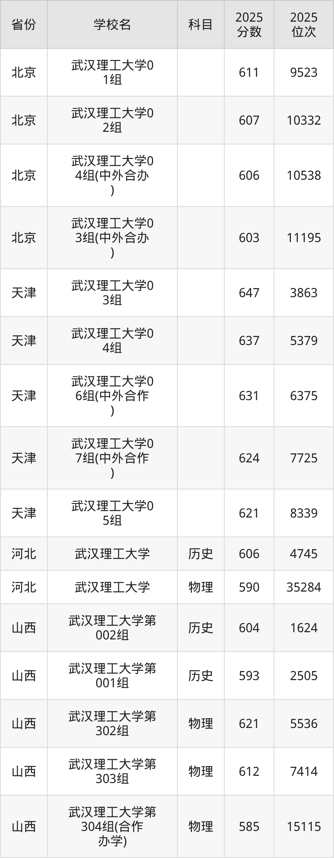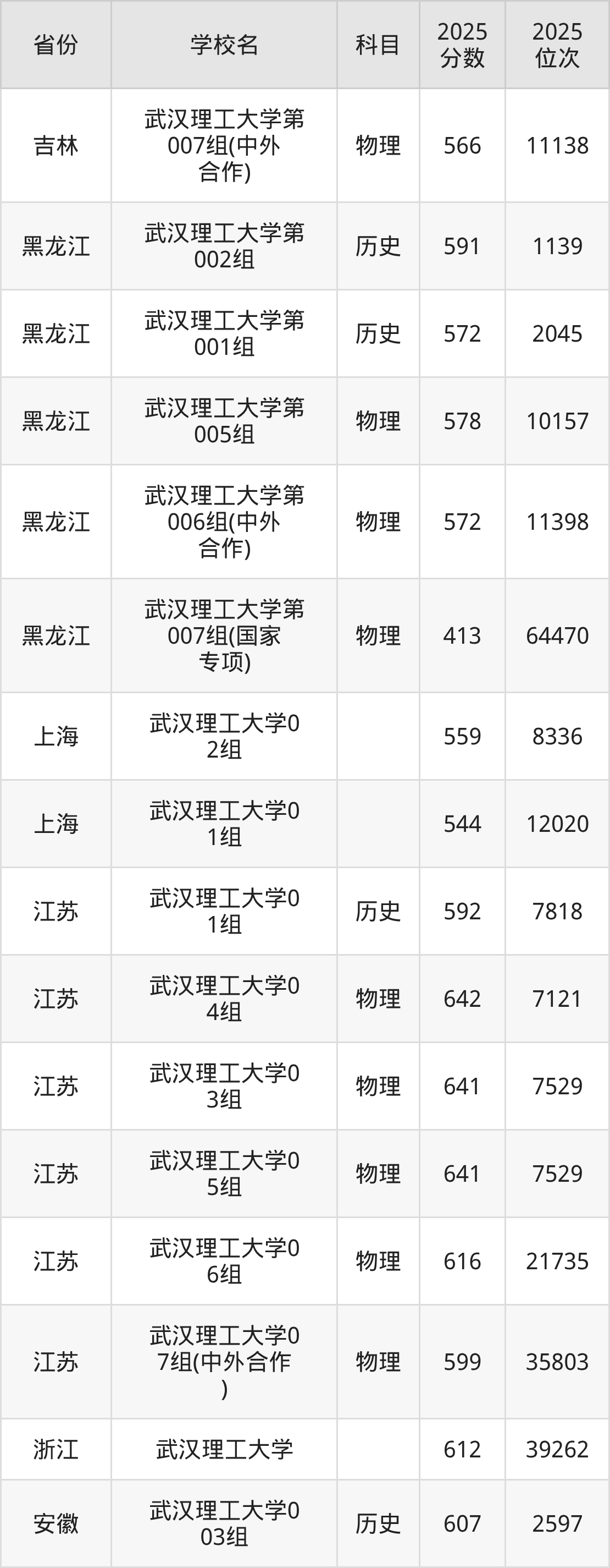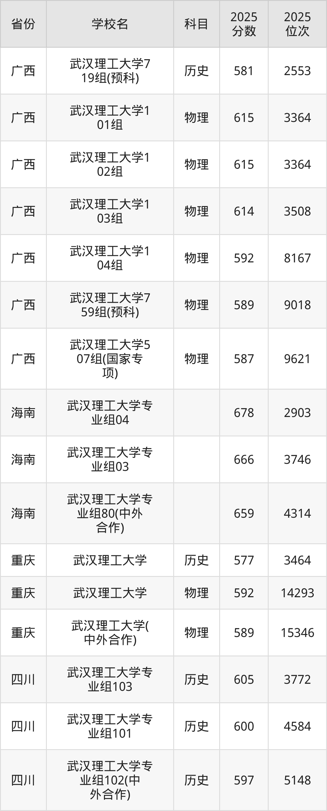 下面是武汉理工大学2025年录取分数线各省汇总,一起来了解下吧。