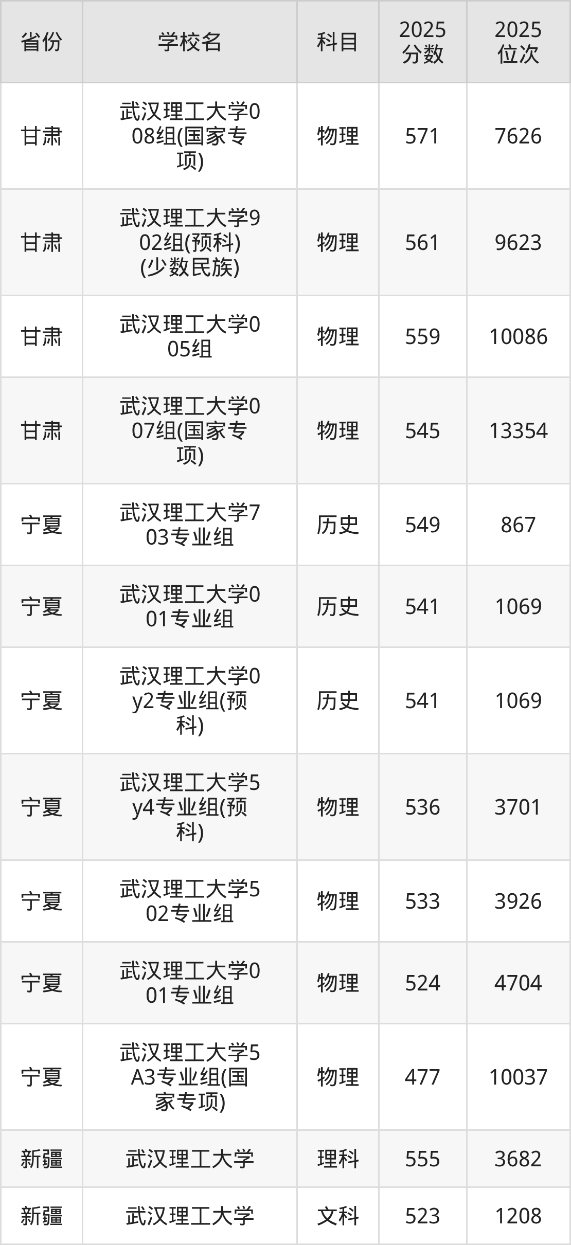 | 武汉理工大学第 18组(国家专 项) | 物理 | 604 | 12636 |