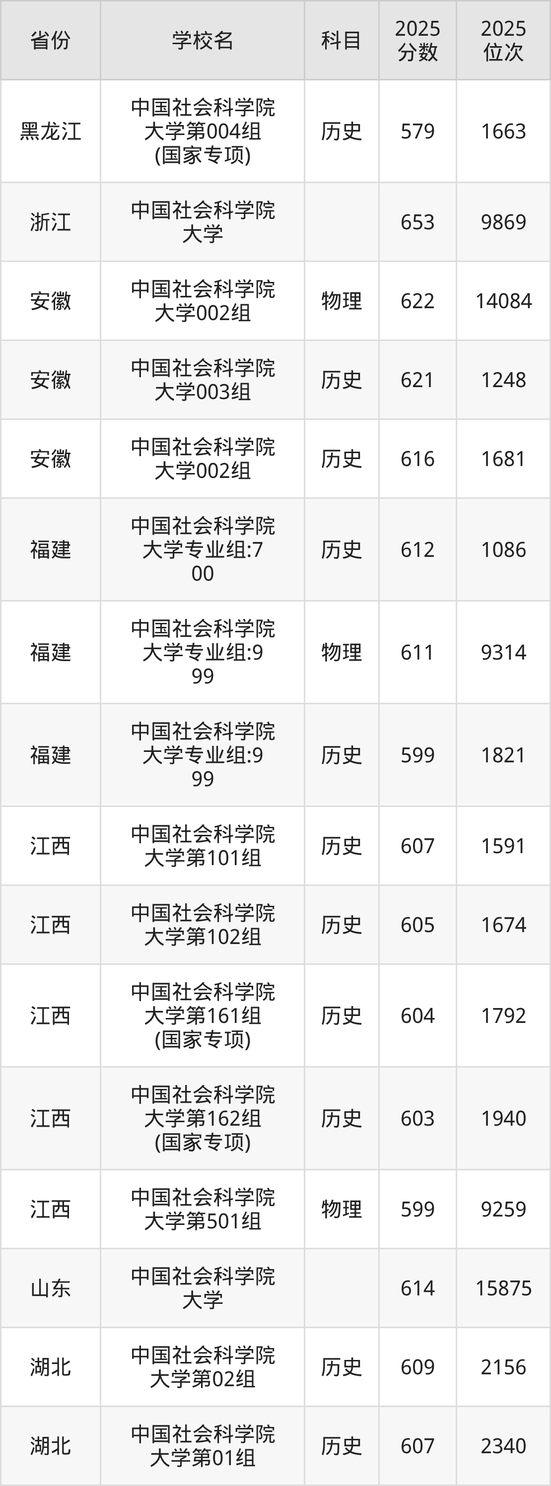 2026年中国社会科学院大学录取分数线预计在600分及以上,在各省录取最低分存在一定差异,如:2025年中国社会科学院大学在江西录取最低历史类603分、物理类599分,在湖北录取最低历史类601分、物理类595分,在湖南录取最低历史类597分、物理类601分。