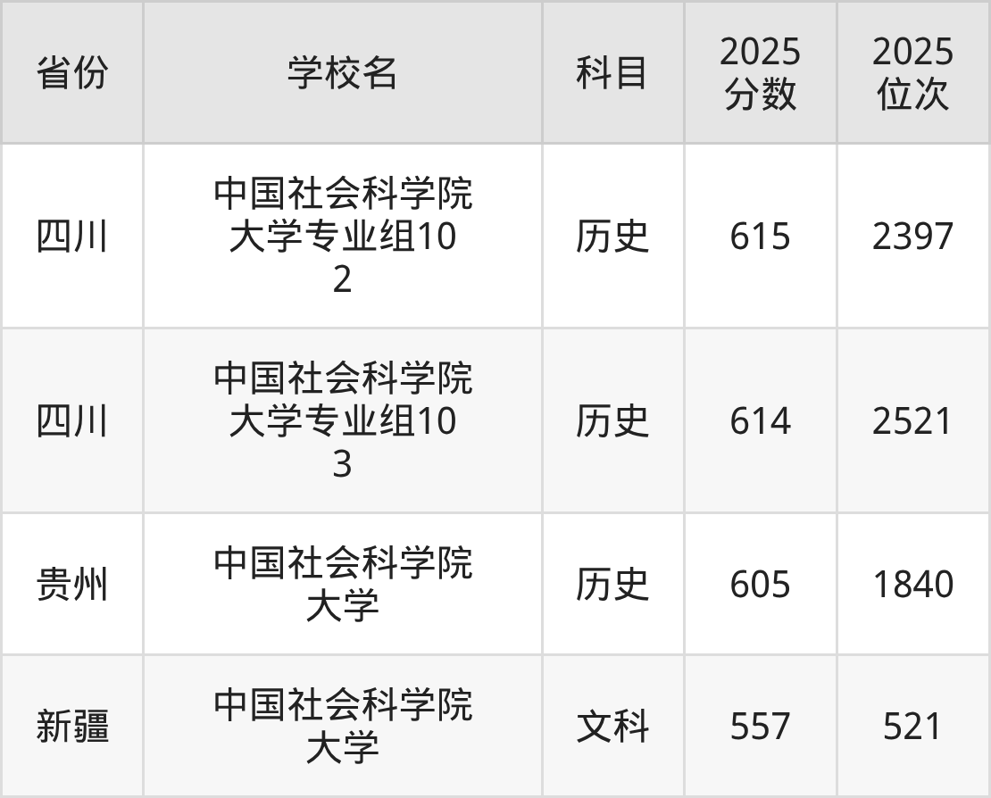 2025年中国社会科学院大学在市外录取分数线范围整体位于557分到653分之间,录取分数线最低在新疆文科、录取分数线最高在浙江。