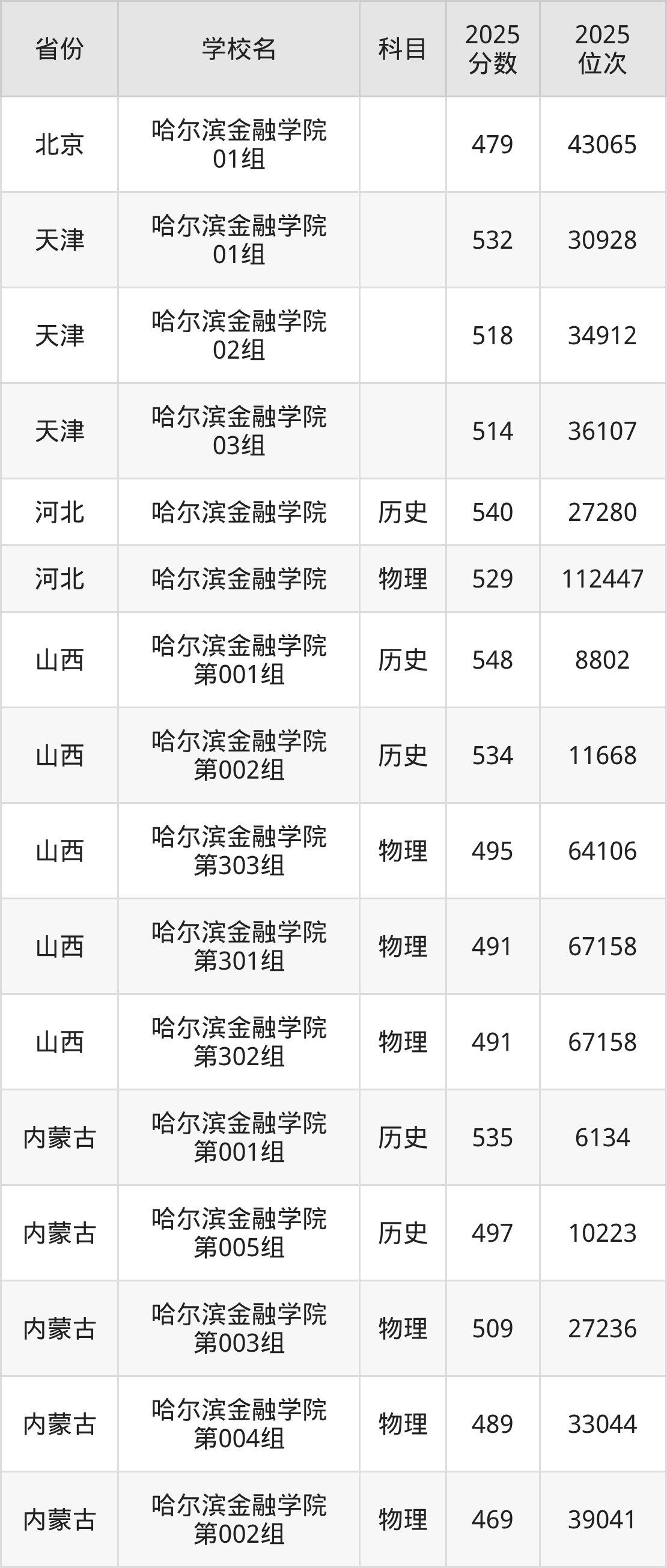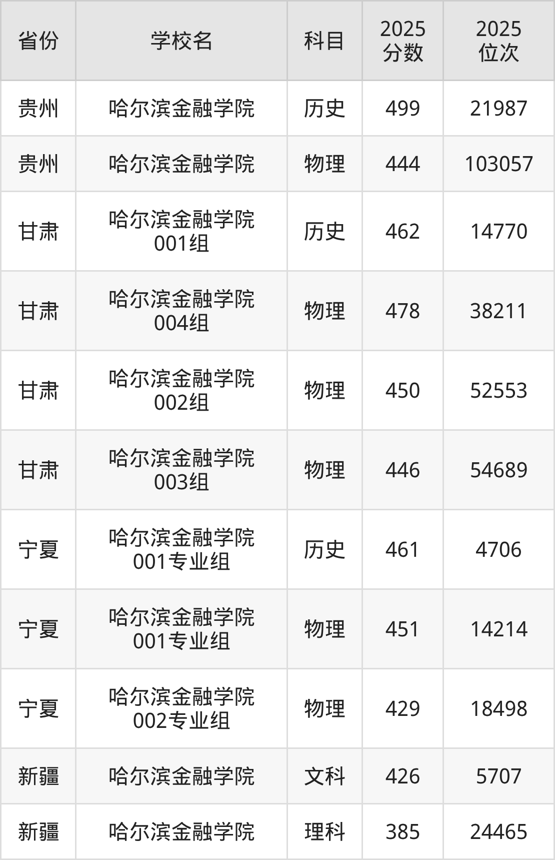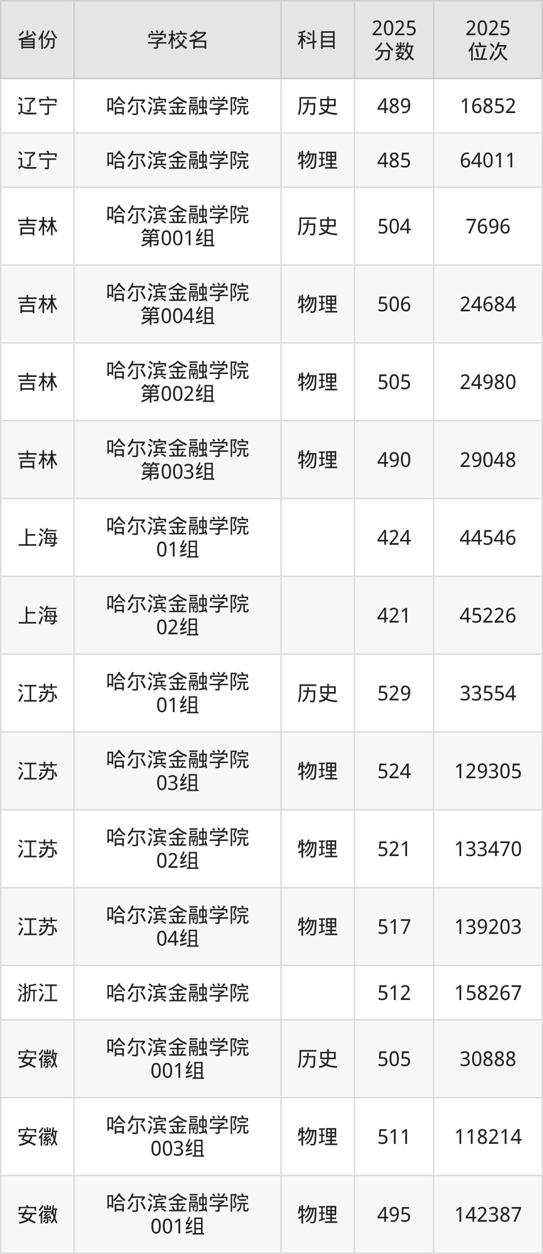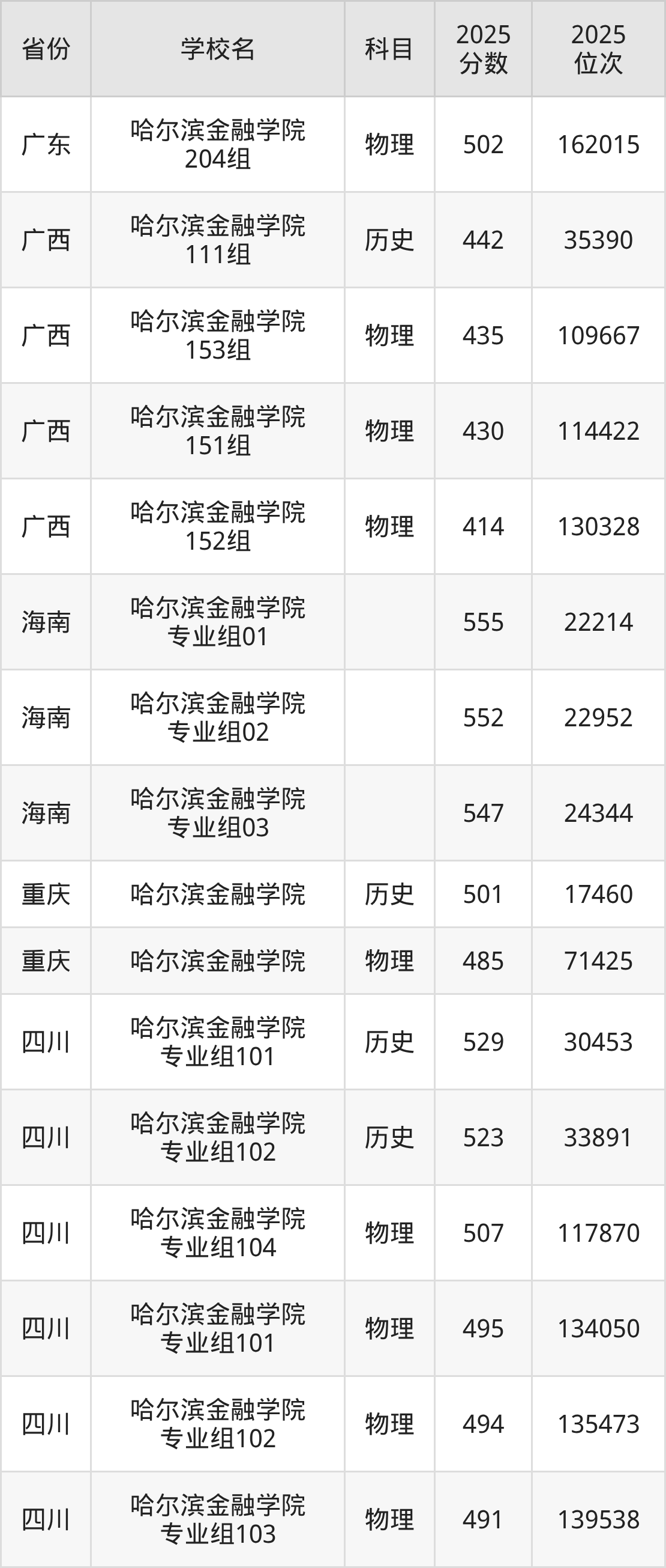2025年哈尔滨金融学院在省内分历史物理科目类录取,其中历史类最低分是444分、对应位次是15943名;物理类最低分是405分,对应位次是67770名。