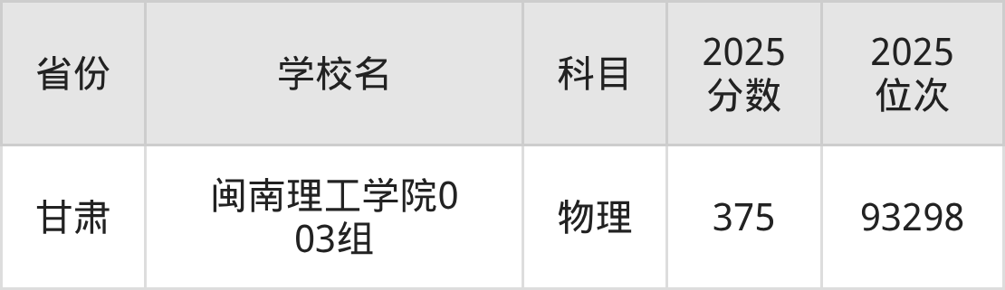 | 学校名 | 科目 | 2025 分数 | 2025 位次 |