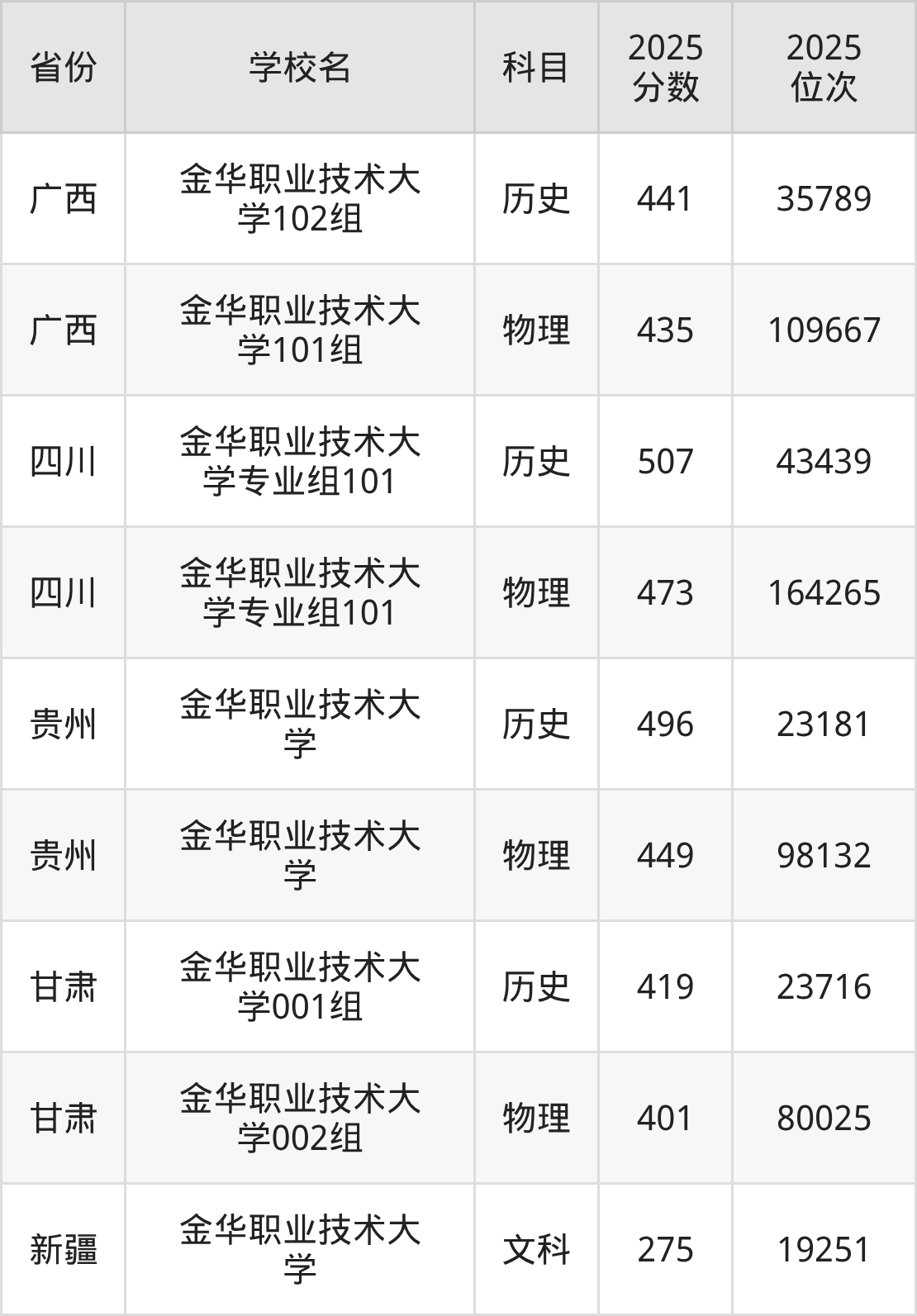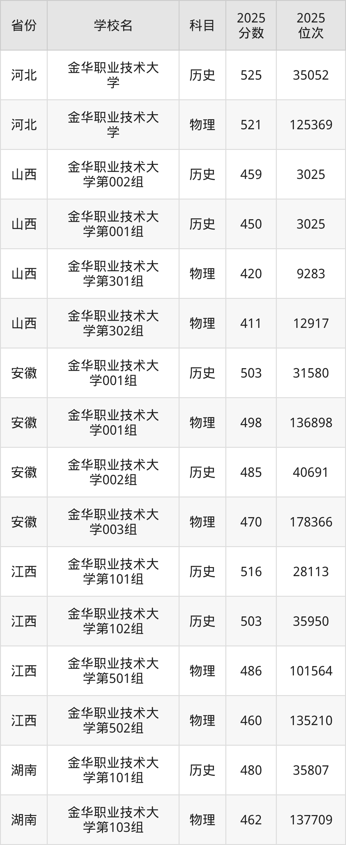 下面是金华职业技术大学2025年录取分数线各省汇总,一起来了解下吧。