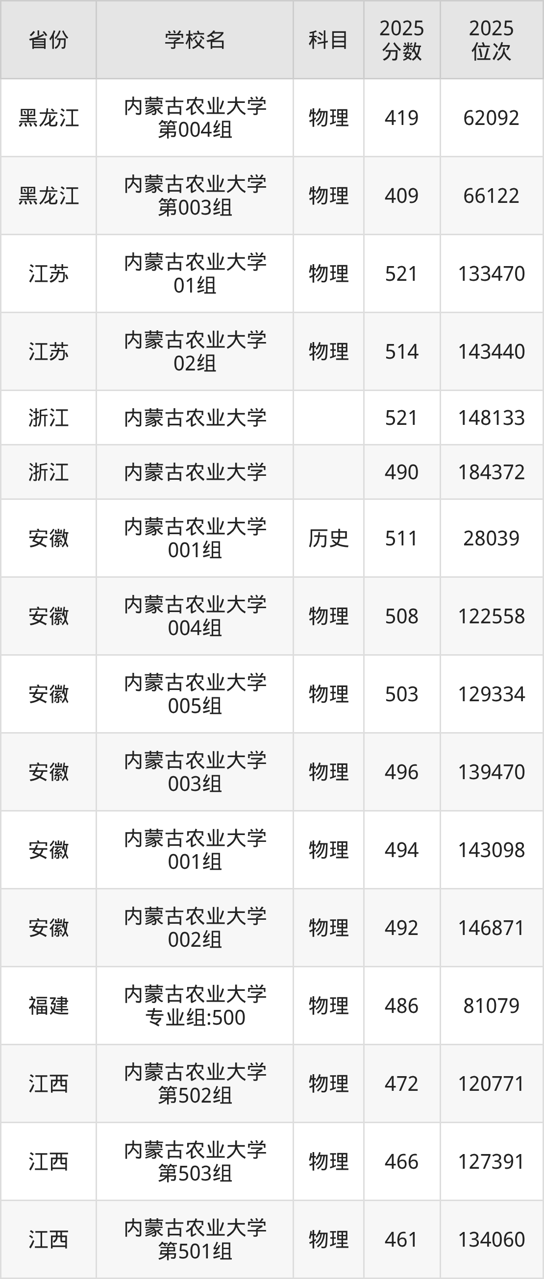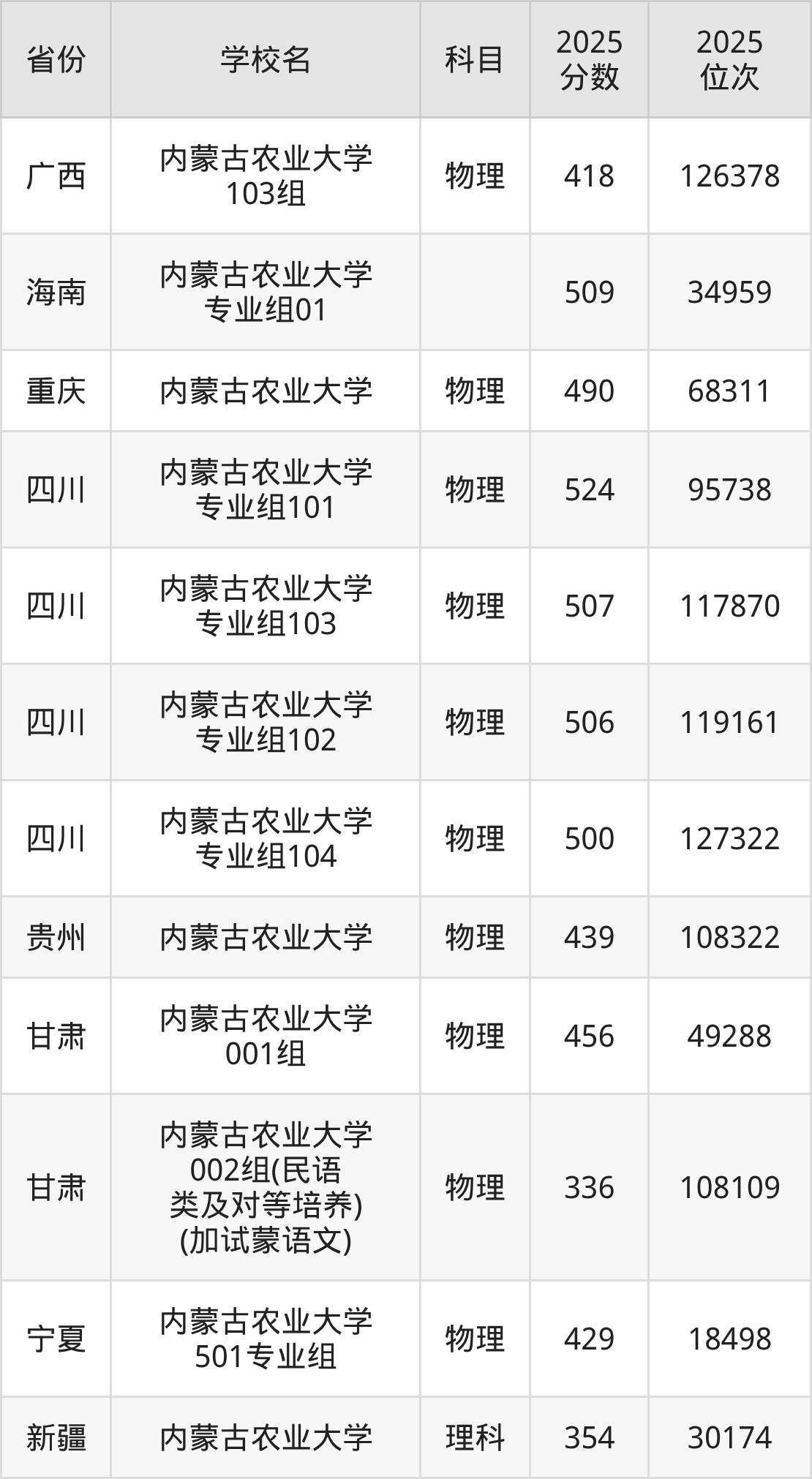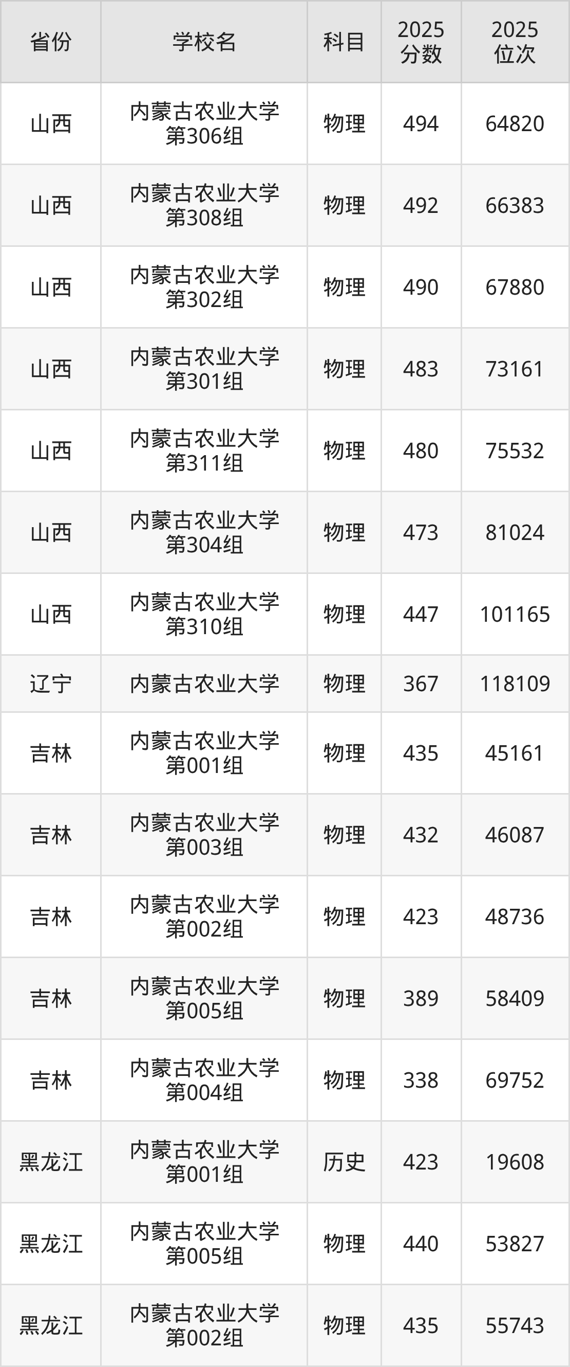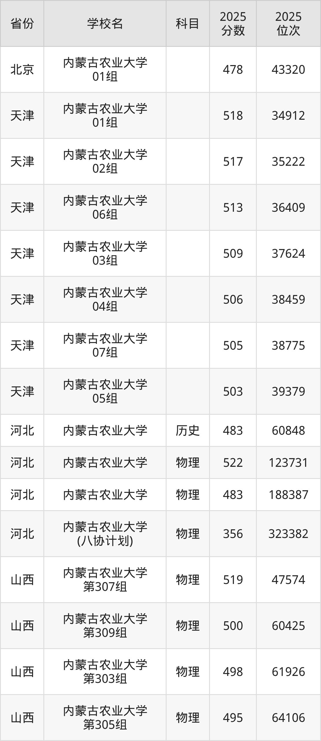 下面是内蒙古农业大学2025年录取分数线各省汇总,一起来了解下吧。
