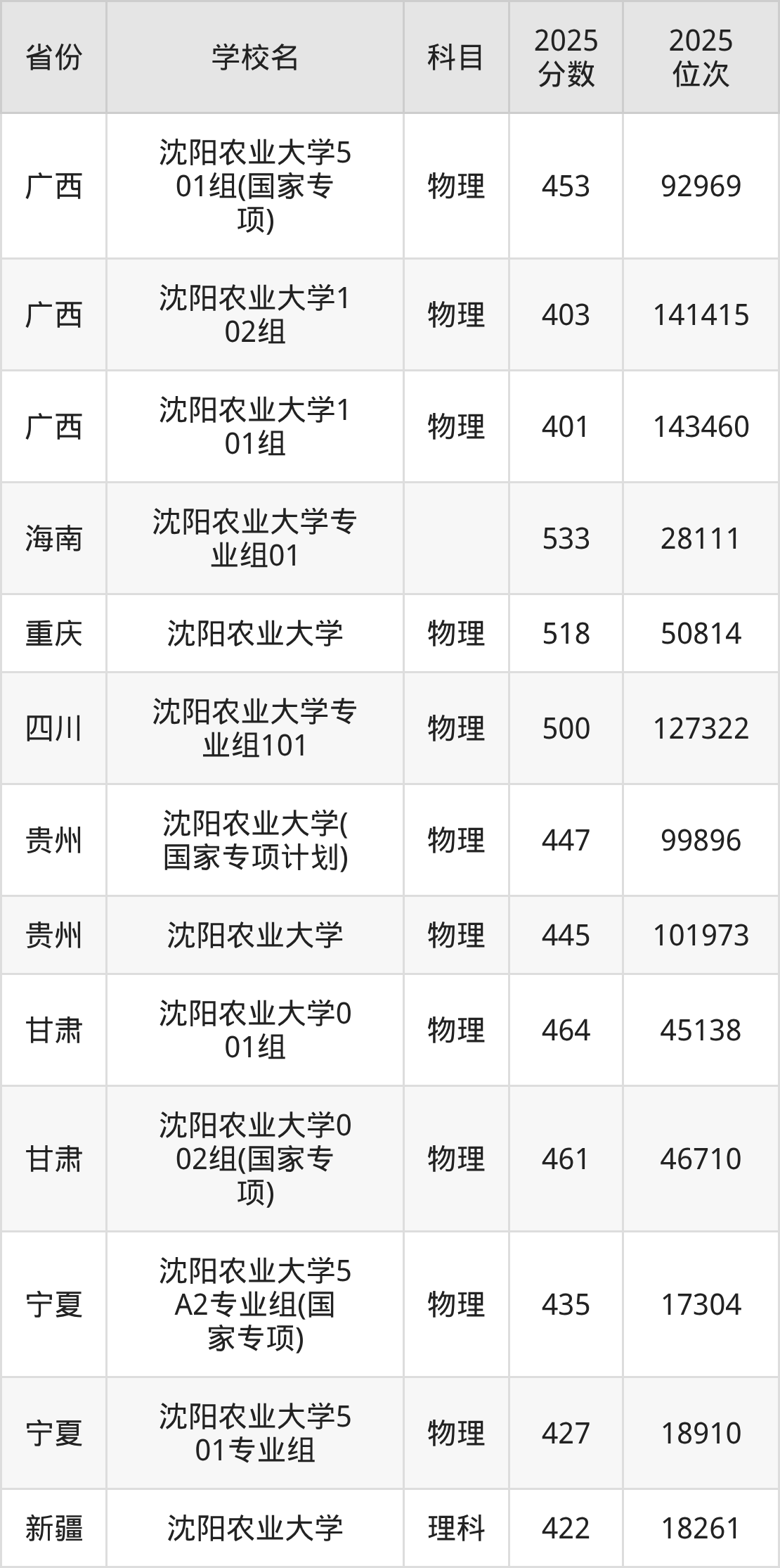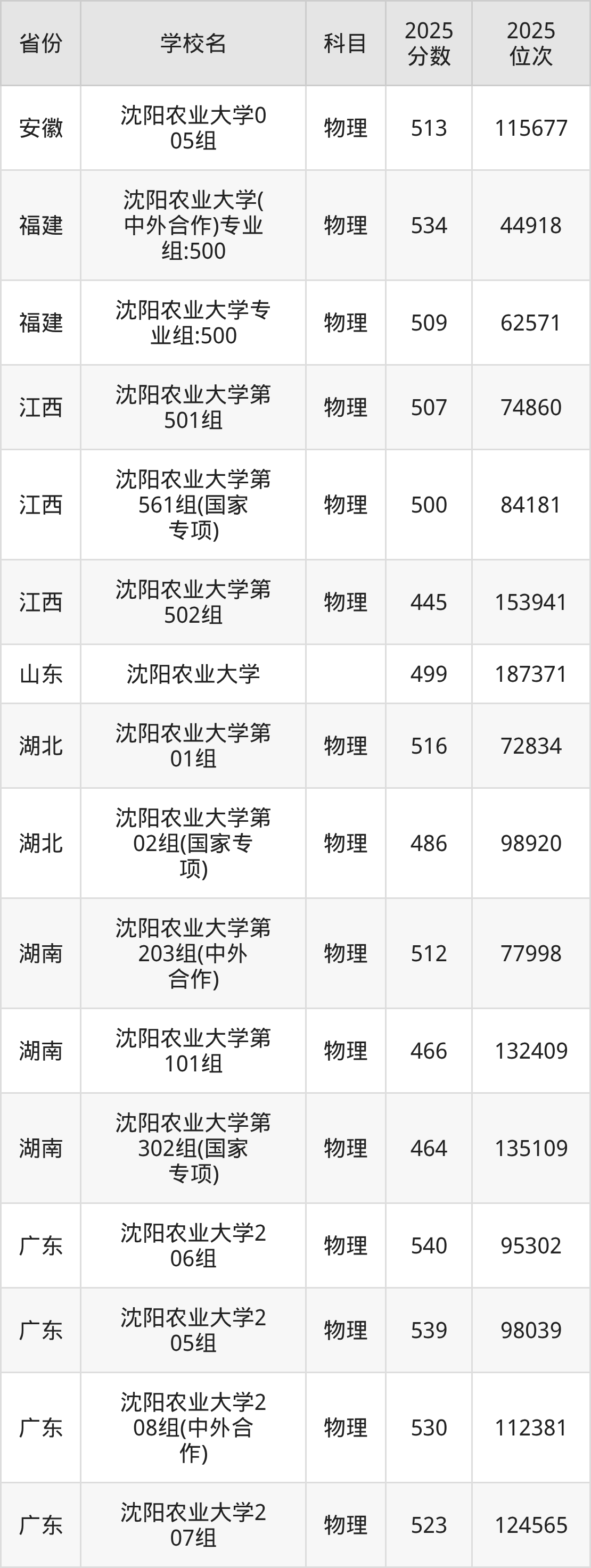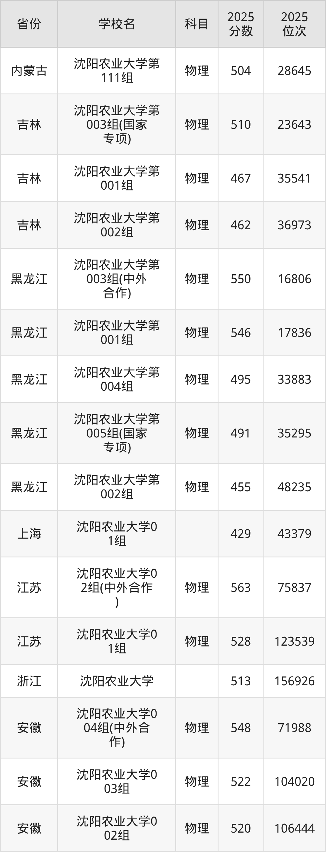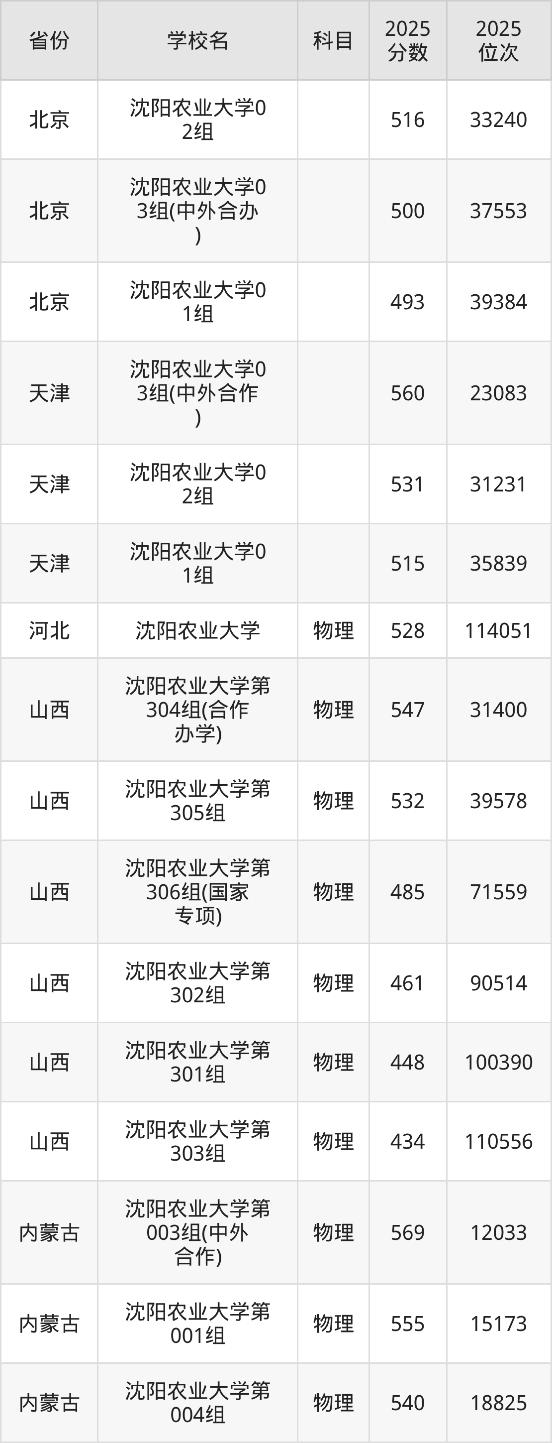 2025年沈阳农业大学历史类最低分506分(13829名)、物理类最低分485分(64011名)。