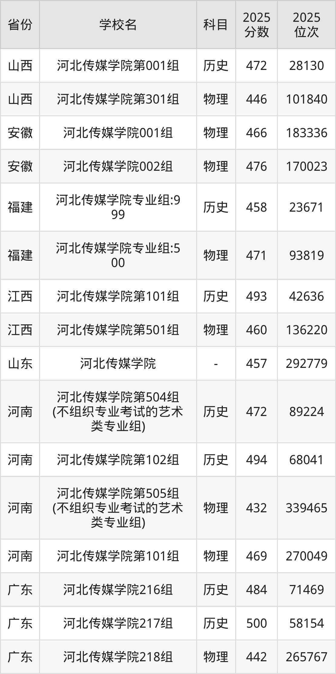 下面是河北传媒学院2025年录取分数线各省汇总,一起来了解下吧。