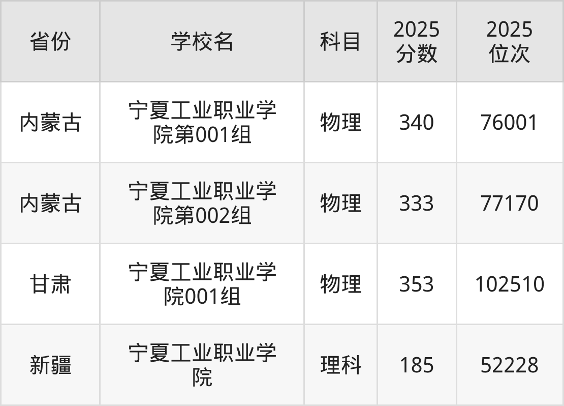 下面是宁夏工业职业学院2025年录取分数线各省汇总,一起来了解下吧。