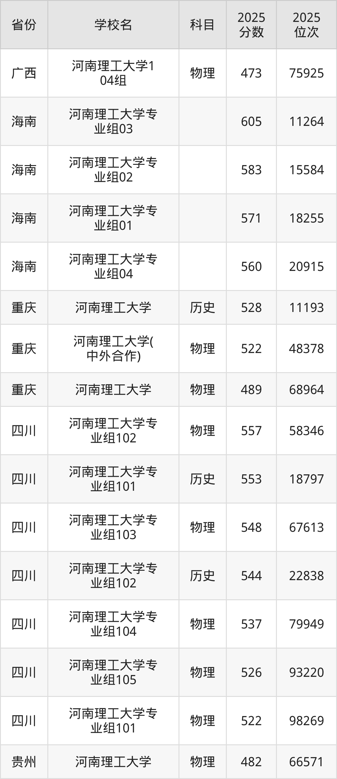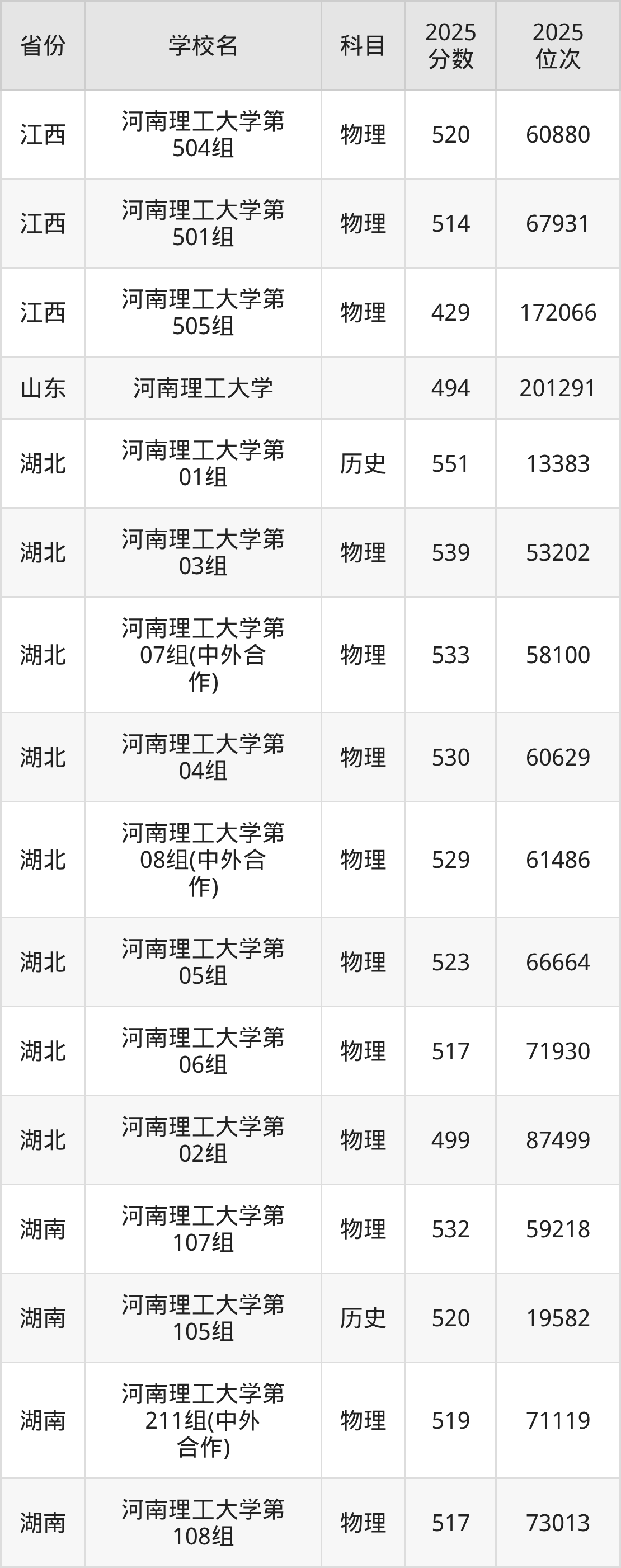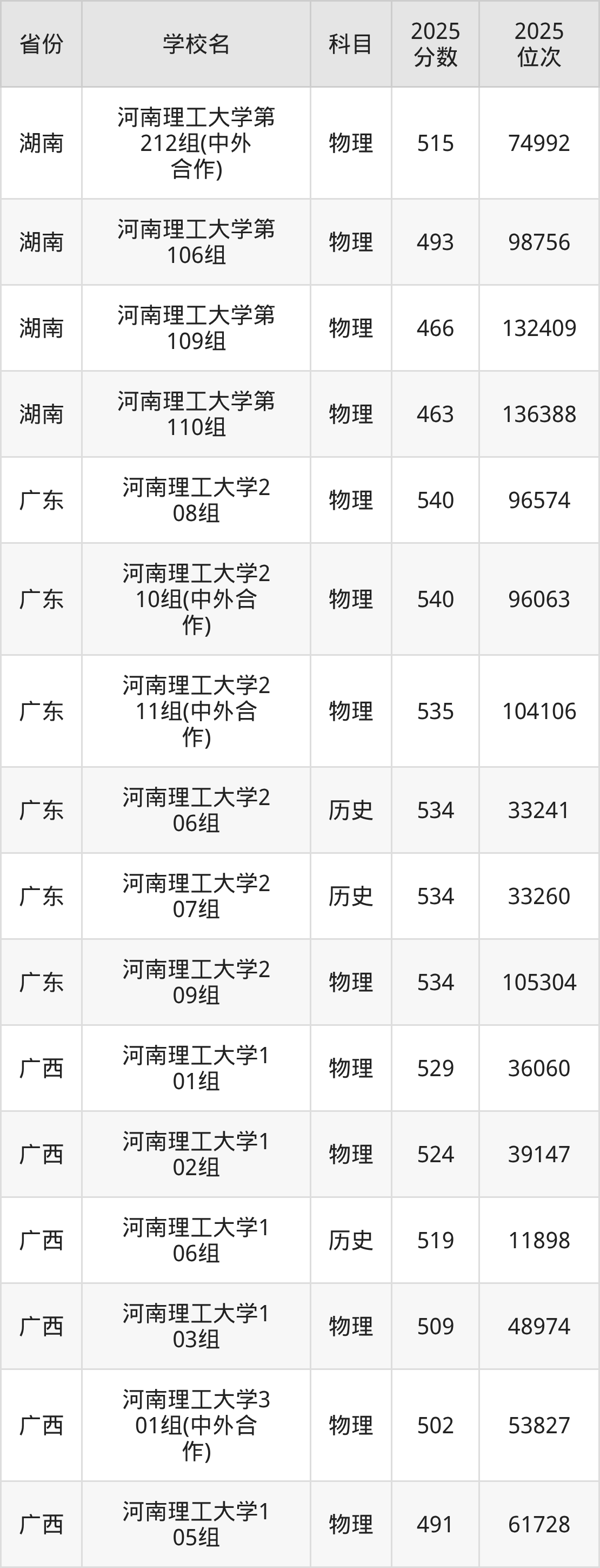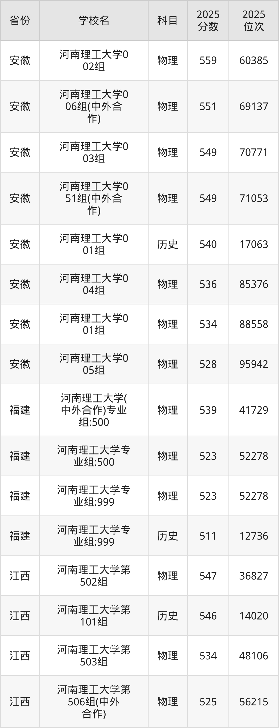 2025年河南理工大学历史类最低分562分(17629名)、物理类最低分529分(112447名)。