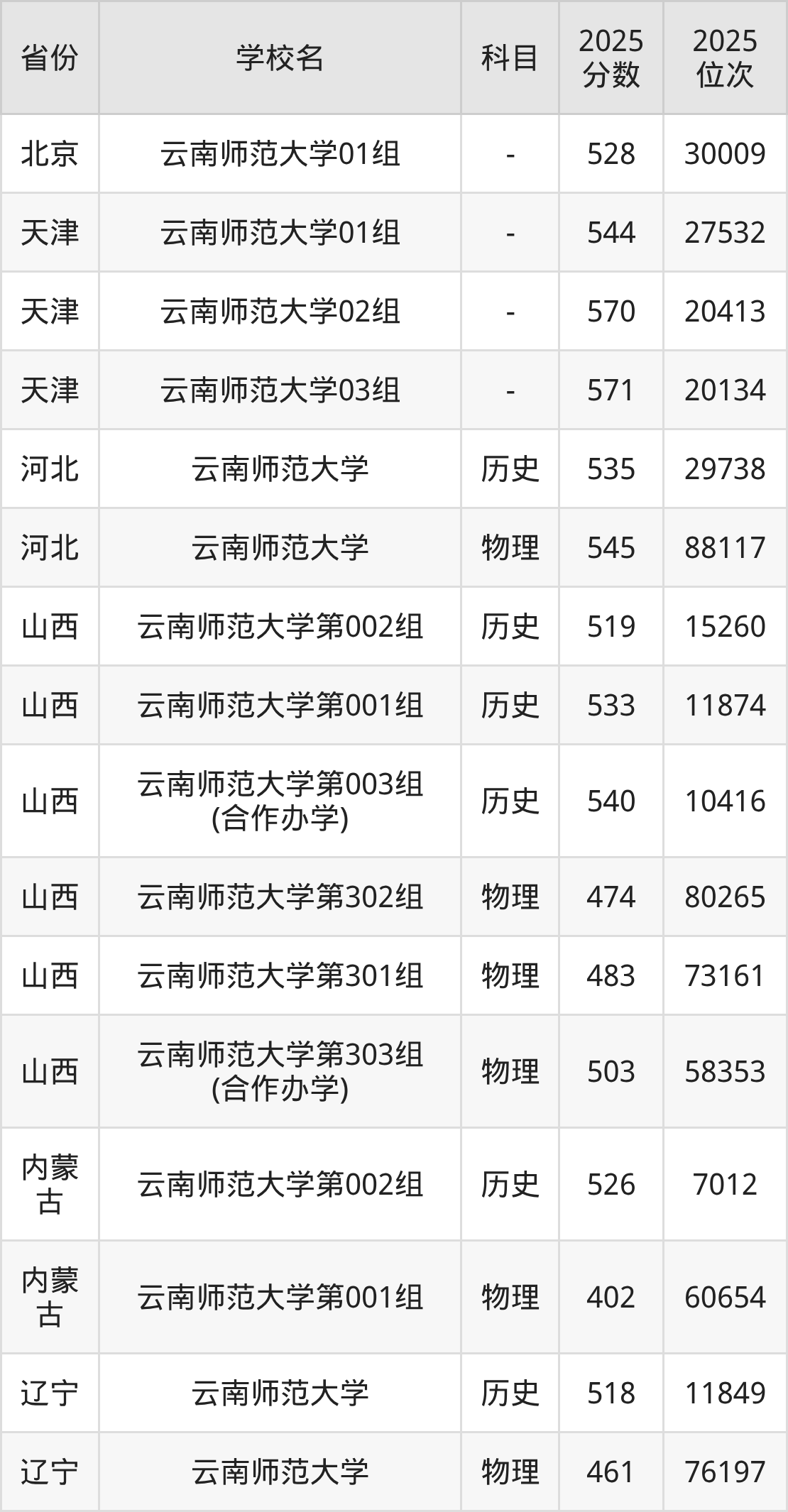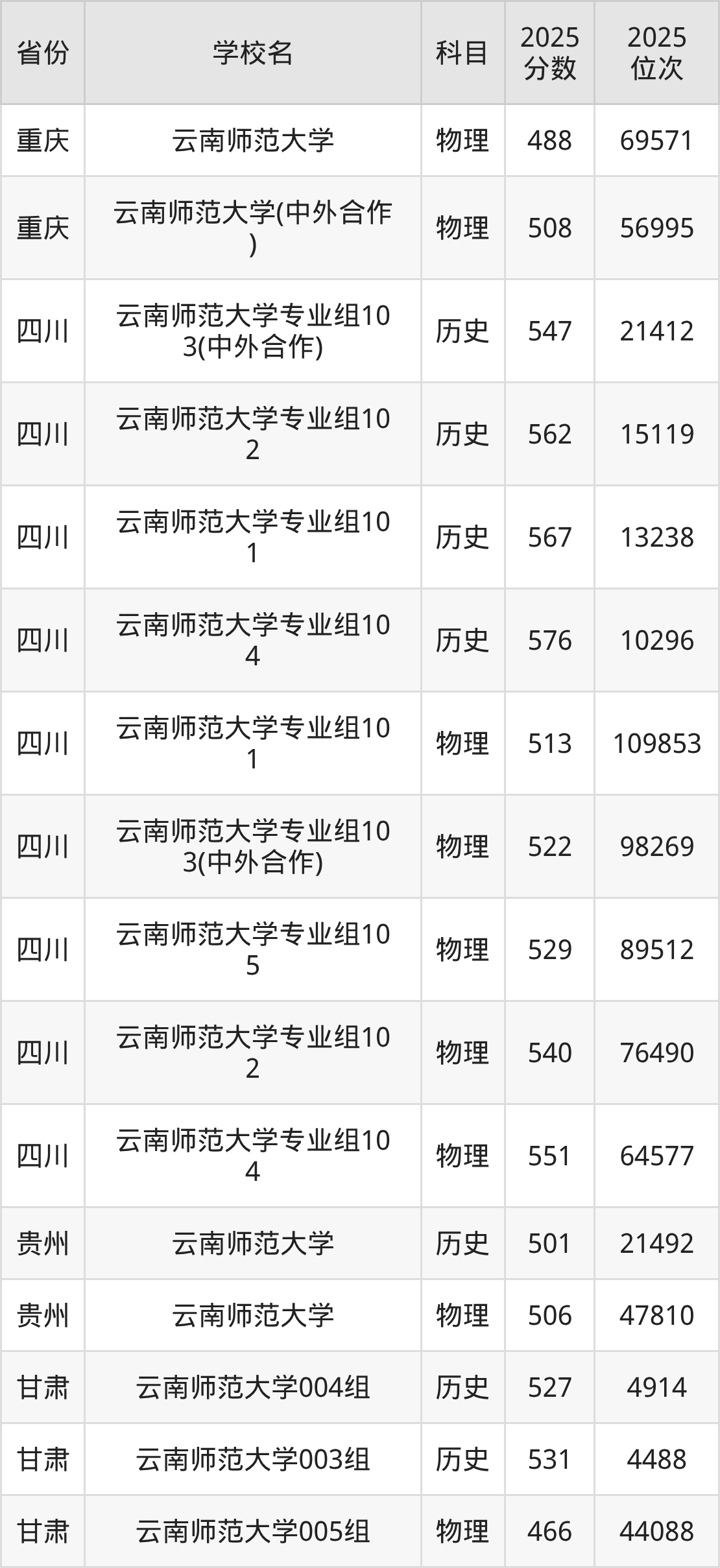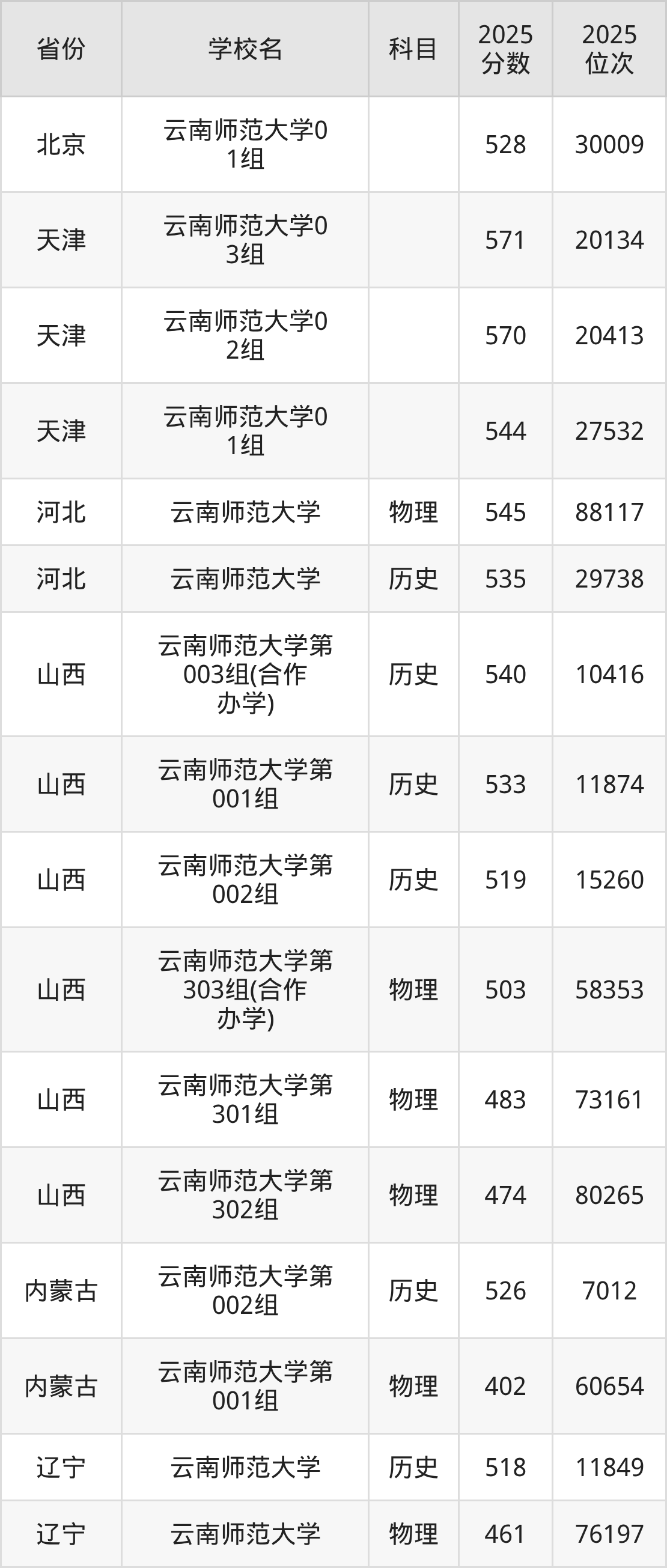 下面是云南师范大学2025年录取分数线各省汇总,一起来了解下吧。