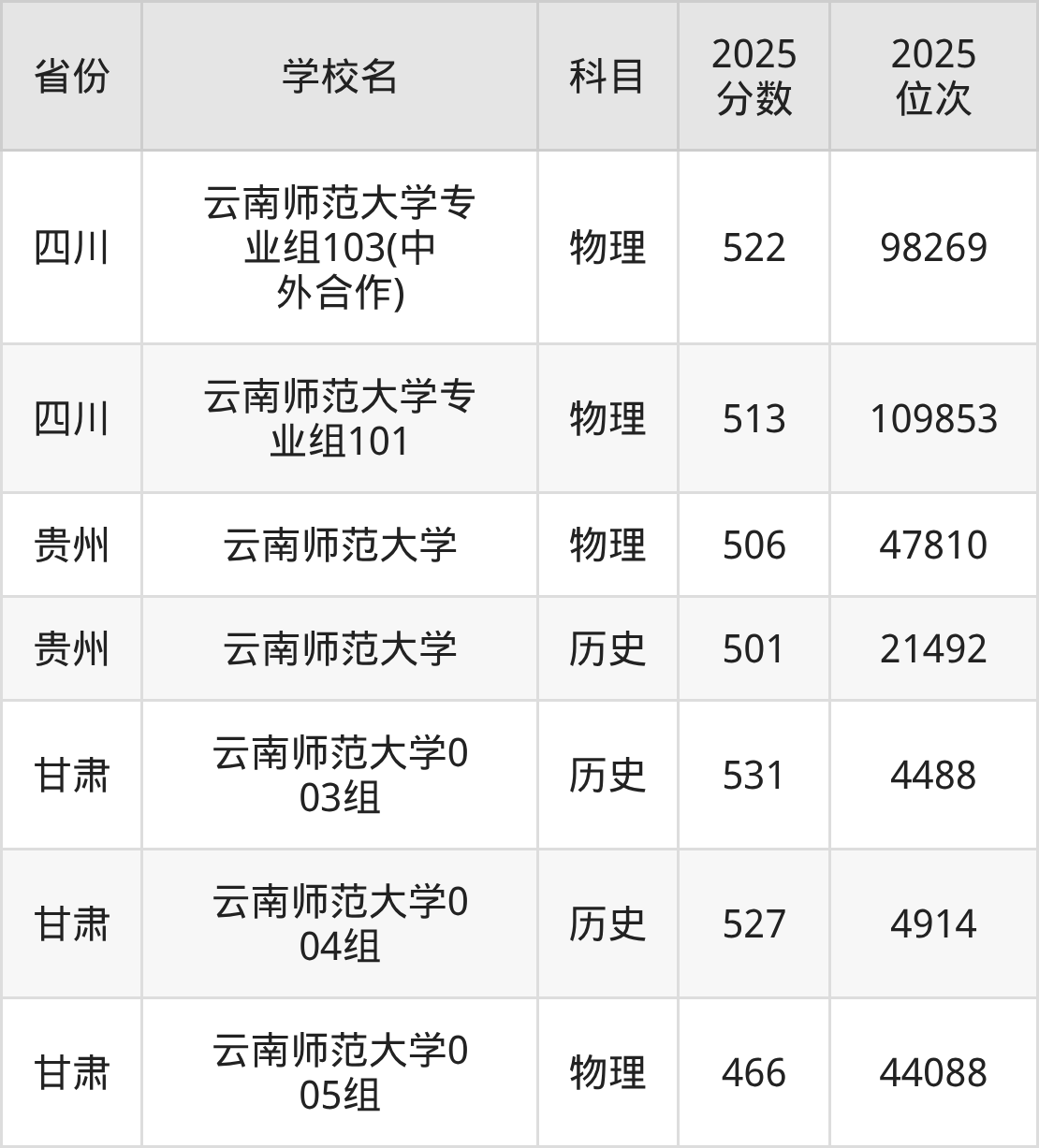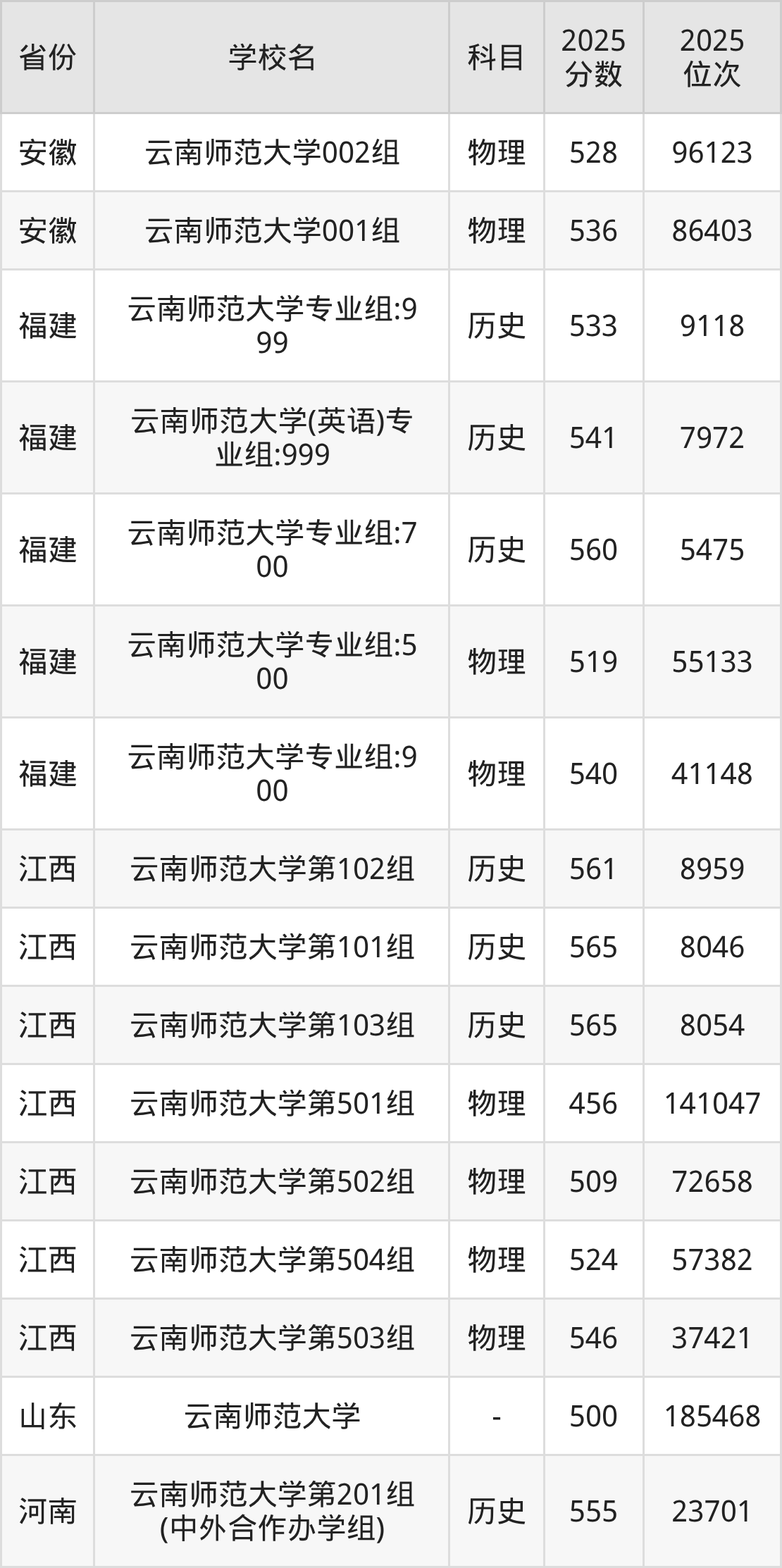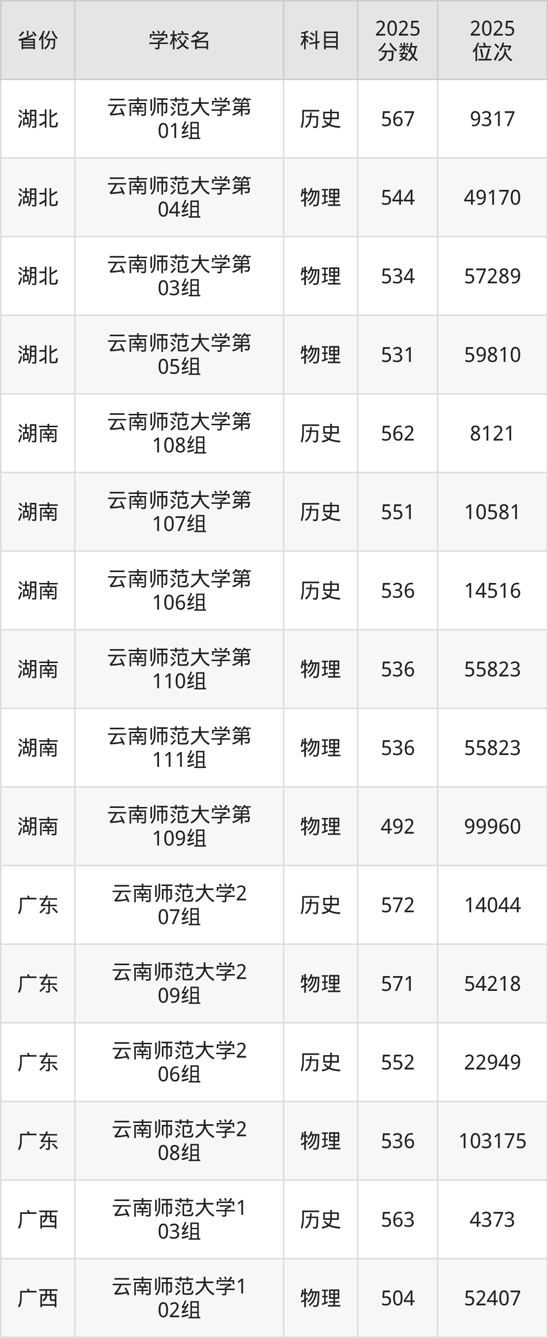 下面是云南师范大学2025年录取分数线各省汇总,一起来了解下吧。