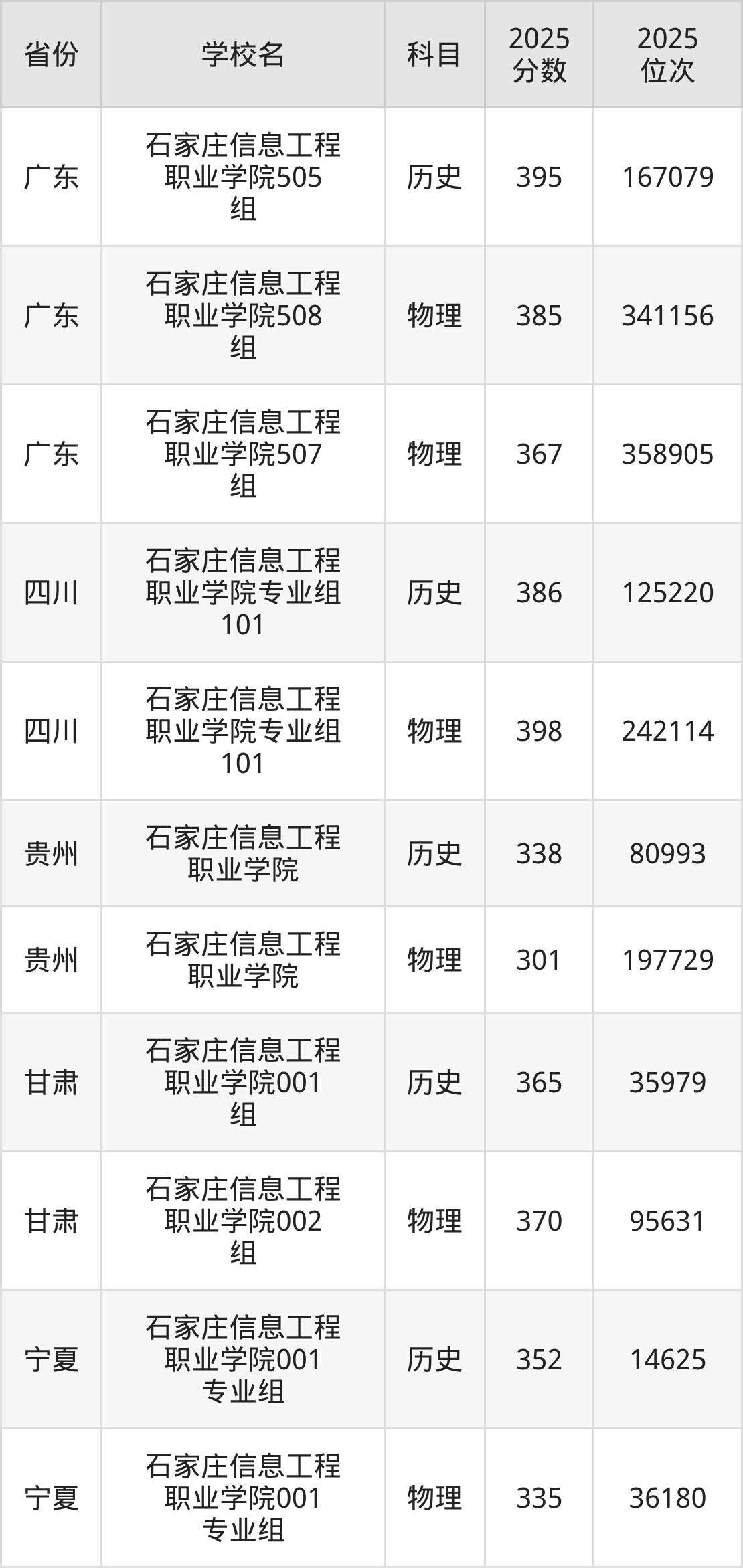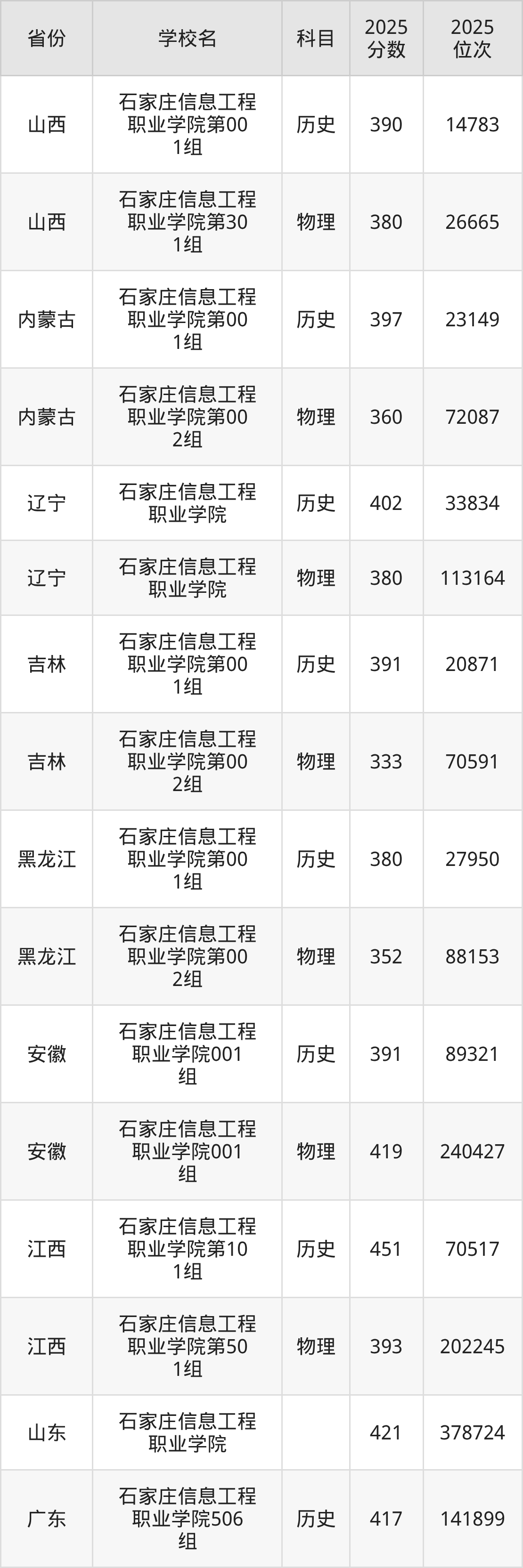 下面是石家庄信息工程职业学院2025年录取分数线各省汇总,一起来了解下吧。