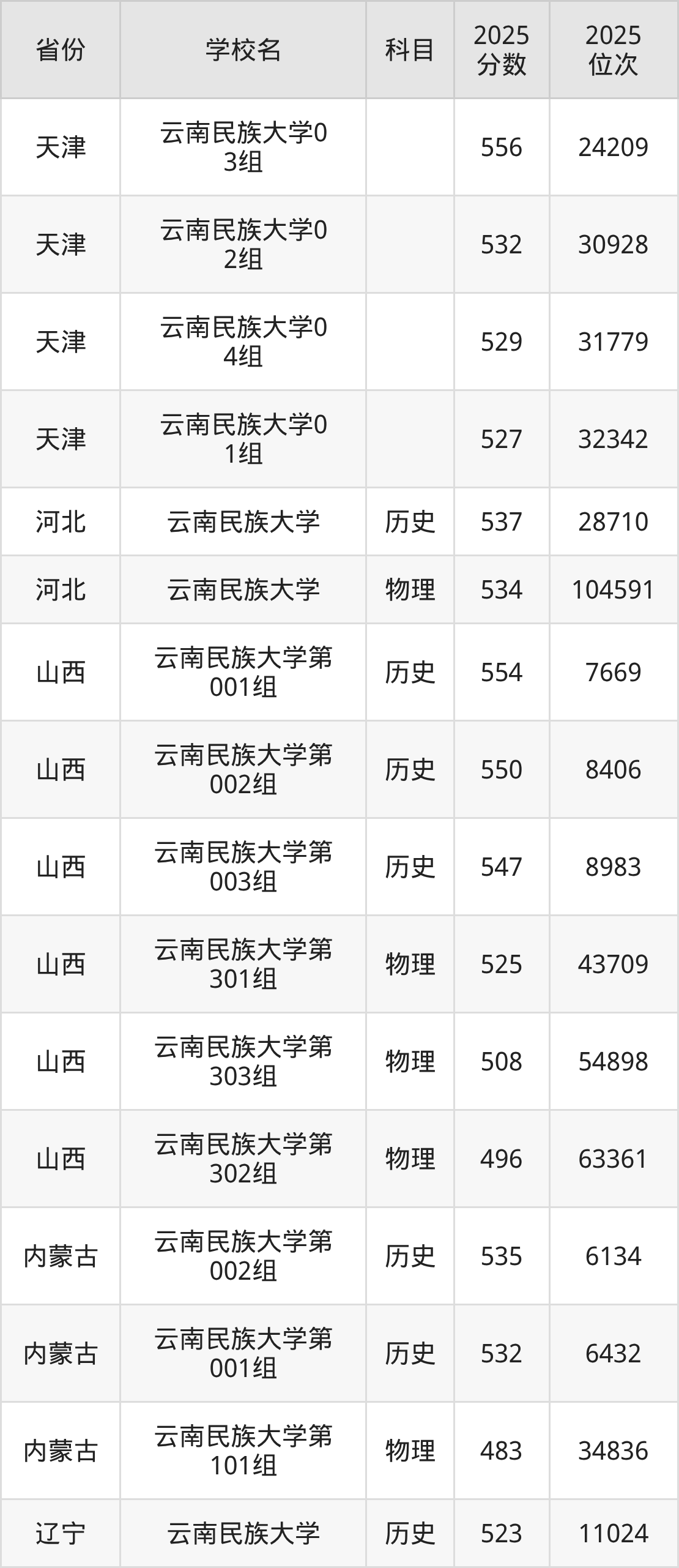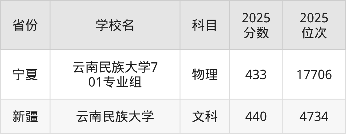 下面是云南民族大学2025年录取分数线各省汇总,一起来了解下吧。