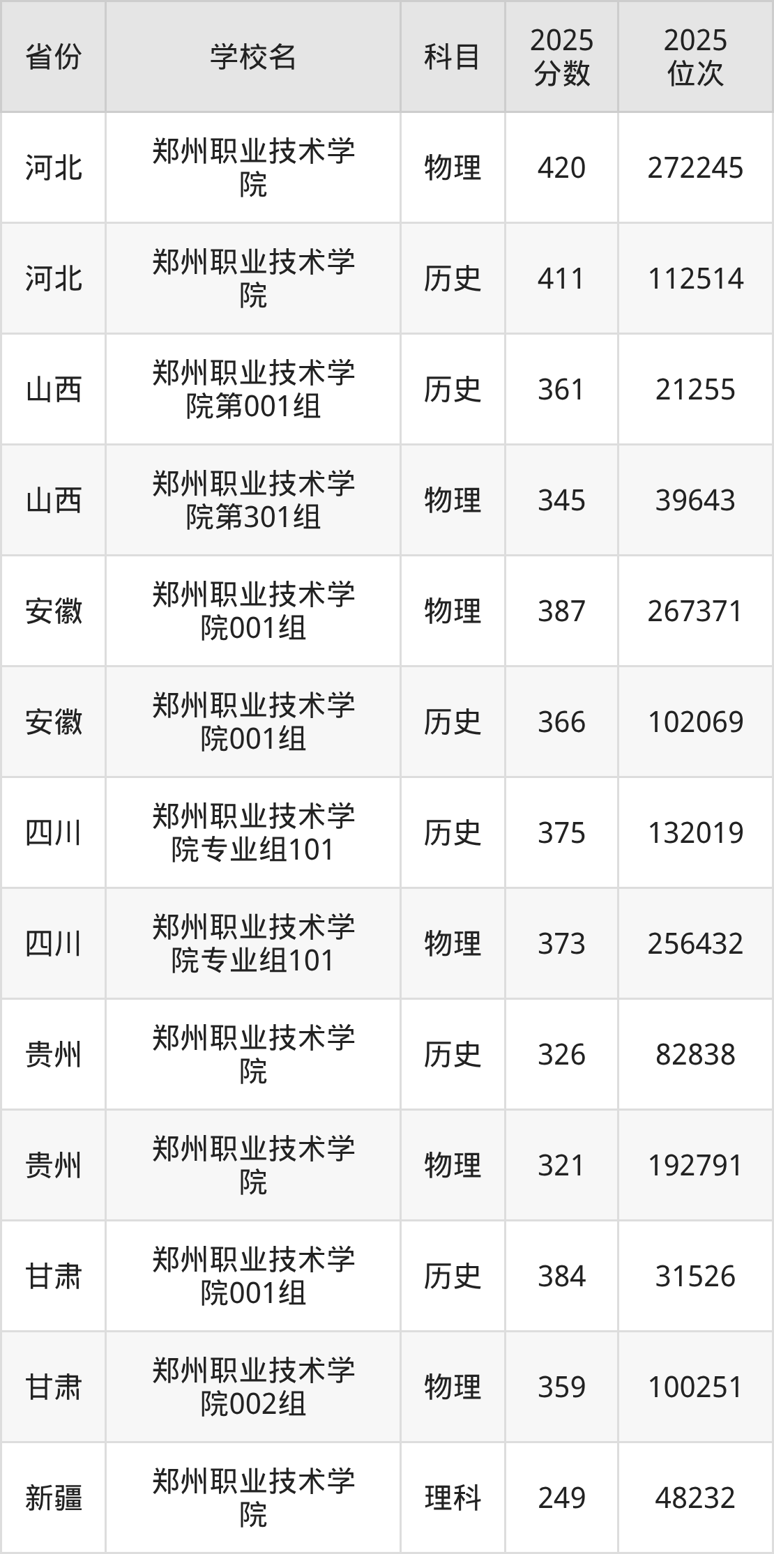 下面是郑州职业技术学院2025年录取分数线各省汇总,一起来了解下吧。