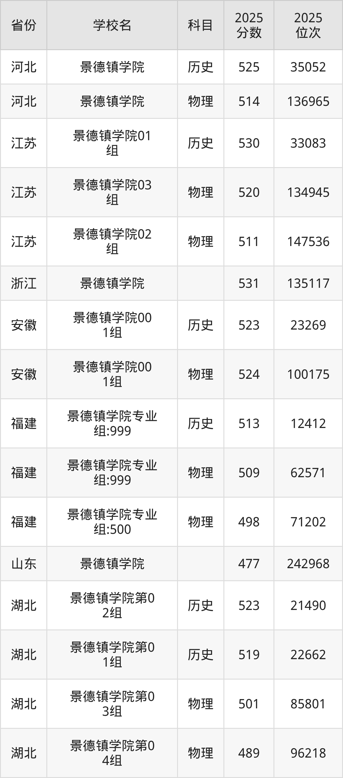 2025年景德镇学院历史类最低分517分(27402名)、物理类最低分470分(123423名)。