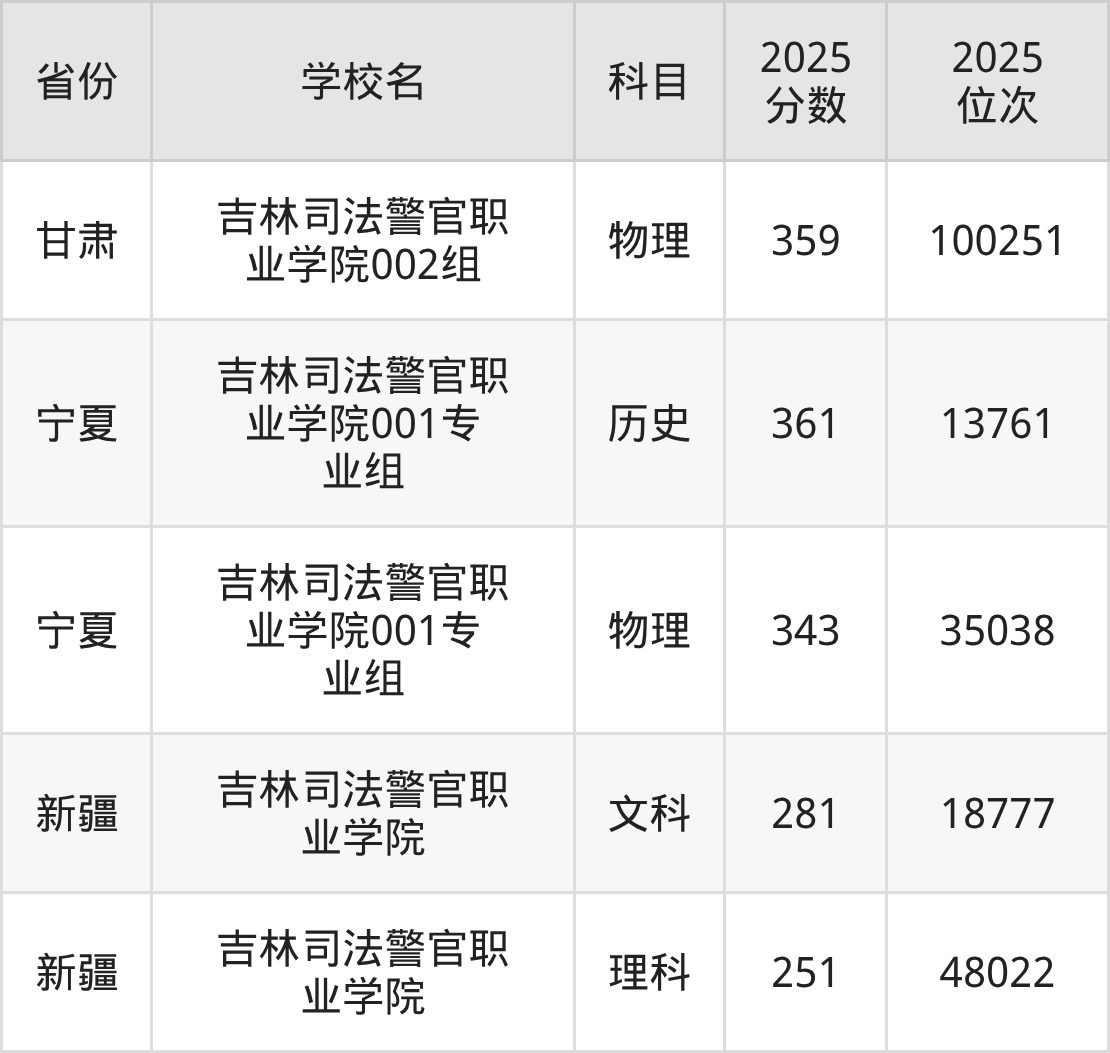 下面是吉林司法警官职业学院2025年录取分数线各省汇总,一起来了解下吧。