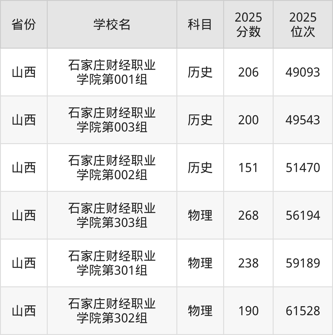| 石家庄财经职业 学院 | 历史 | 282 | 204314 |