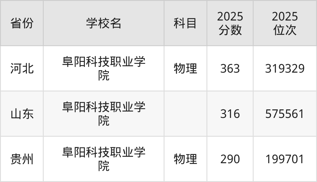 下面是阜阳科技职业学院2025年录取分数线各省汇总,一起来了解下吧。