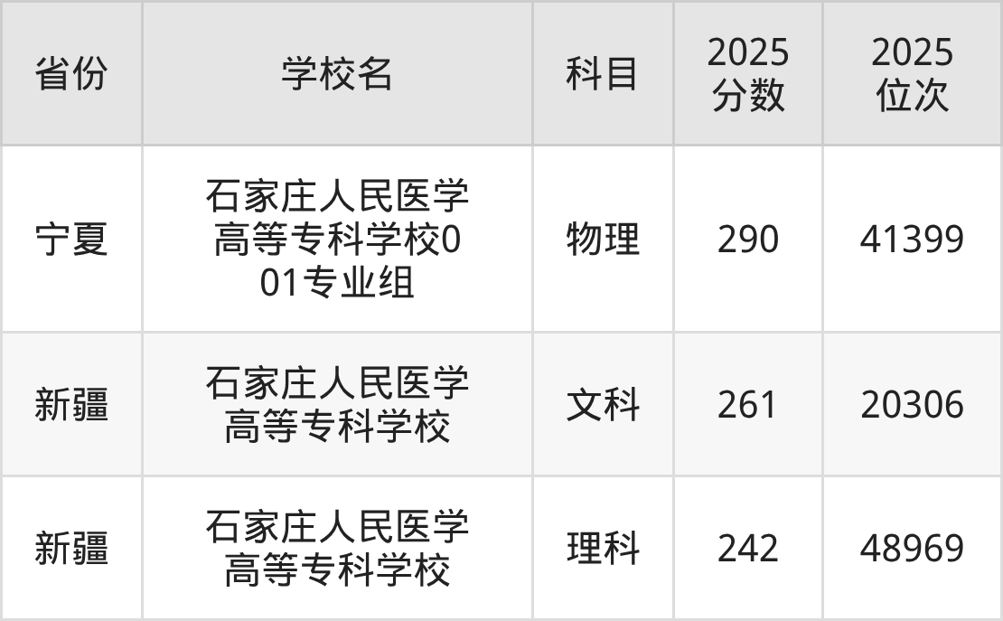 下面是石家庄人民医学高等专科学校2025年录取分数线各省汇总,一起来了解下吧。