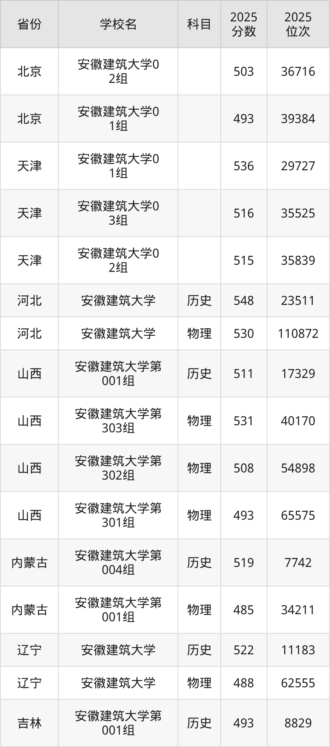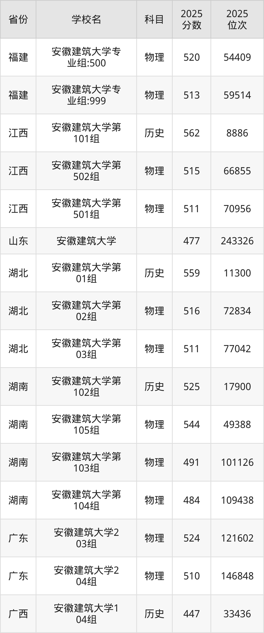 下面是安徽建筑大学2025年录取分数线各省汇总,一起来了解下吧。