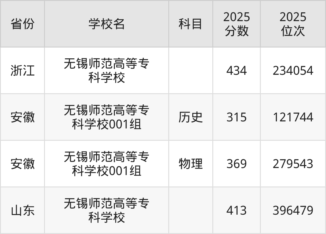 下面是无锡师范高等专科学校2025年录取分数线各省汇总,一起来了解下吧。