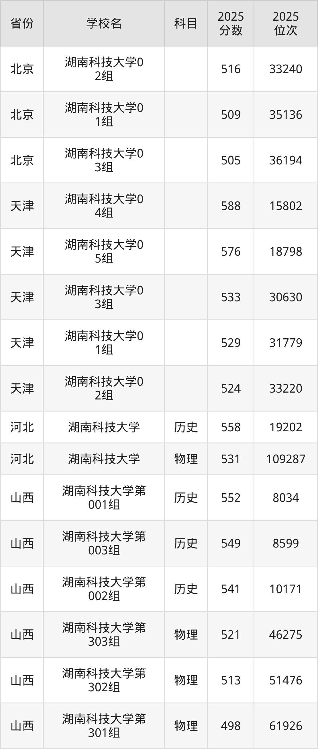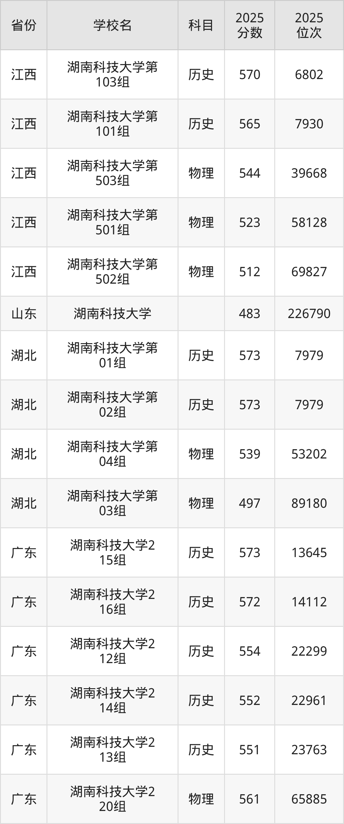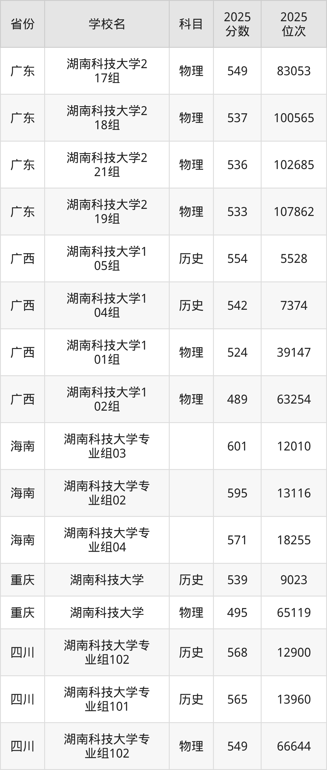 2025年湖南科技大学历史类最低分537分(14238名)、物理类最低分484分(109438名)。