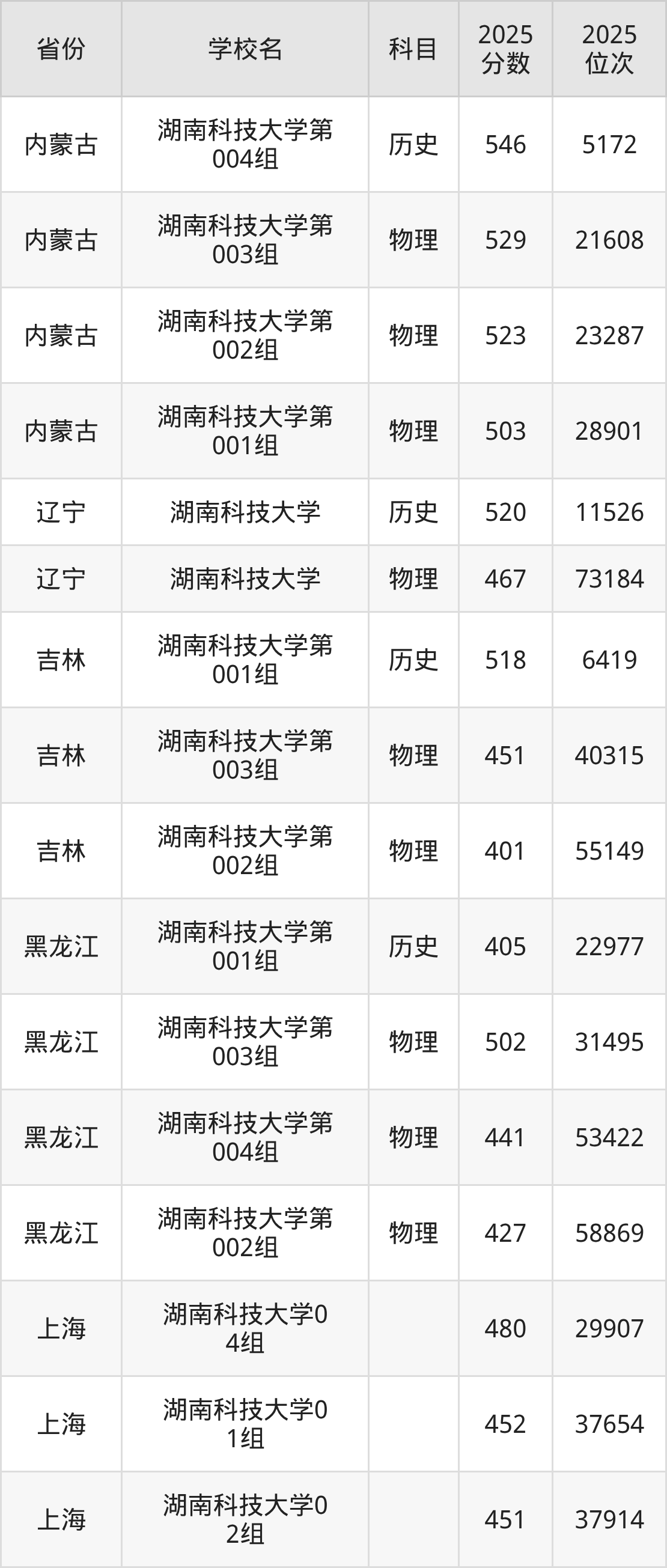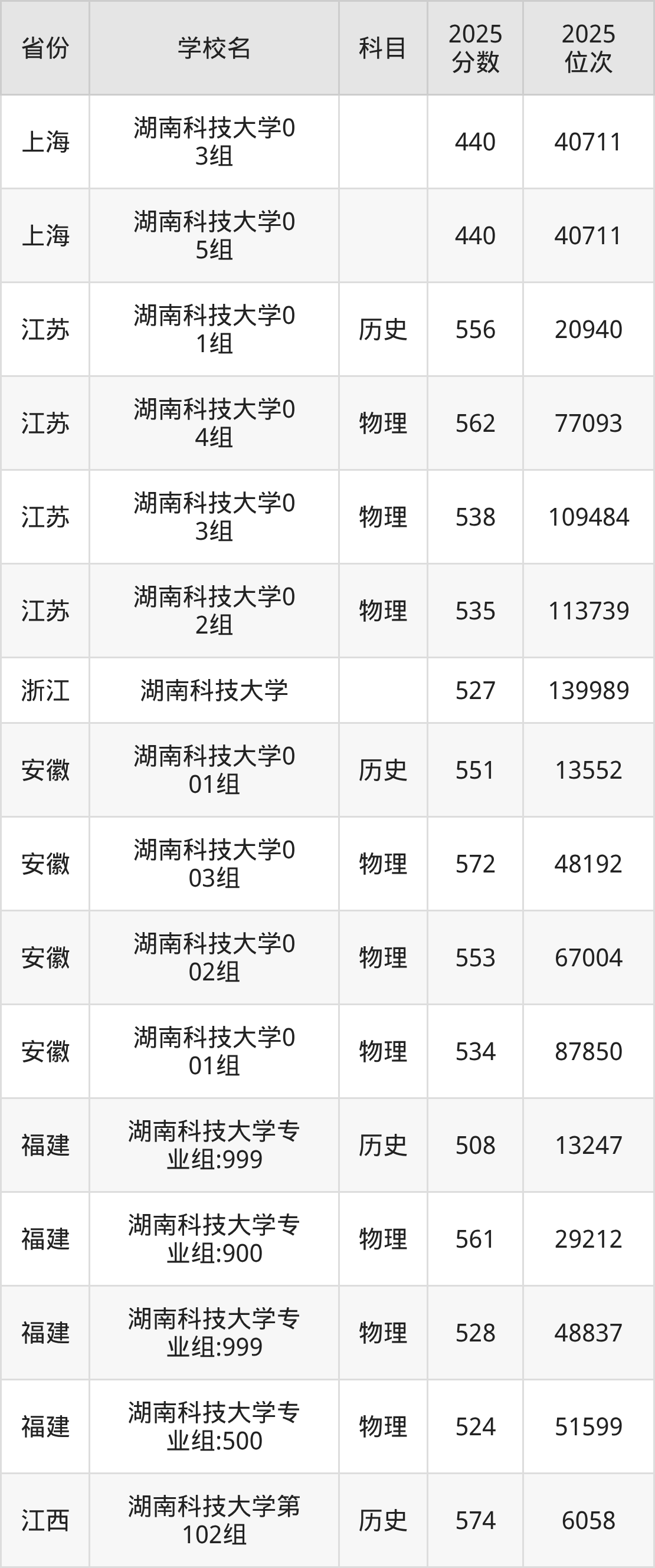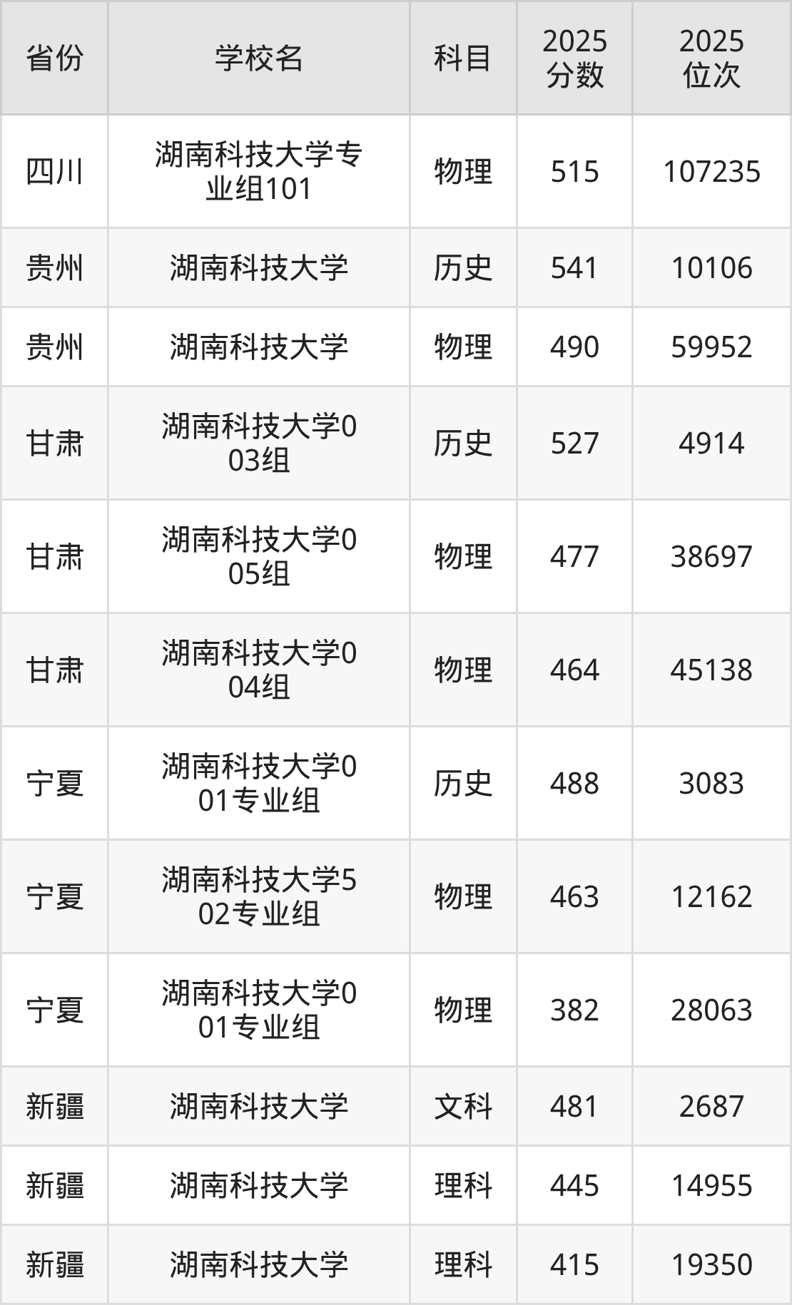 2025年湖南科技大学历史类最低分537分(14238名)、物理类最低分484分(109438名)。