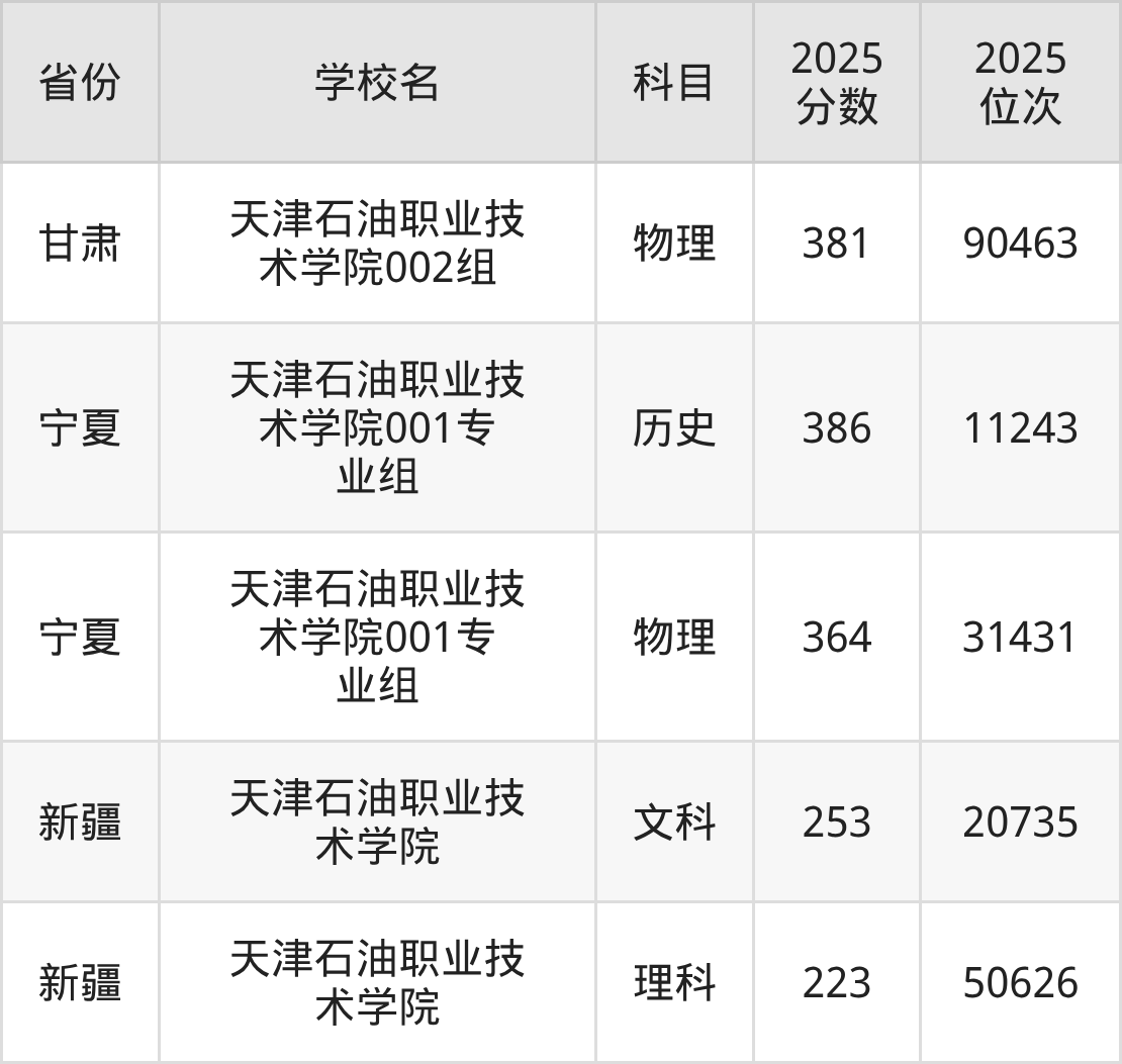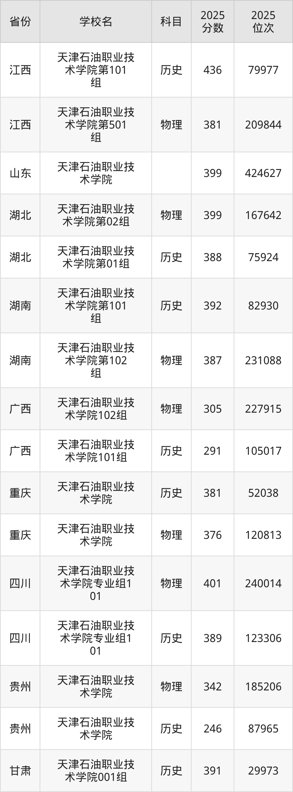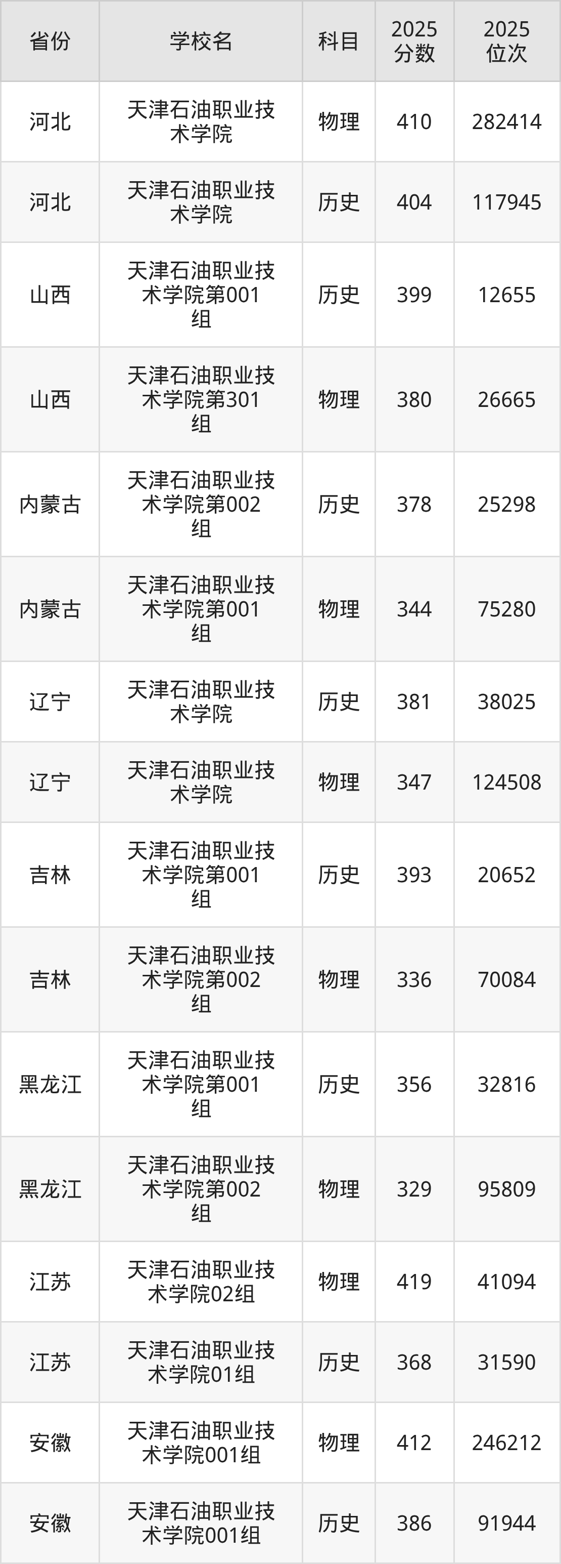 下面是天津石油职业技术学院2025年录取分数线各省汇总,一起来了解下吧。