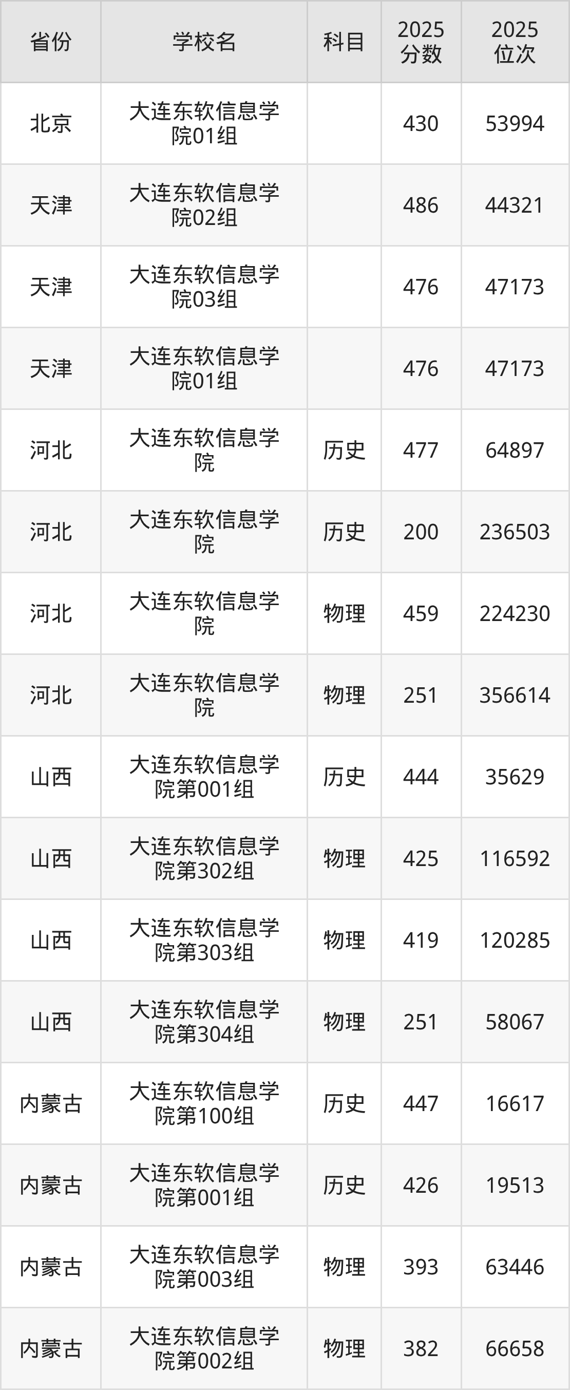 下面是大连东软信息学院2025年录取分数线各省汇总,一起来了解下吧。