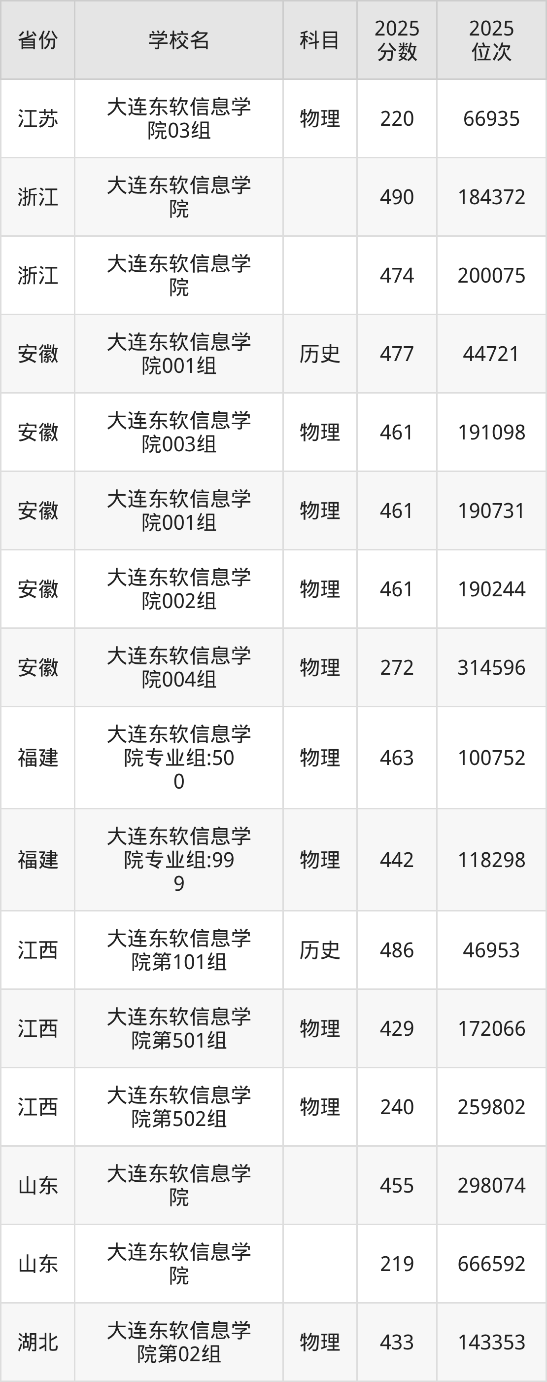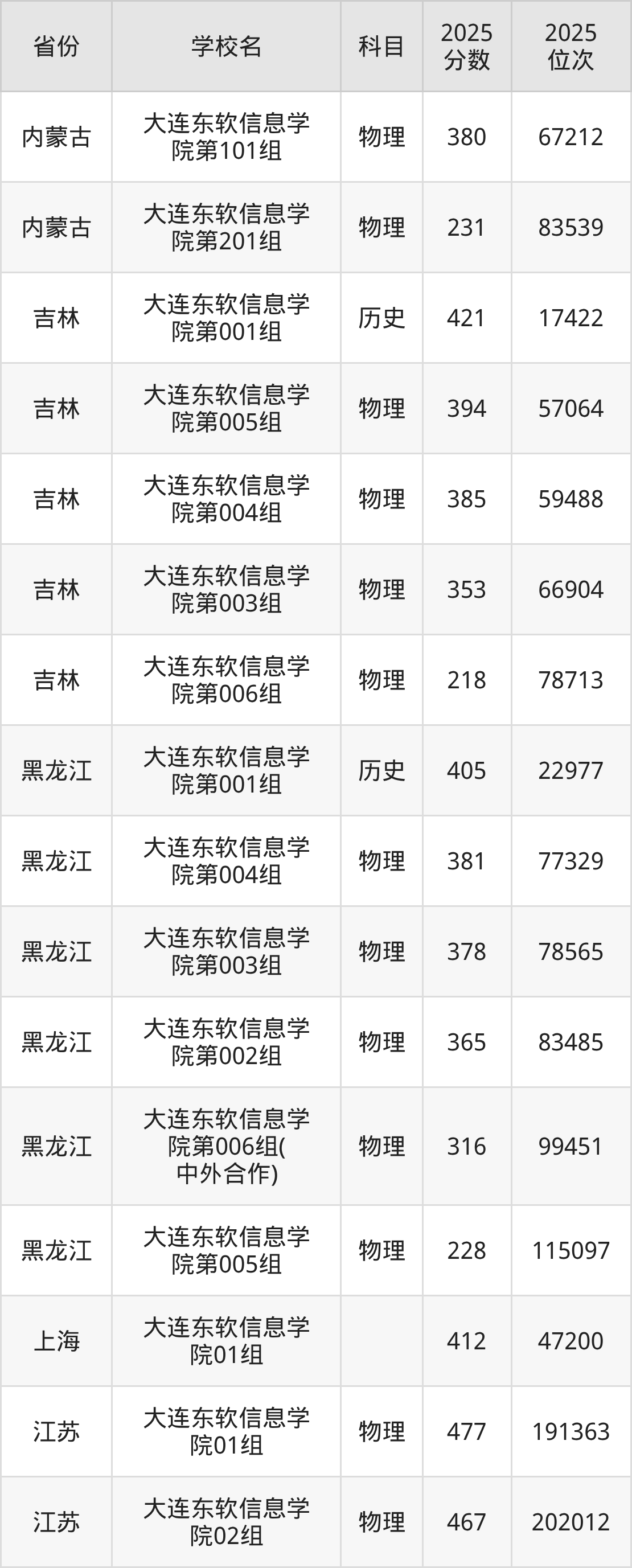 | 大连东软信息学 院 | 物理 | 170 | 143300 |