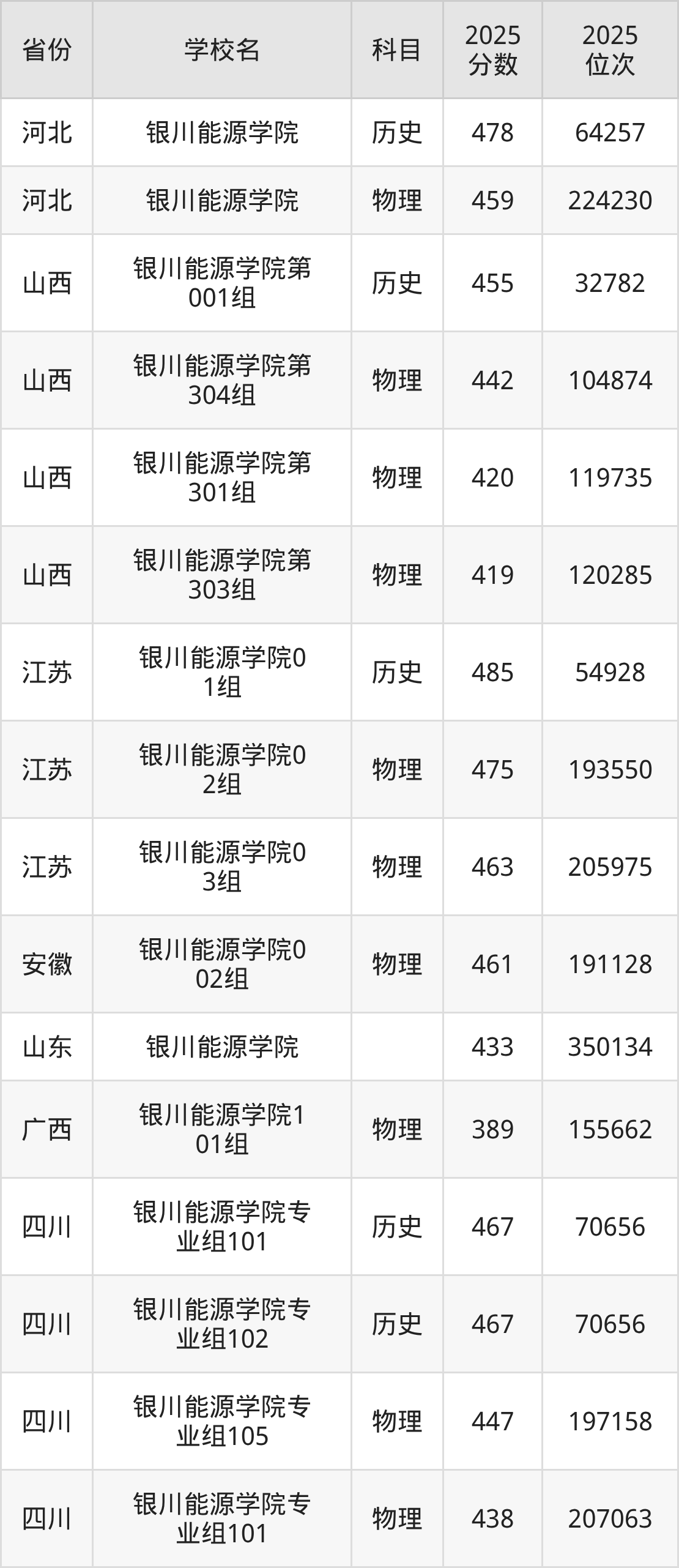 下面是银川能源学院2025年录取分数线各省汇总,一起来了解下吧。