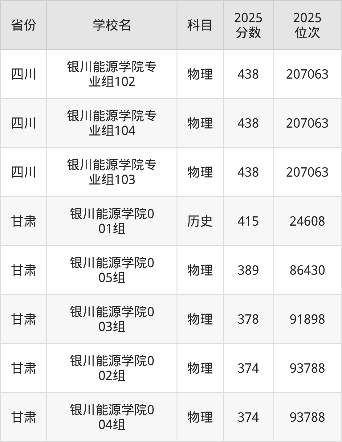 | 银川能源学院5 03专业组 | 物理 | 372 | 30025 |
