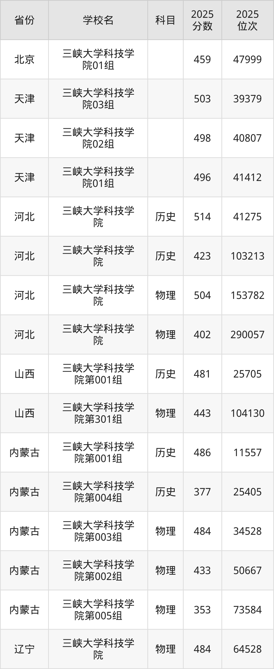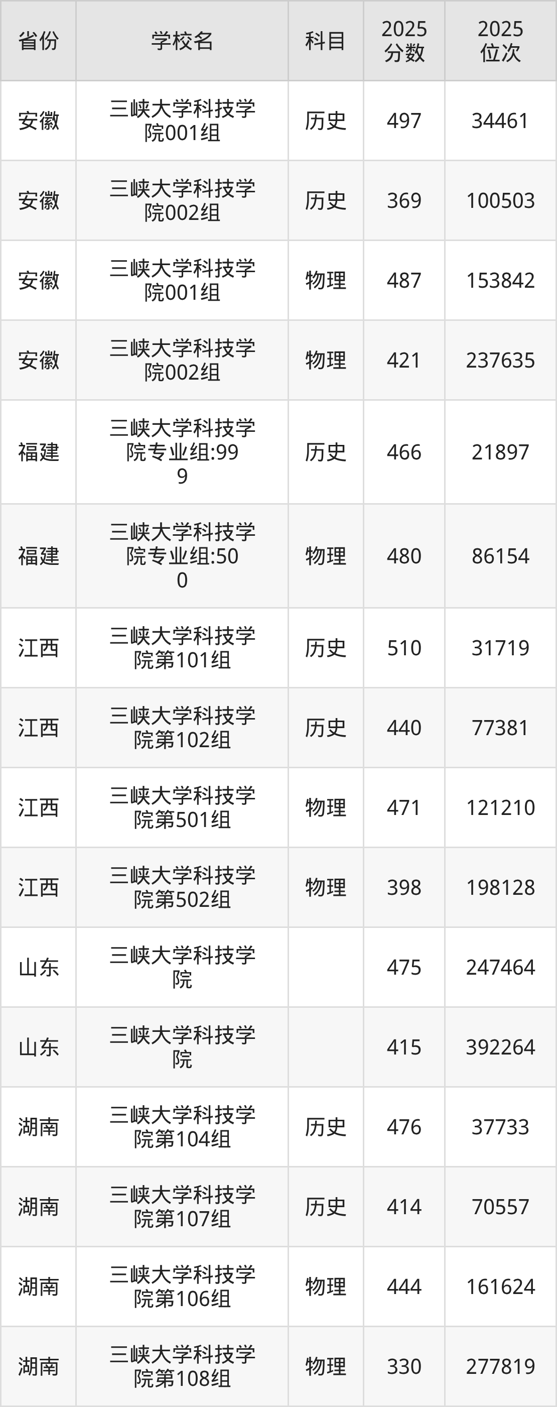 下面是三峡大学科技学院2025年录取分数线各省汇总,一起来了解下吧。