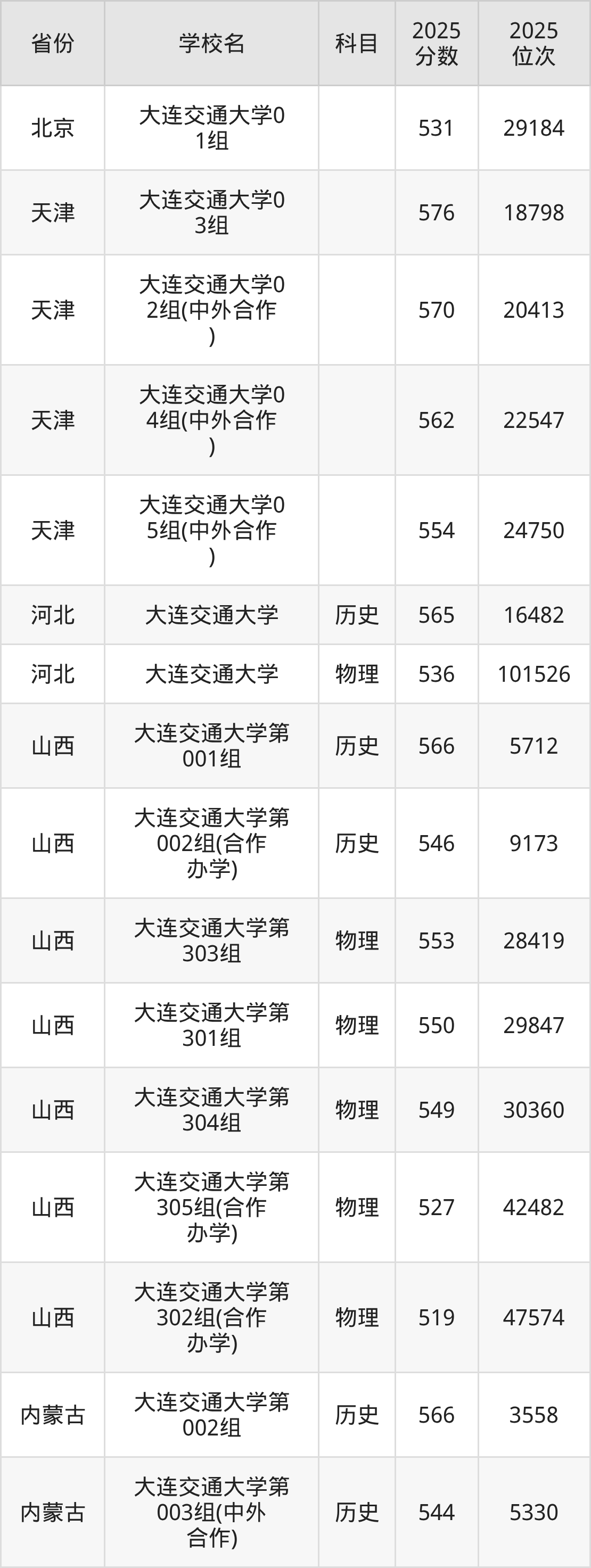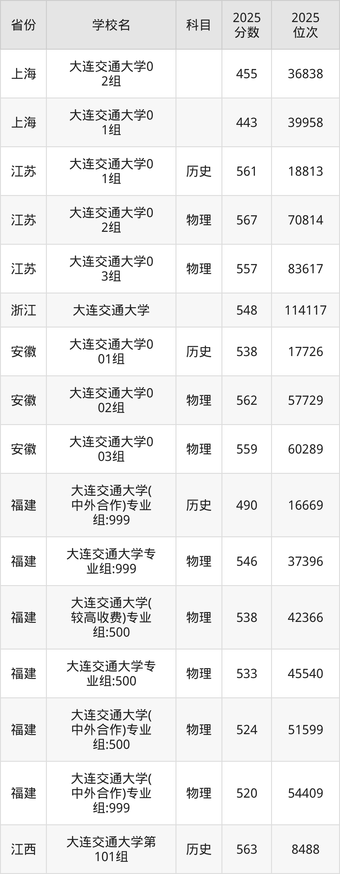 下面是大连交通大学2025年录取分数线各省汇总,一起来了解下吧。