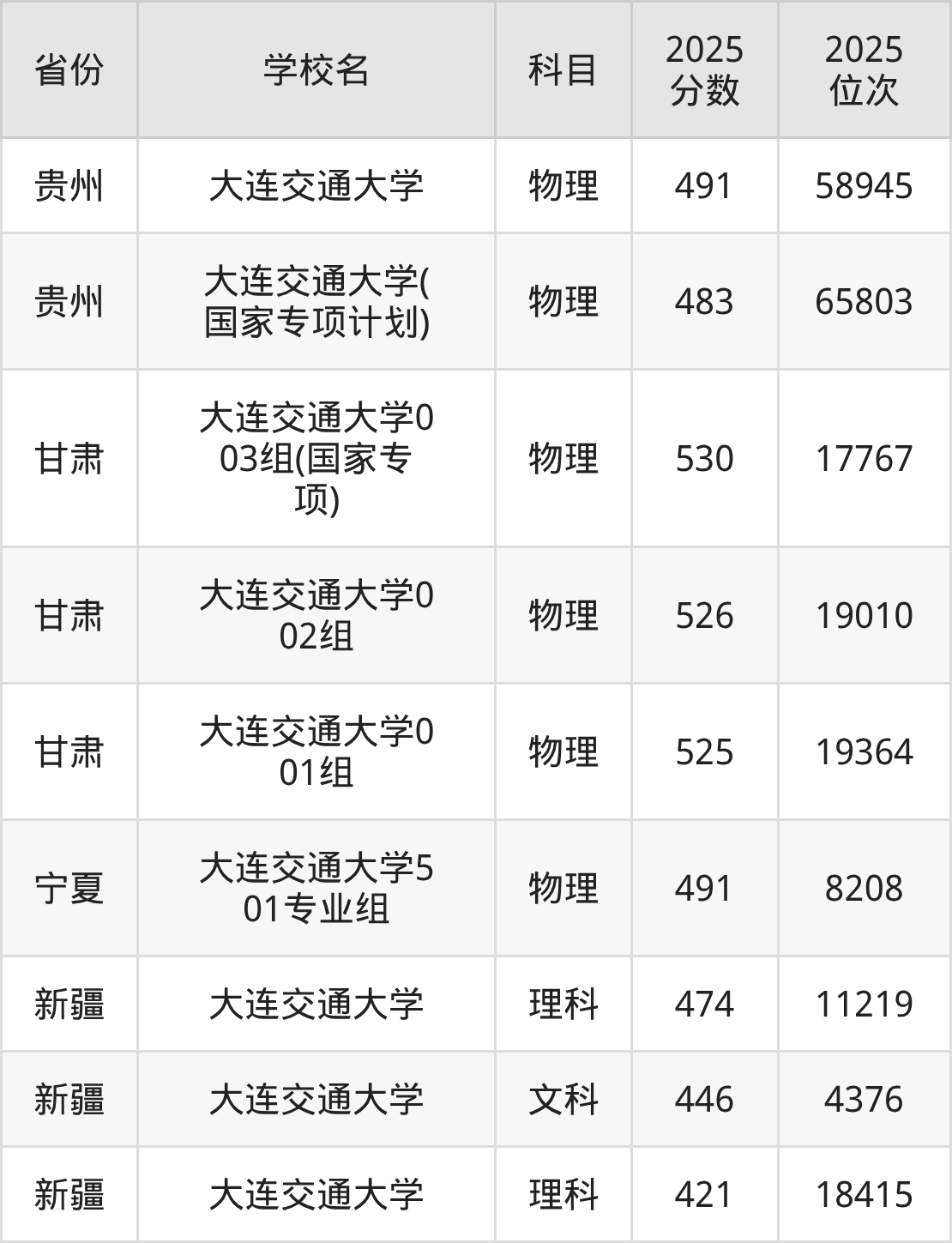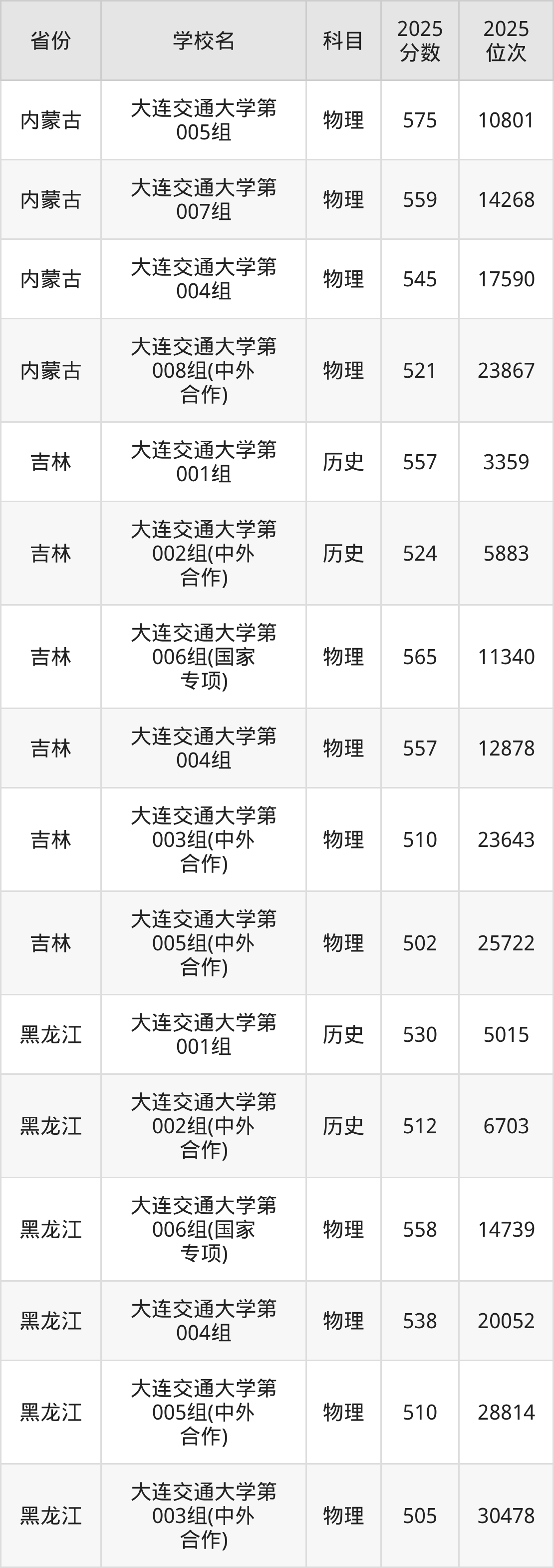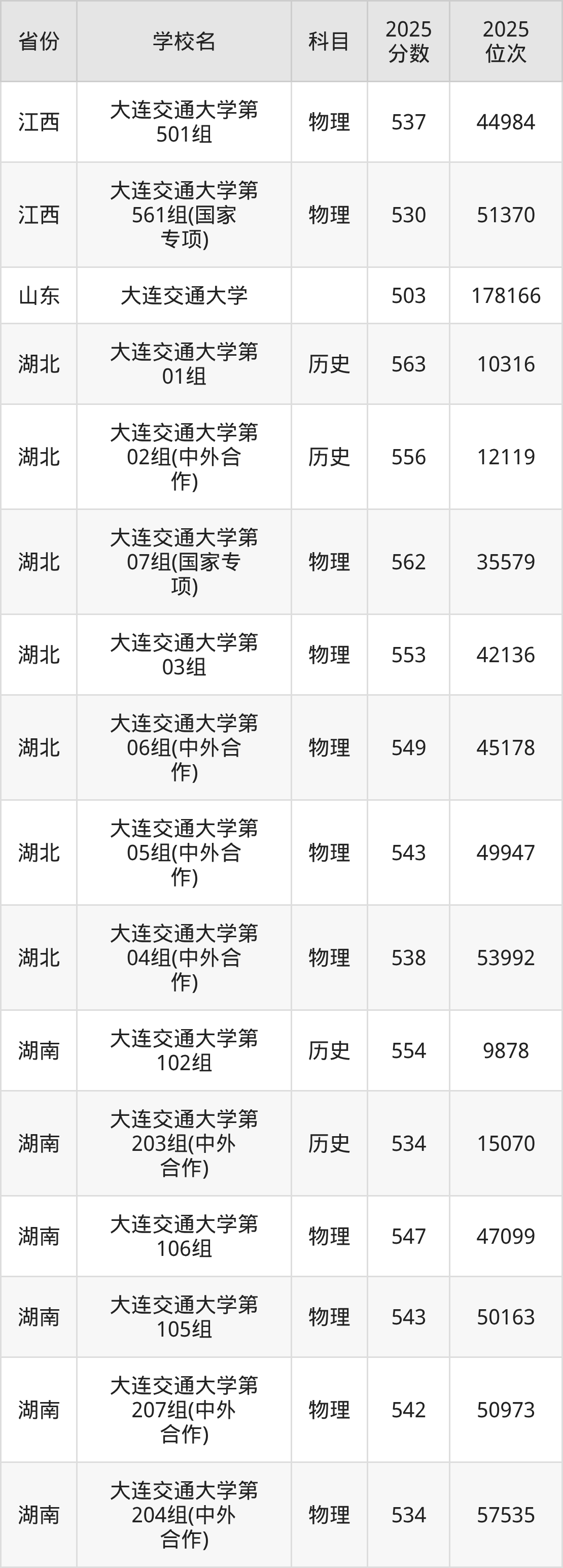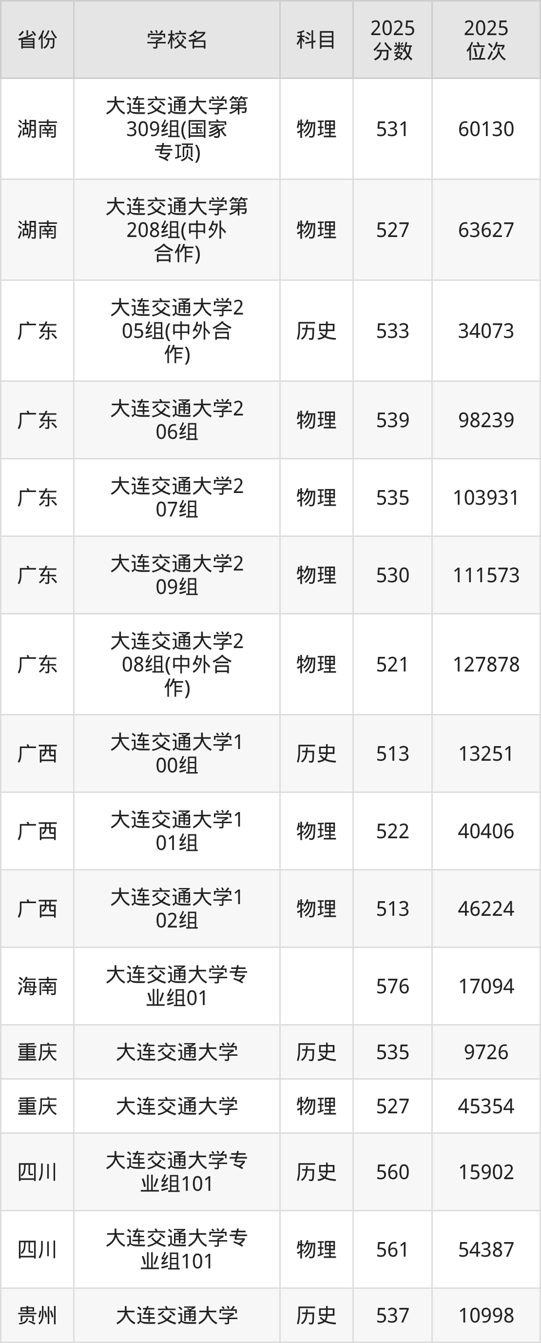 2025年大连交通大学历史类最低分509分(13322名)、物理类最低分467分(73184名)。