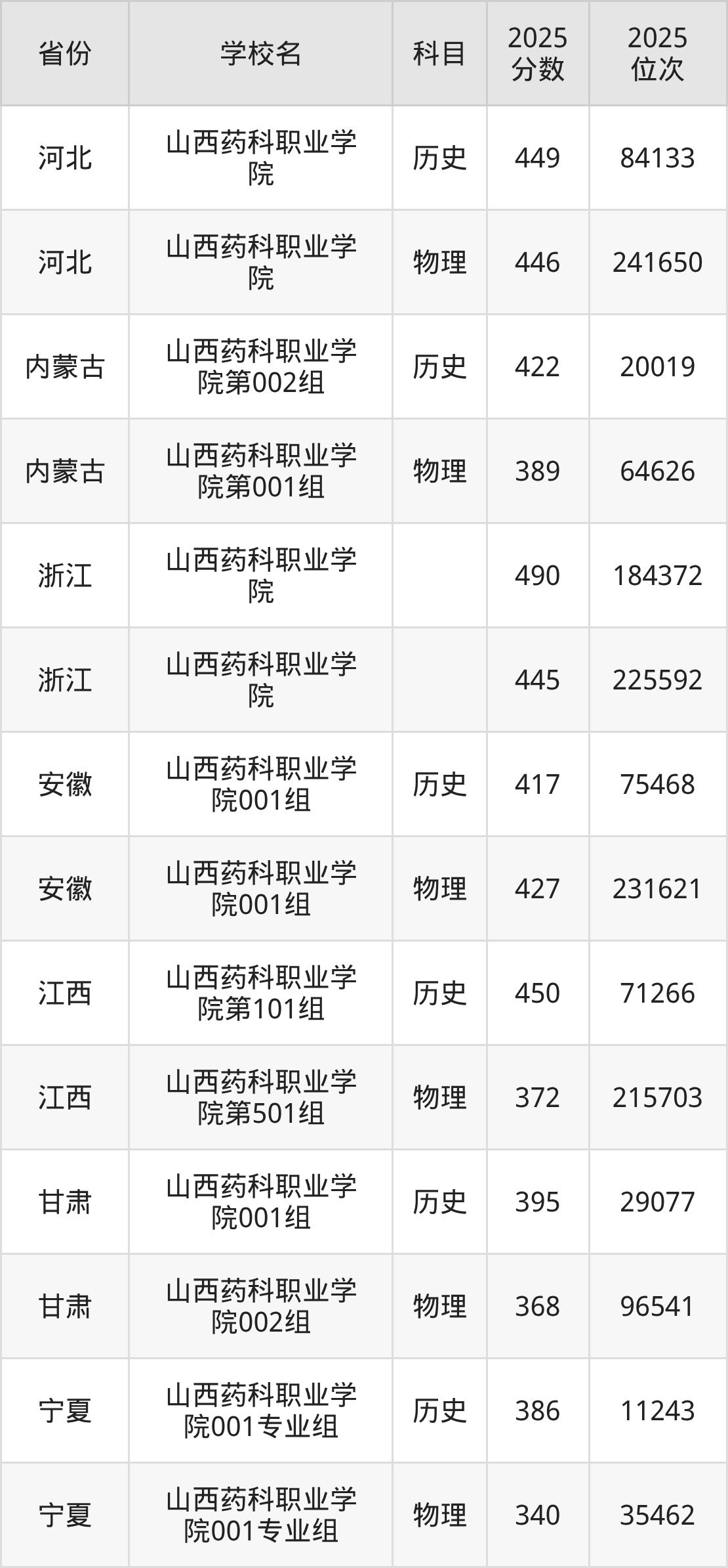 下面是山西药科职业学院2025年录取分数线各省汇总,一起来了解下吧。