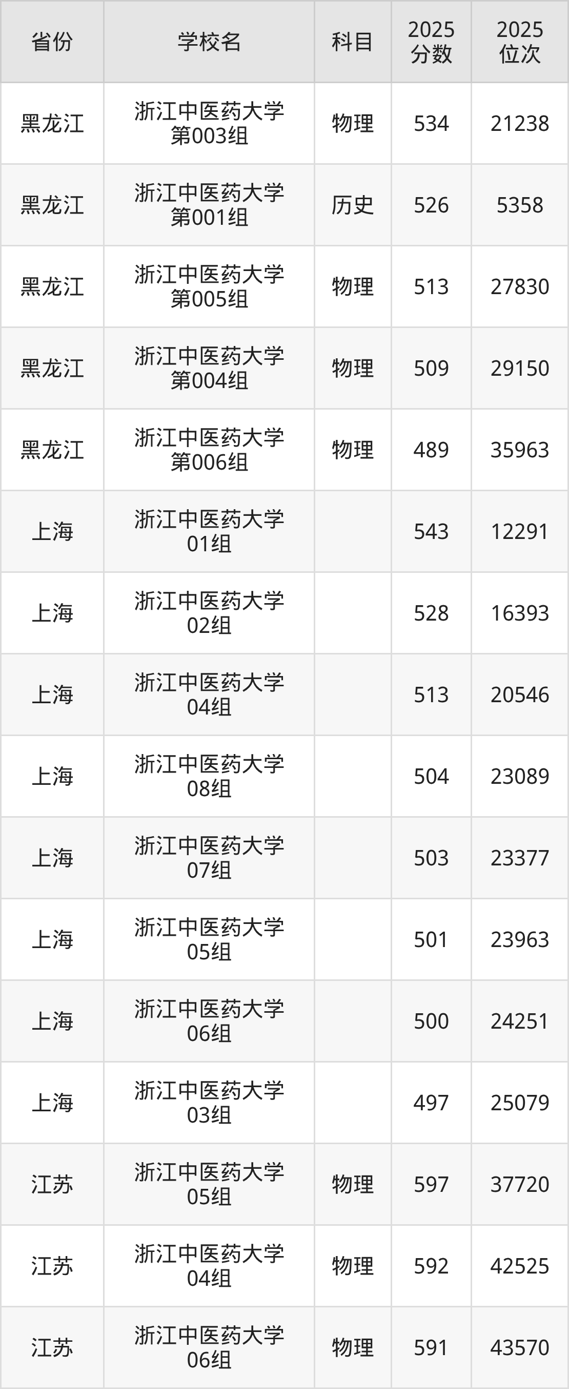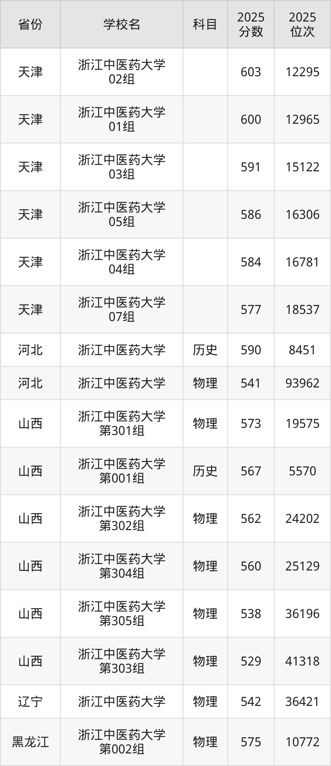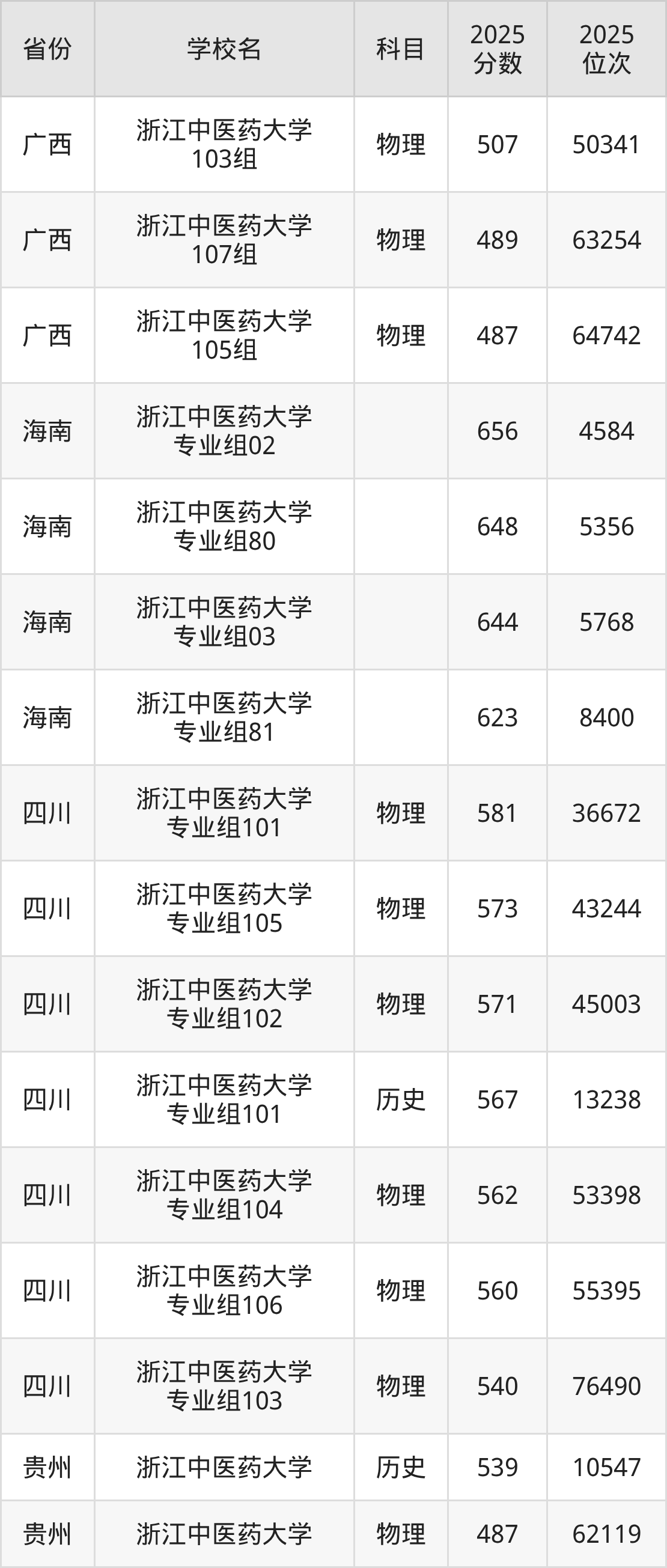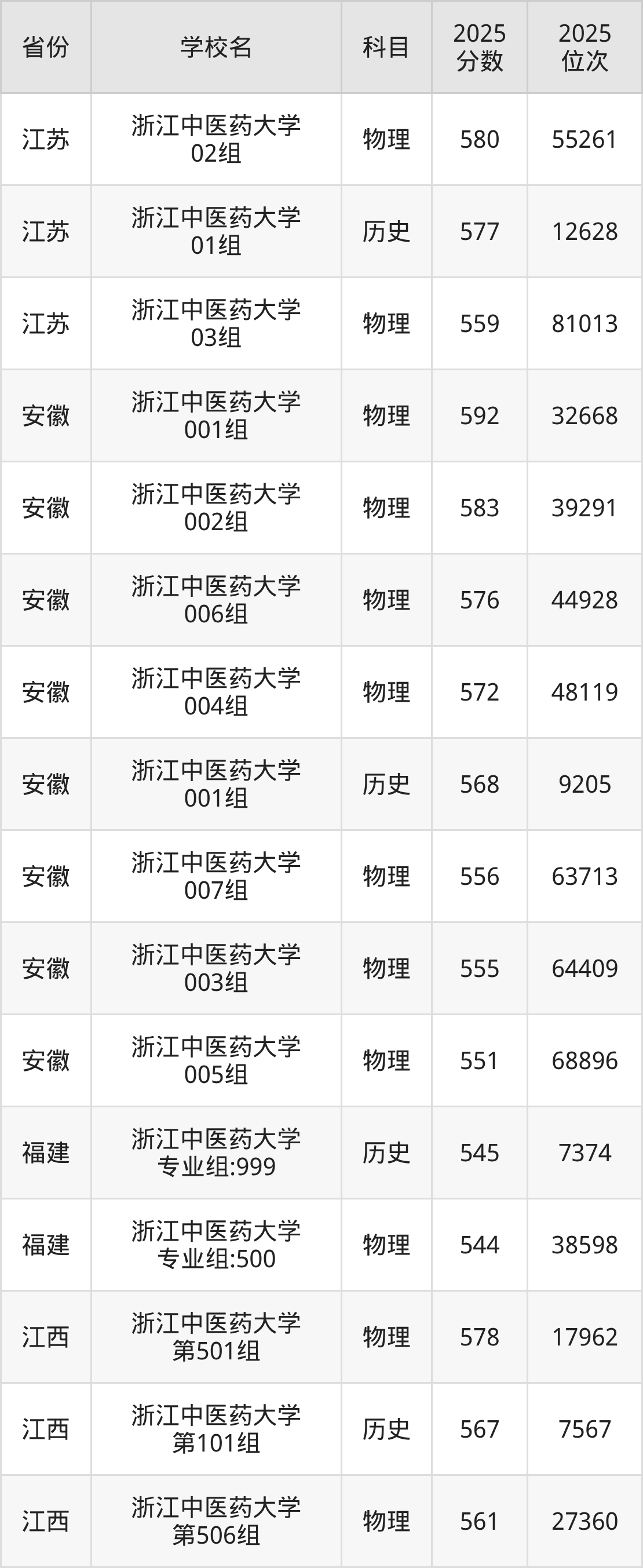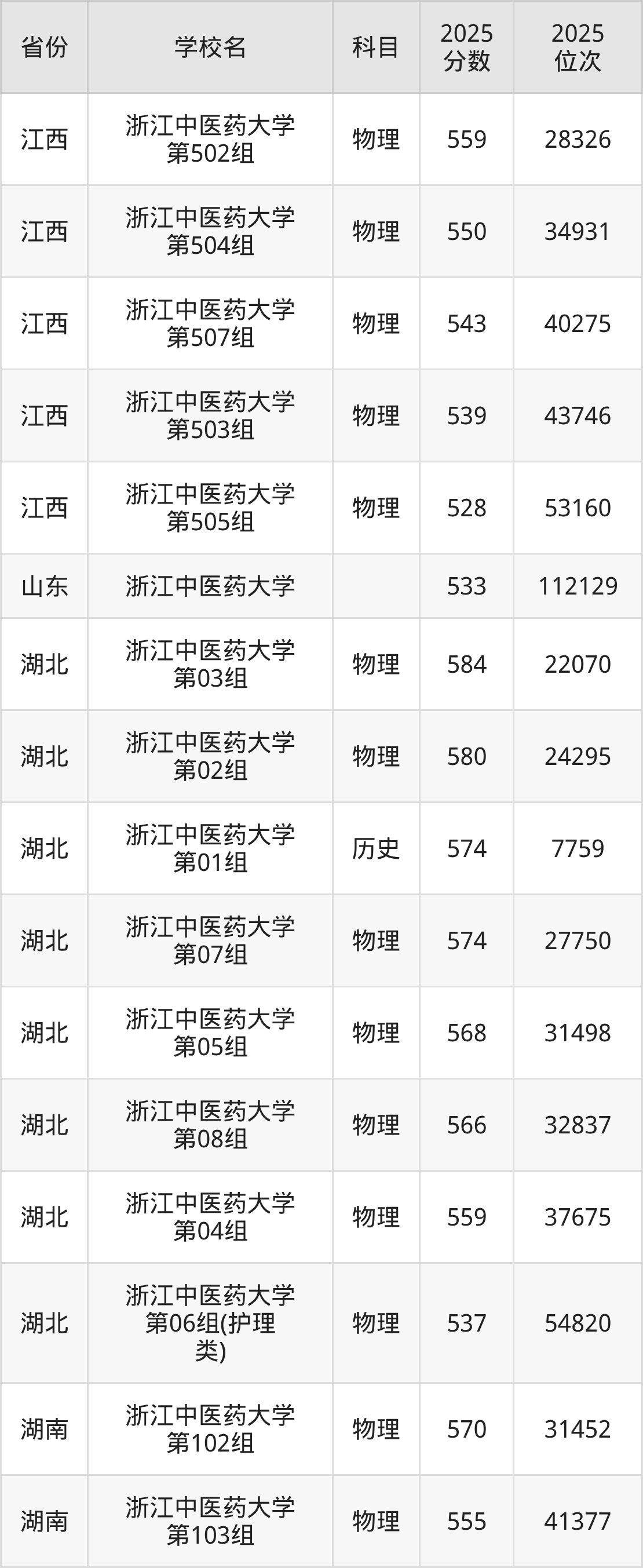 下面是浙江中医药大学2025年录取分数线各省汇总,一起来了解下吧。