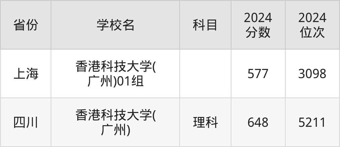 2024年香港科技大学(广州)在省外录取分数线范围整体位于577分到648分之间,录取分数线最低在上海(01组)、录取分数线最高在四川理科。