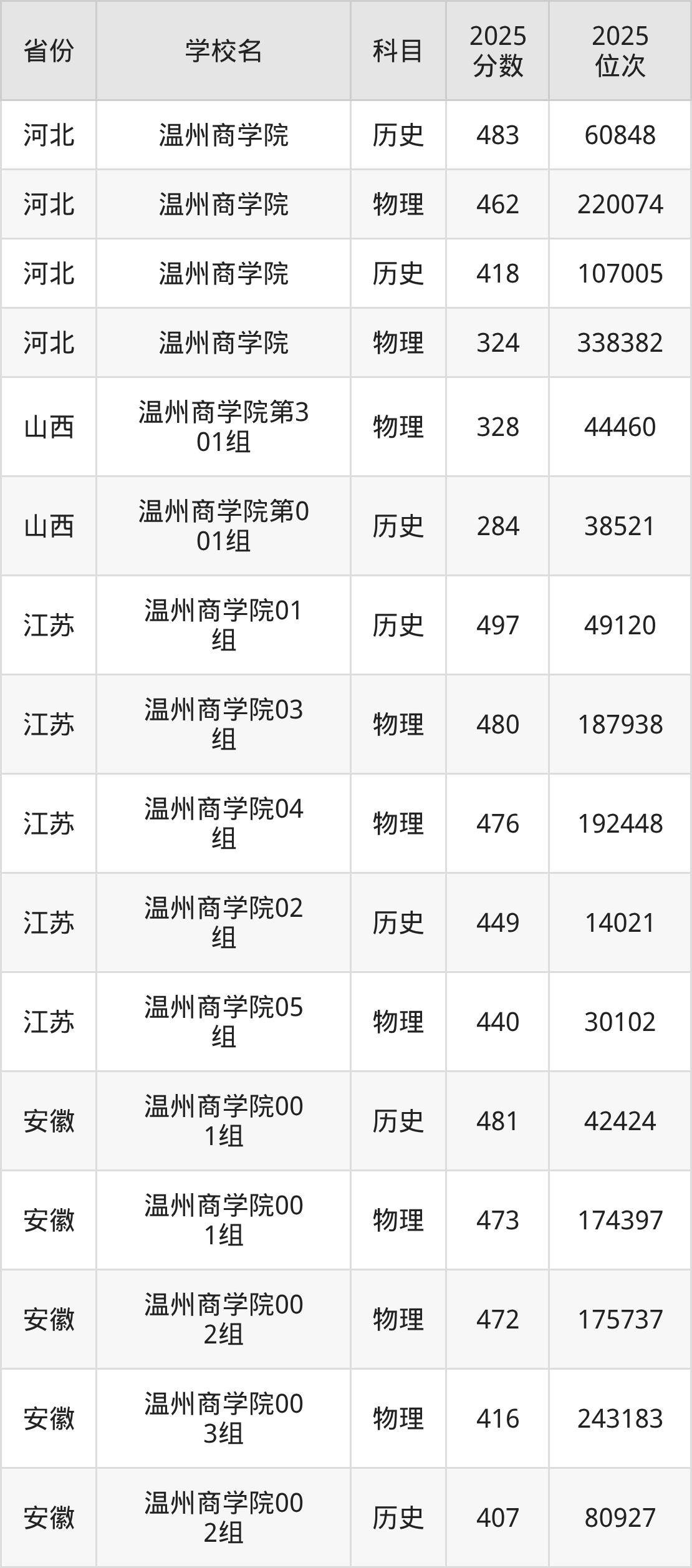 | 温州商学院 | 490 | 184372 |