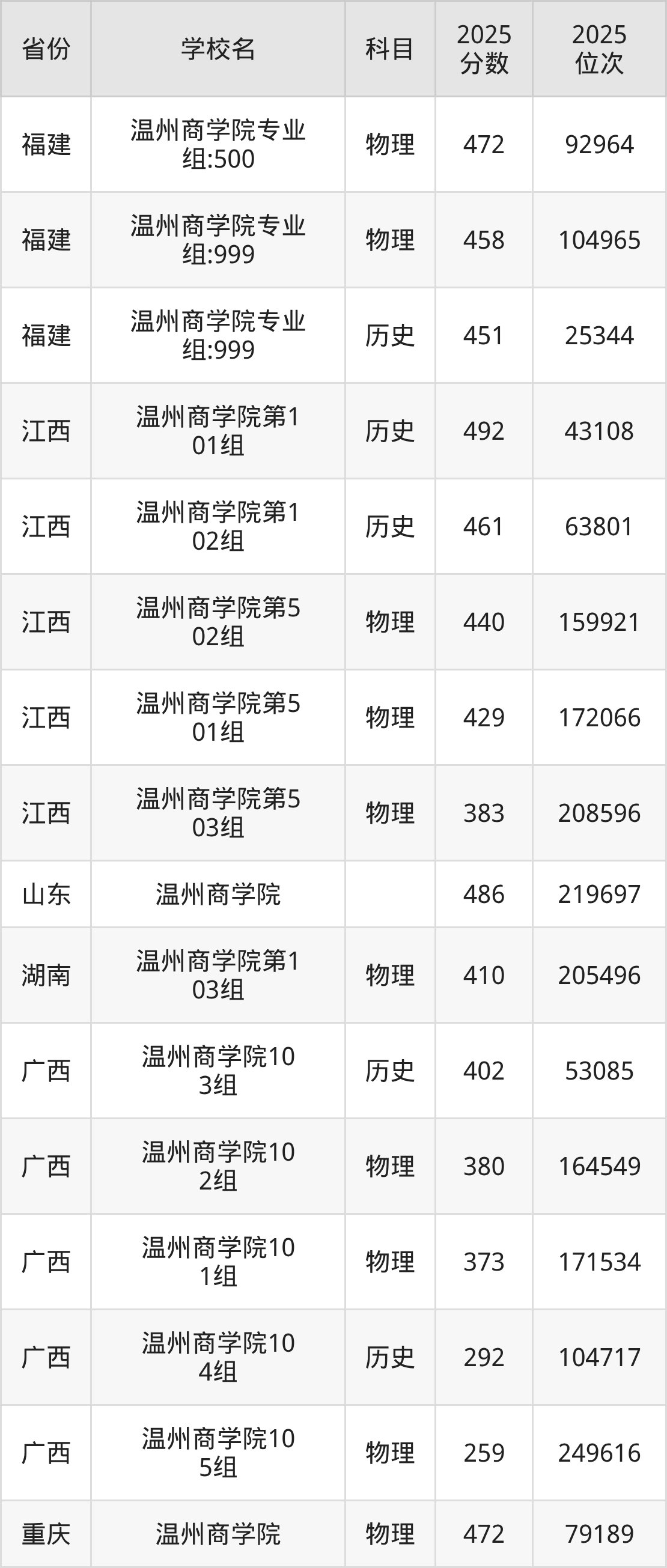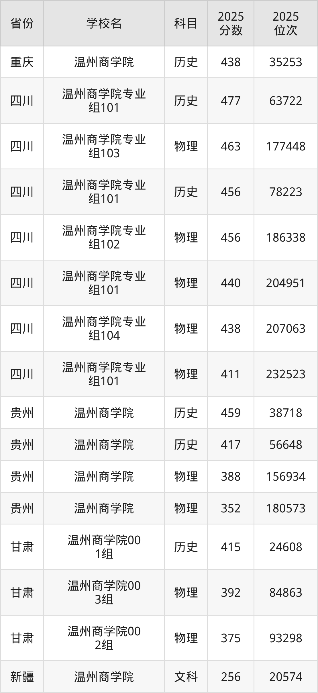 2025年温州商学院最低分379分(264112名)。