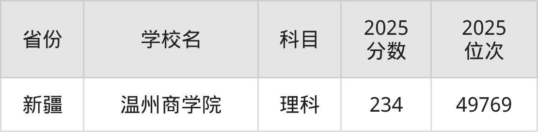 2026年温州商学院录取分数线预计在410分及以上,在各省录取最低分存在一定差异,如:2025年温州商学院在新疆录取最低文科256分、理科234分,在湖南录取最低物理类410分,在河北录取最低历史类418分、物理类324分。