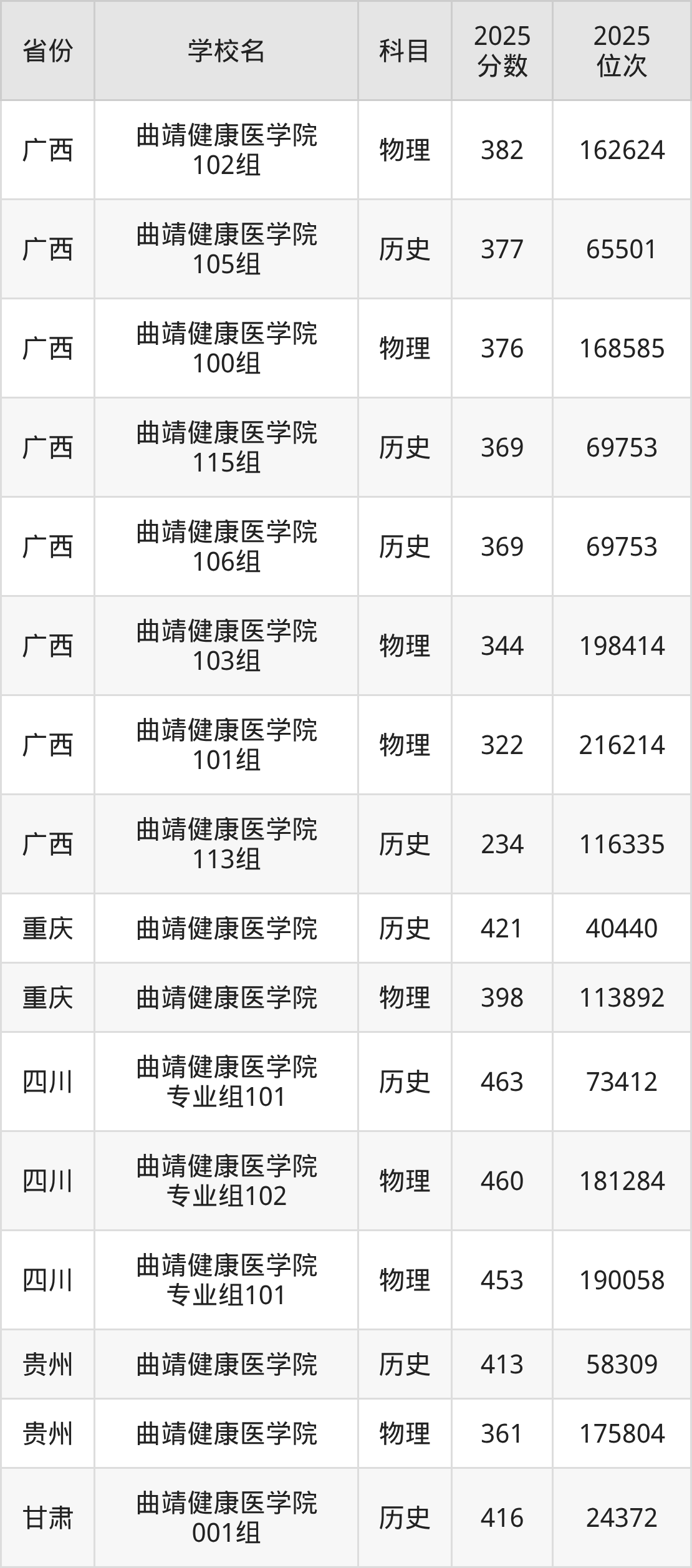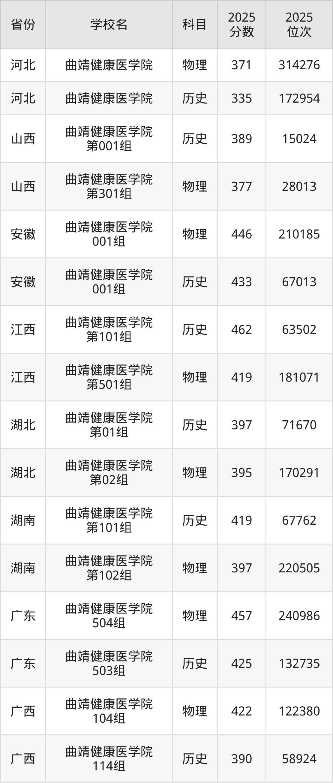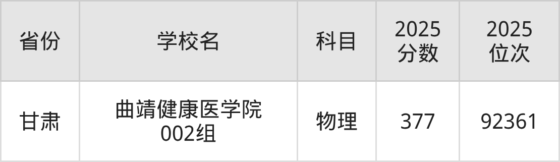 下面是曲靖健康医学院2025年录取分数线各省汇总,一起来了解下吧。