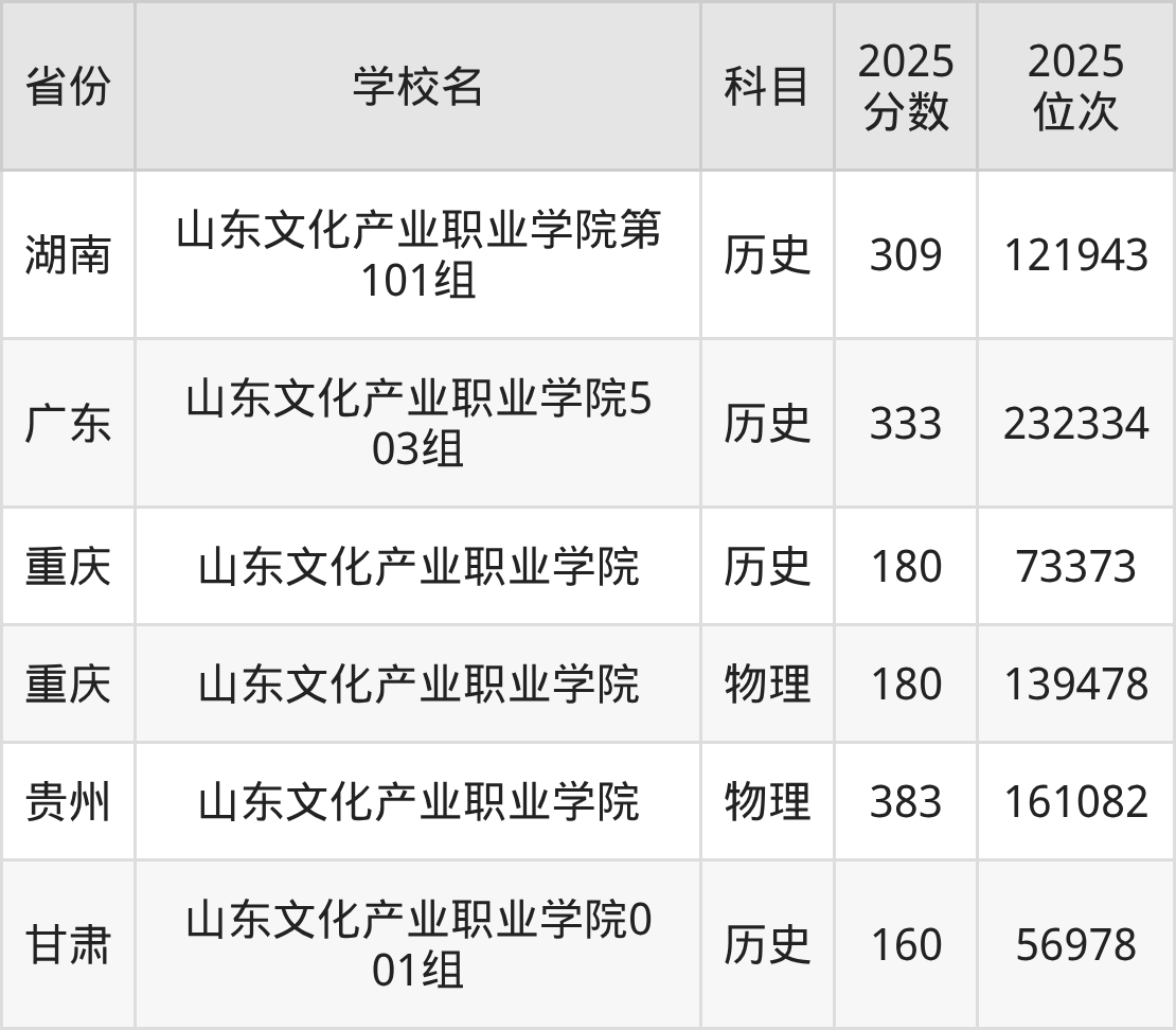 下面是山东文化产业职业学院2025年录取分数线各省汇总,一起来了解下吧。