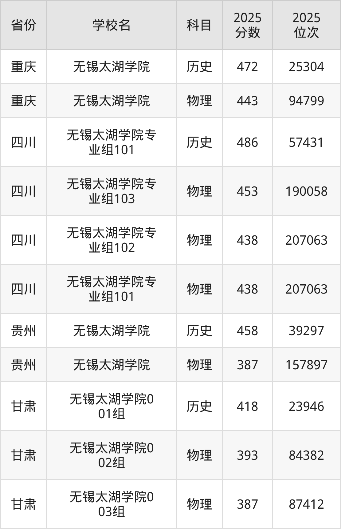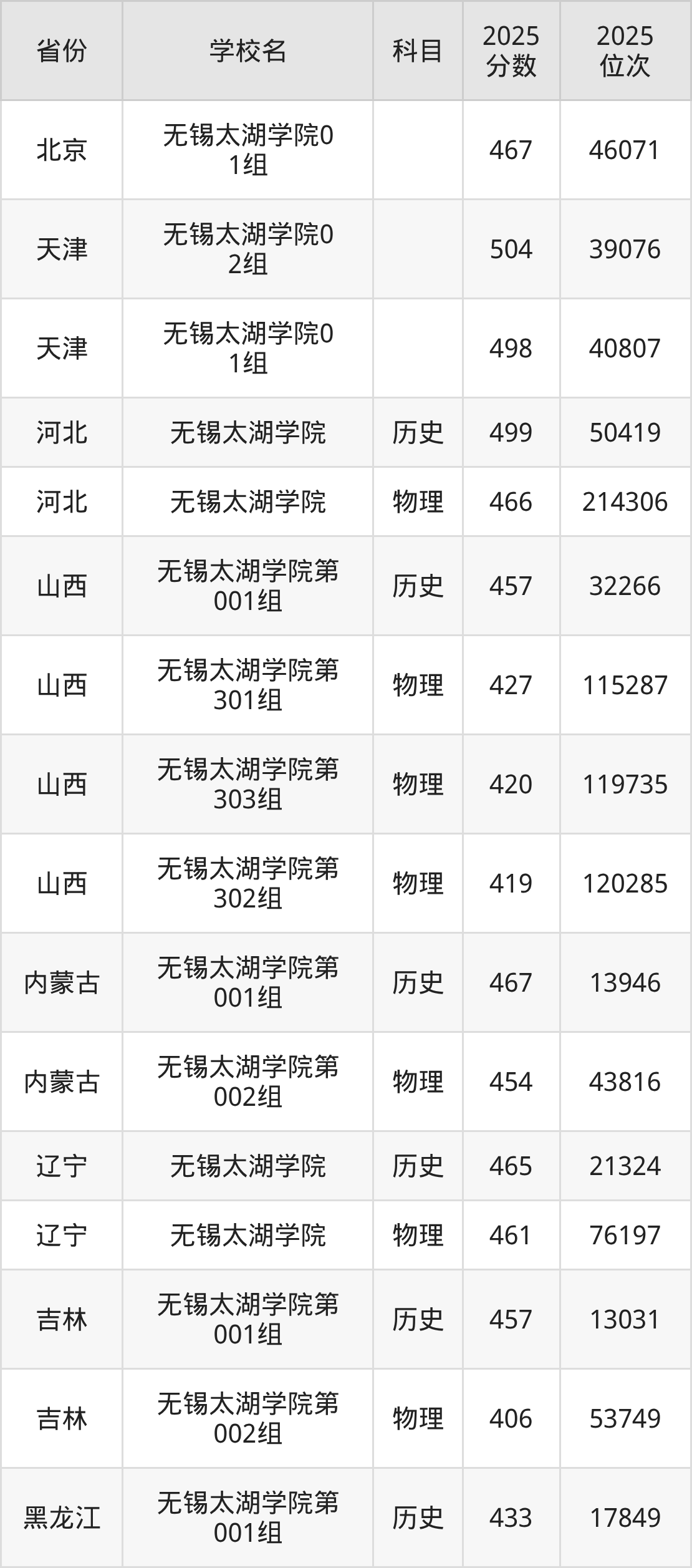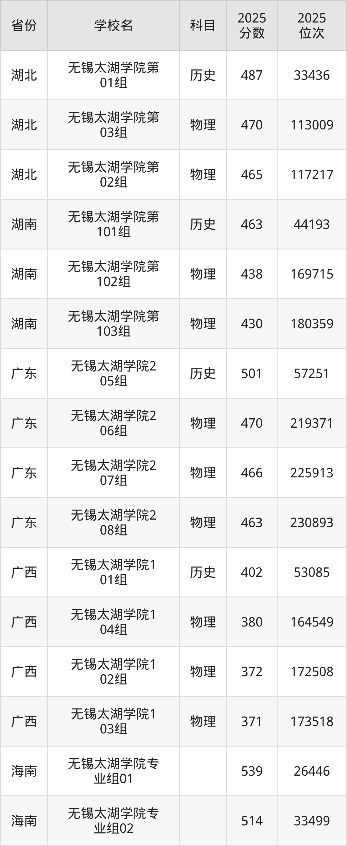 2025年无锡太湖学院历史类最低分505分(45257名)、物理类最低分463分(205975名)。