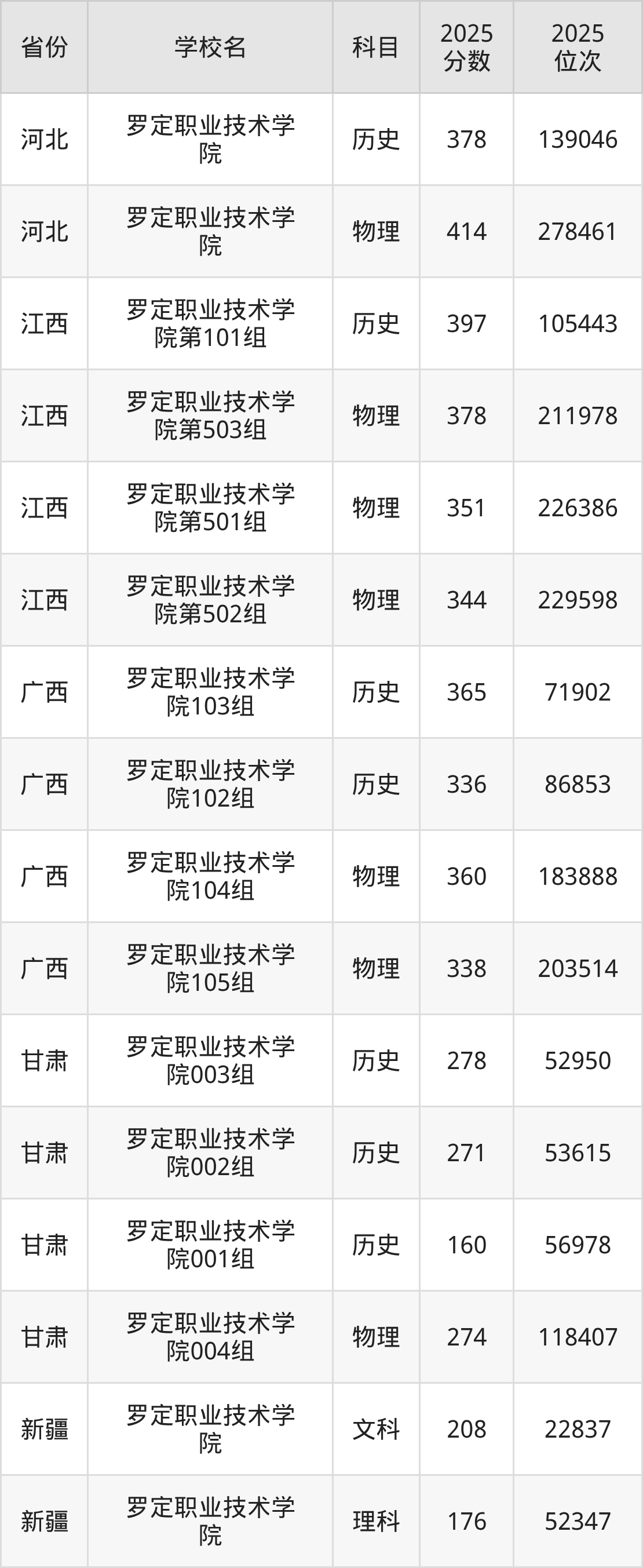 2025年罗定职业技术学院历史类最低分401分(159815名)、物理类最低分365分(360952名)。