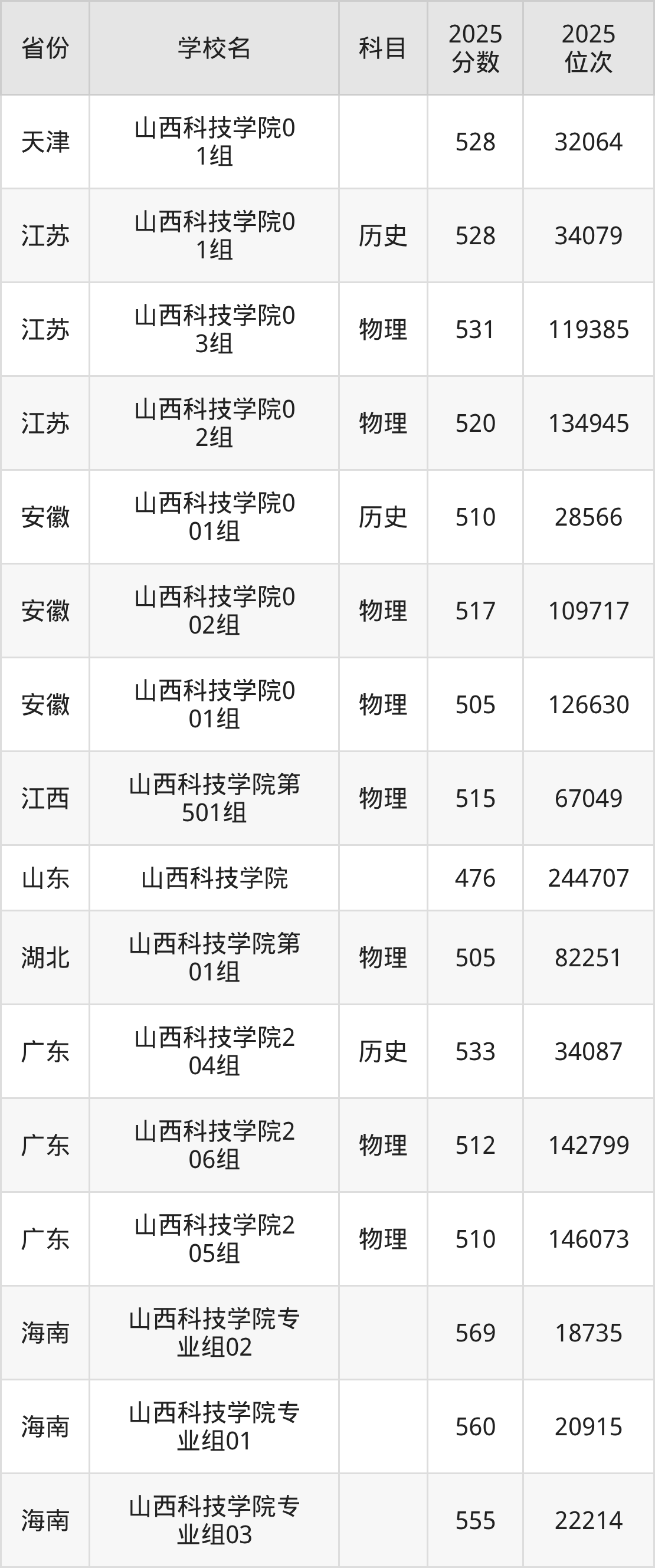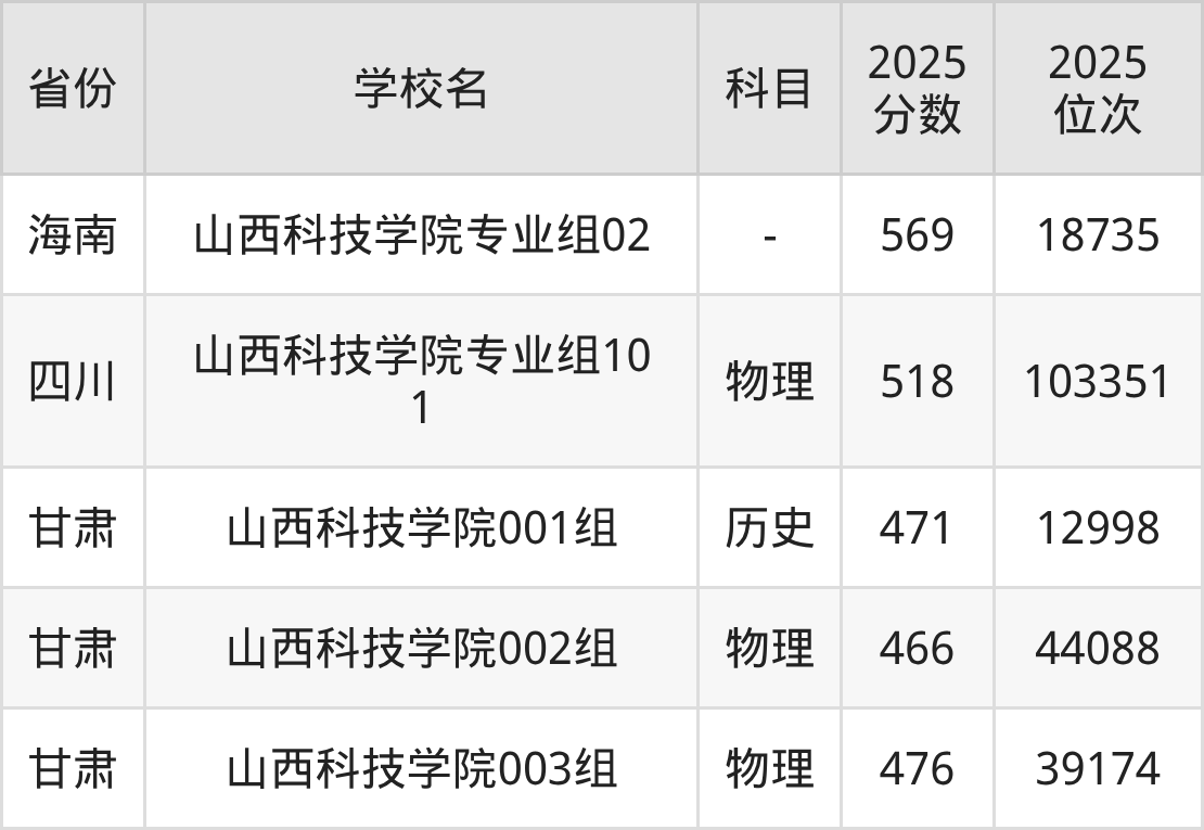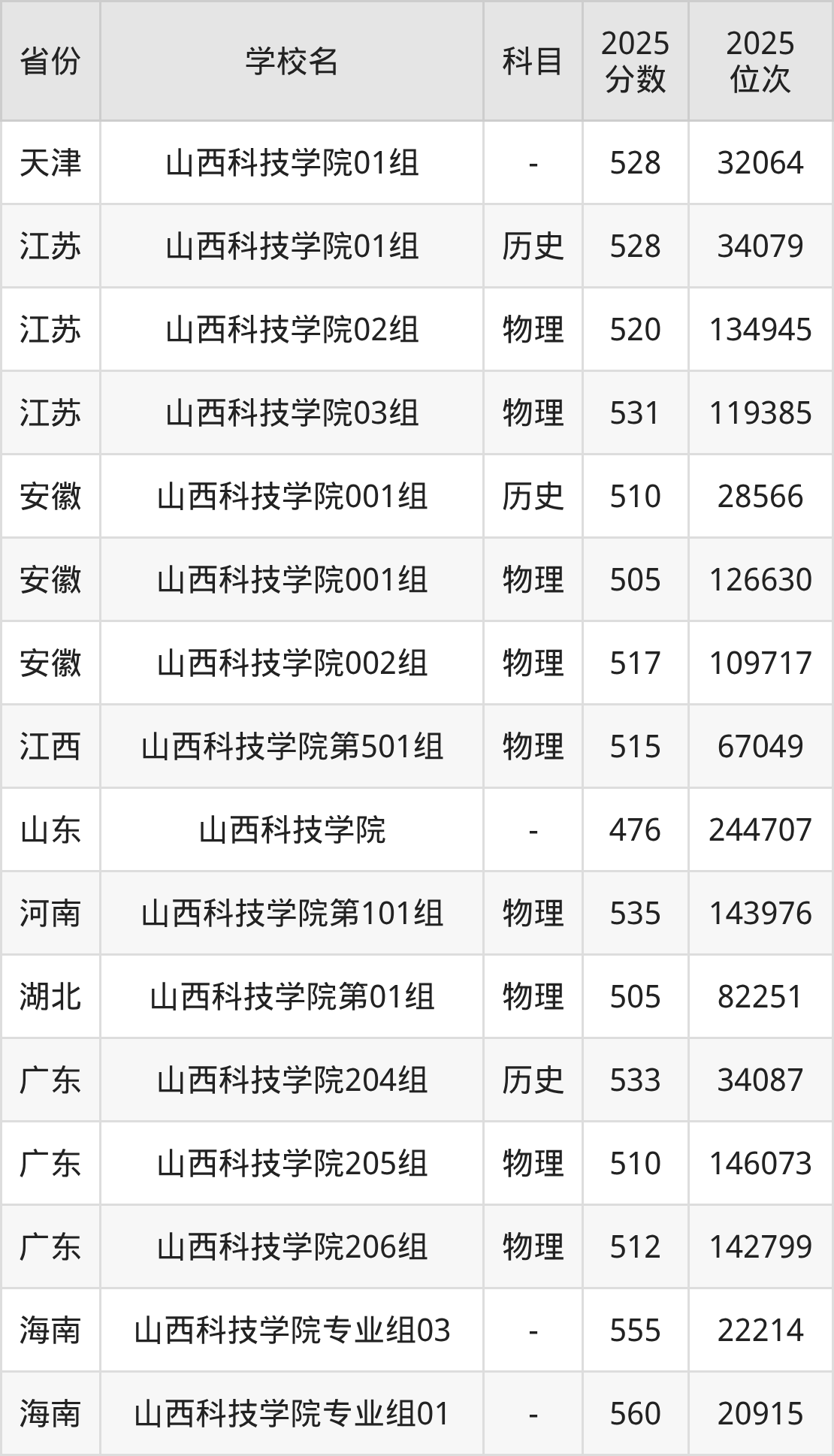 下面是山西科技学院2025年录取分数线各省汇总,一起来了解下吧。