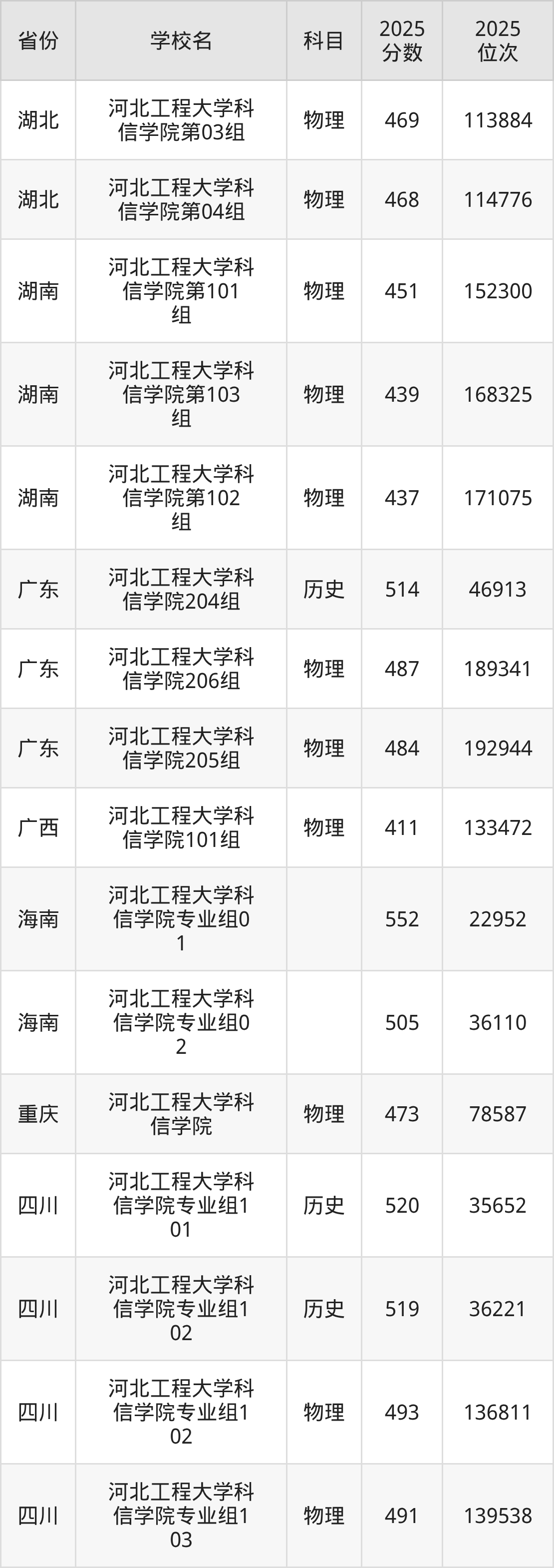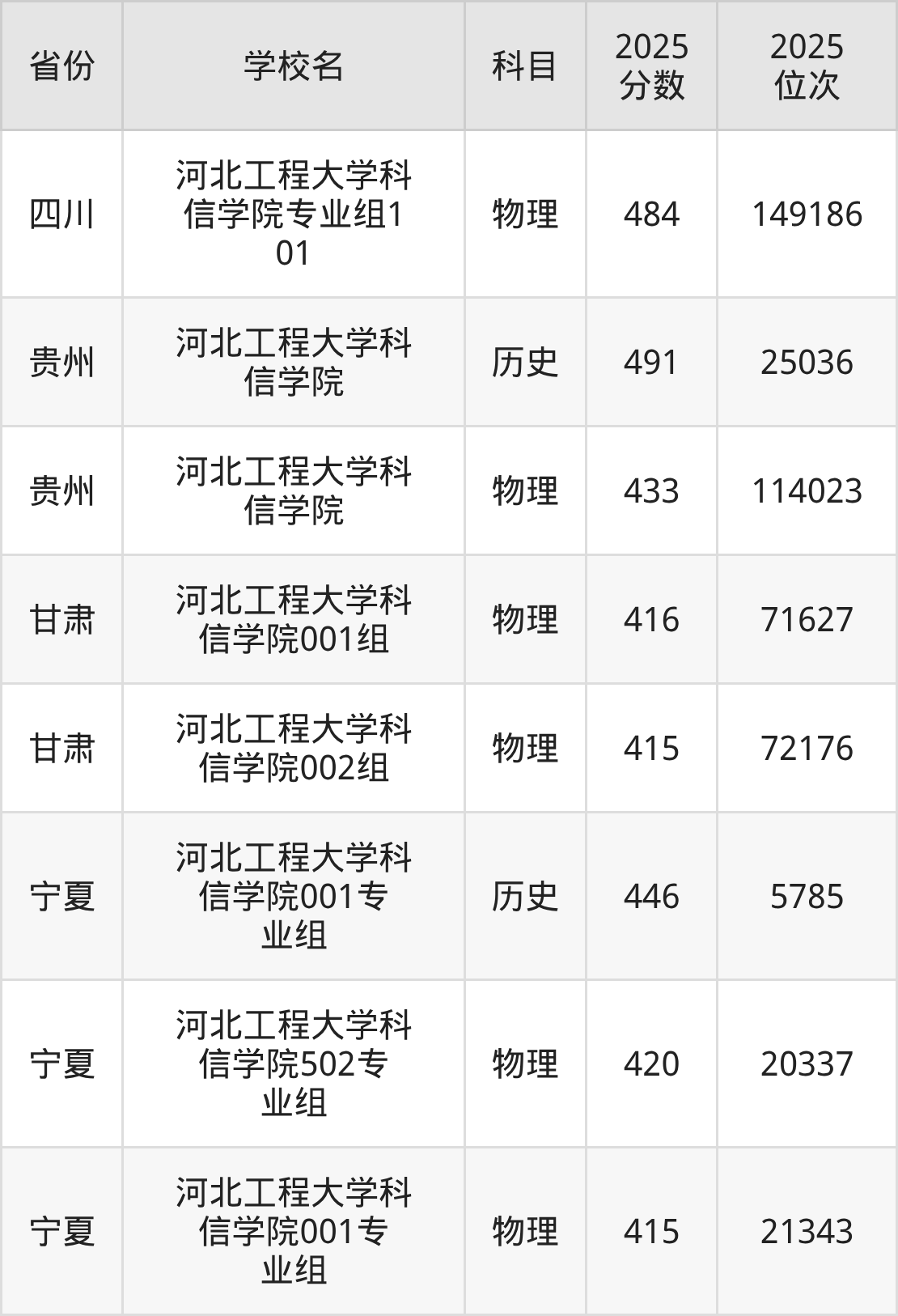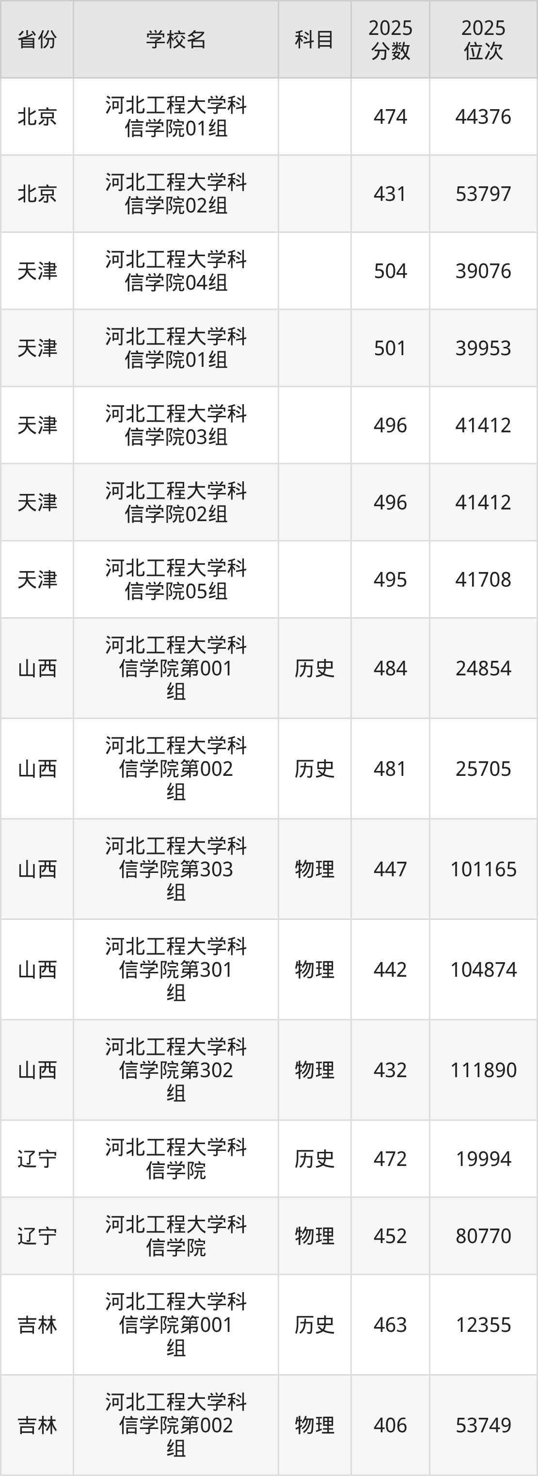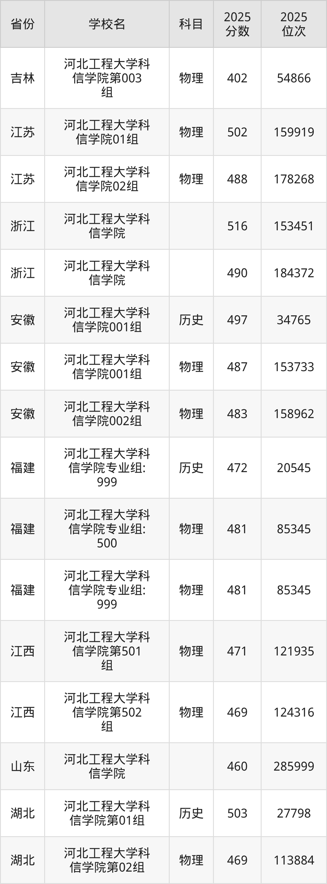 | 河北工程大学科 信学院 | 物理 | 493 | 172221 |