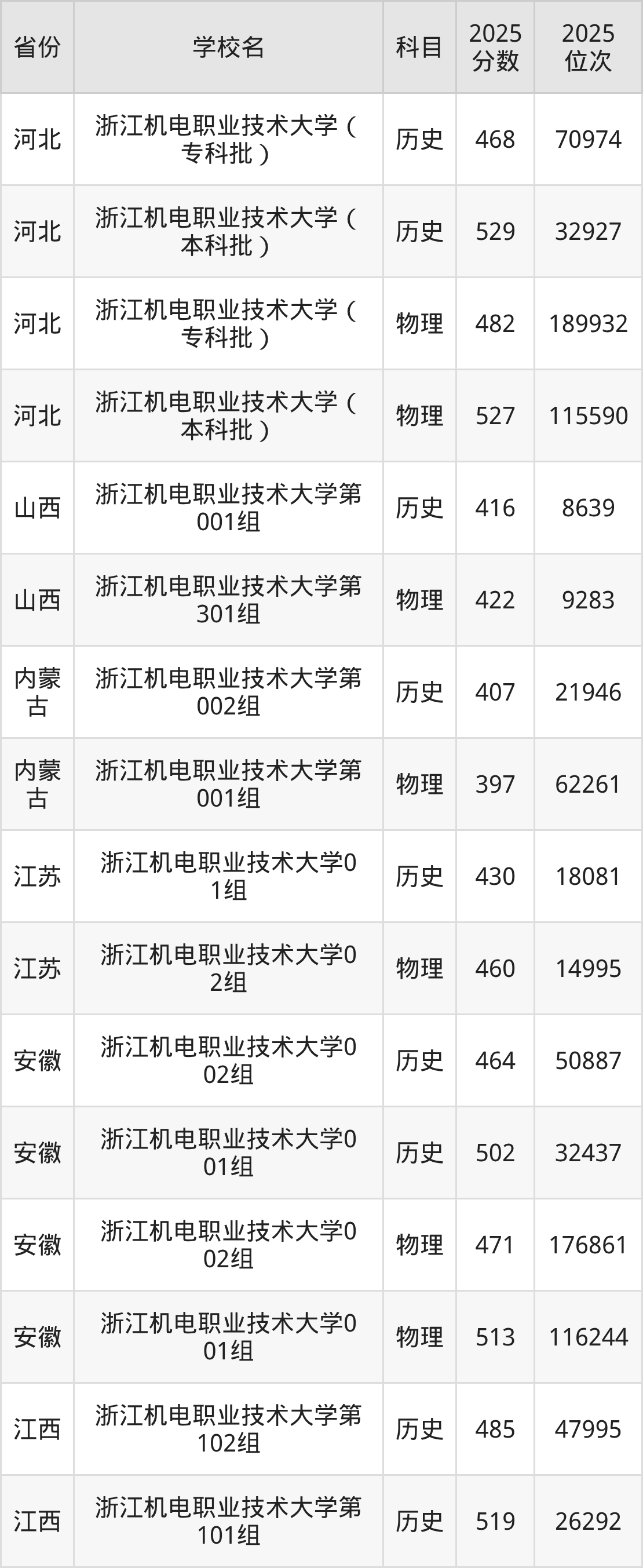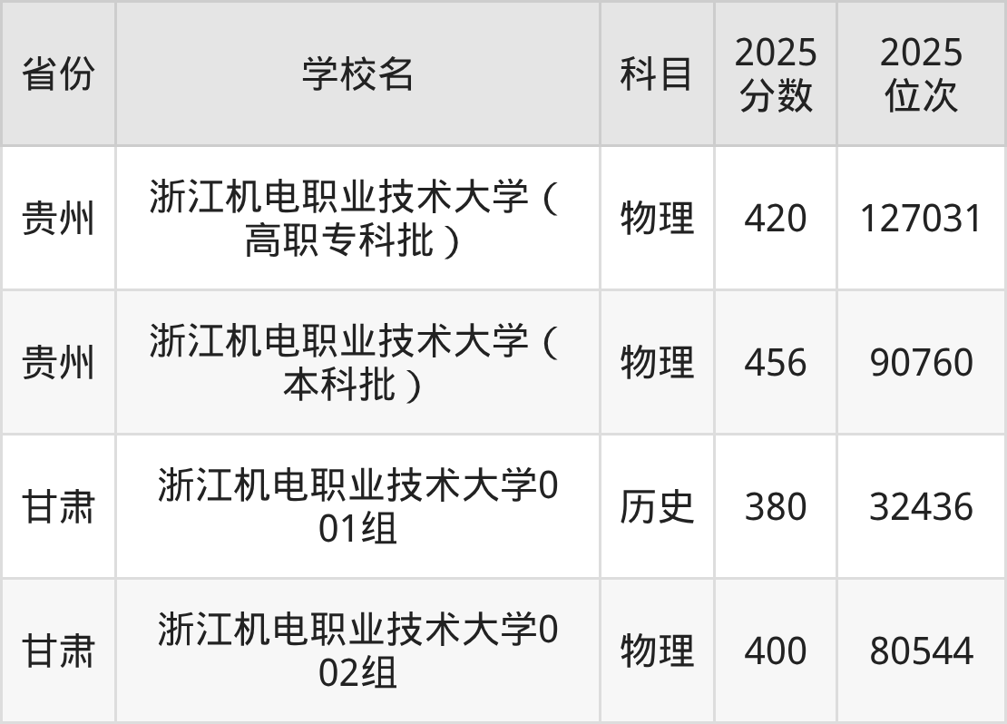 下面是浙江机电职业技术大学2025年录取分数线各省汇总,一起来了解下吧。