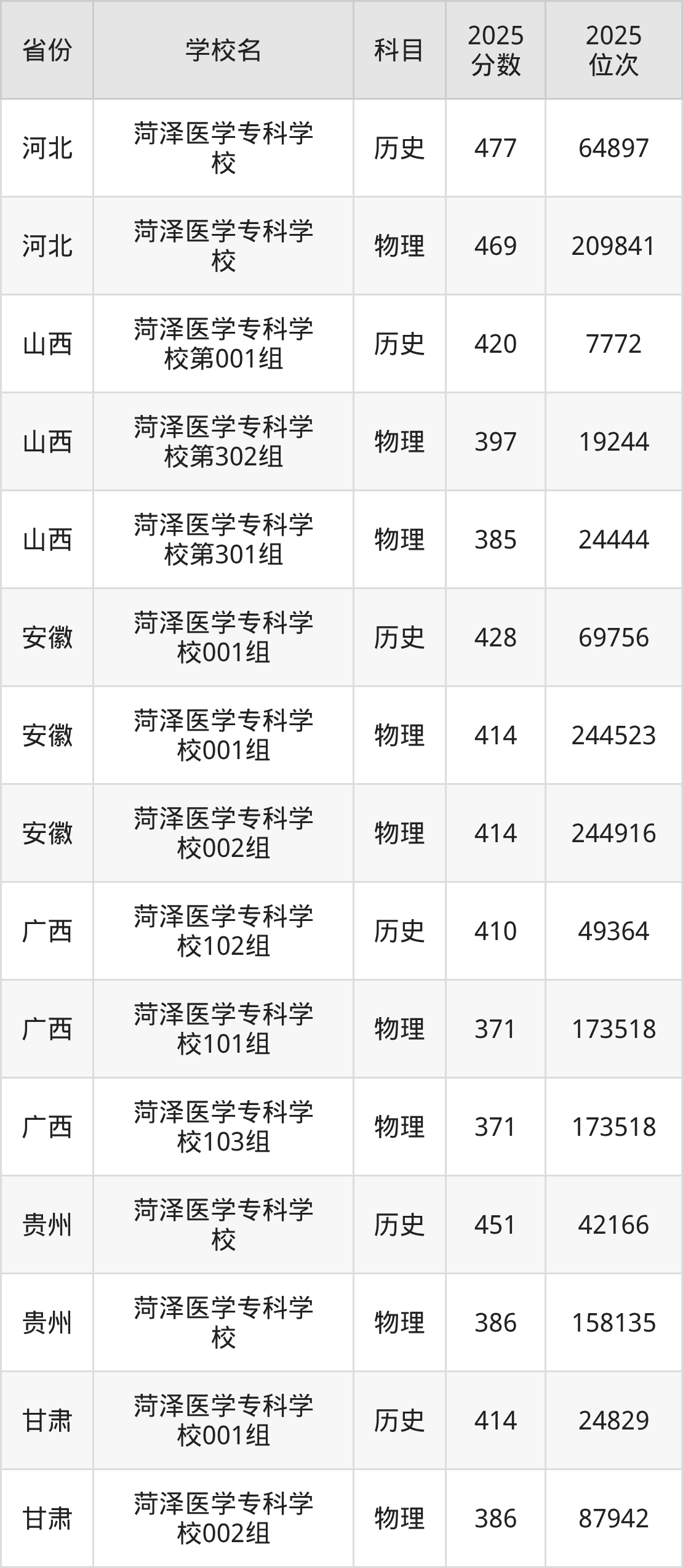下面是菏泽医学专科学校2025年录取分数线各省汇总,一起来了解下吧。