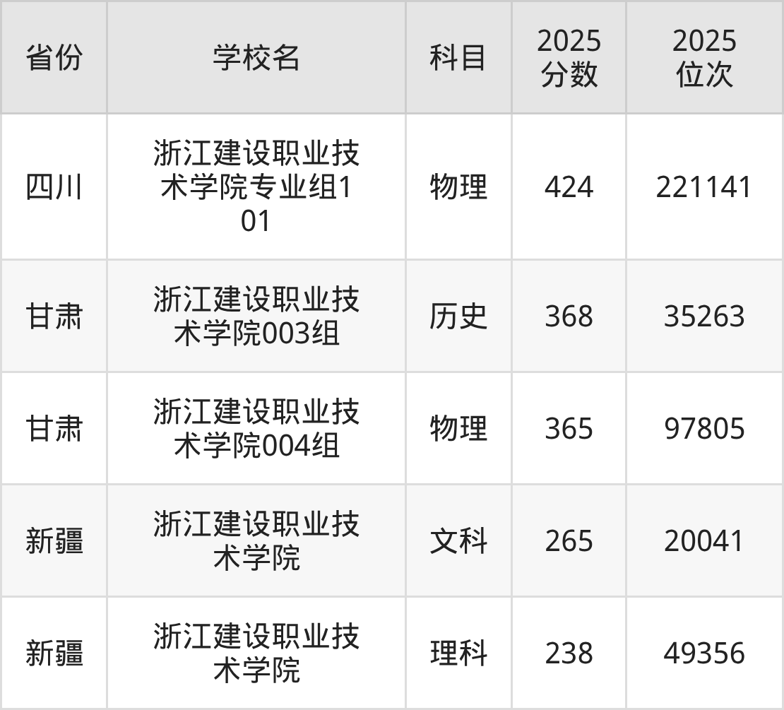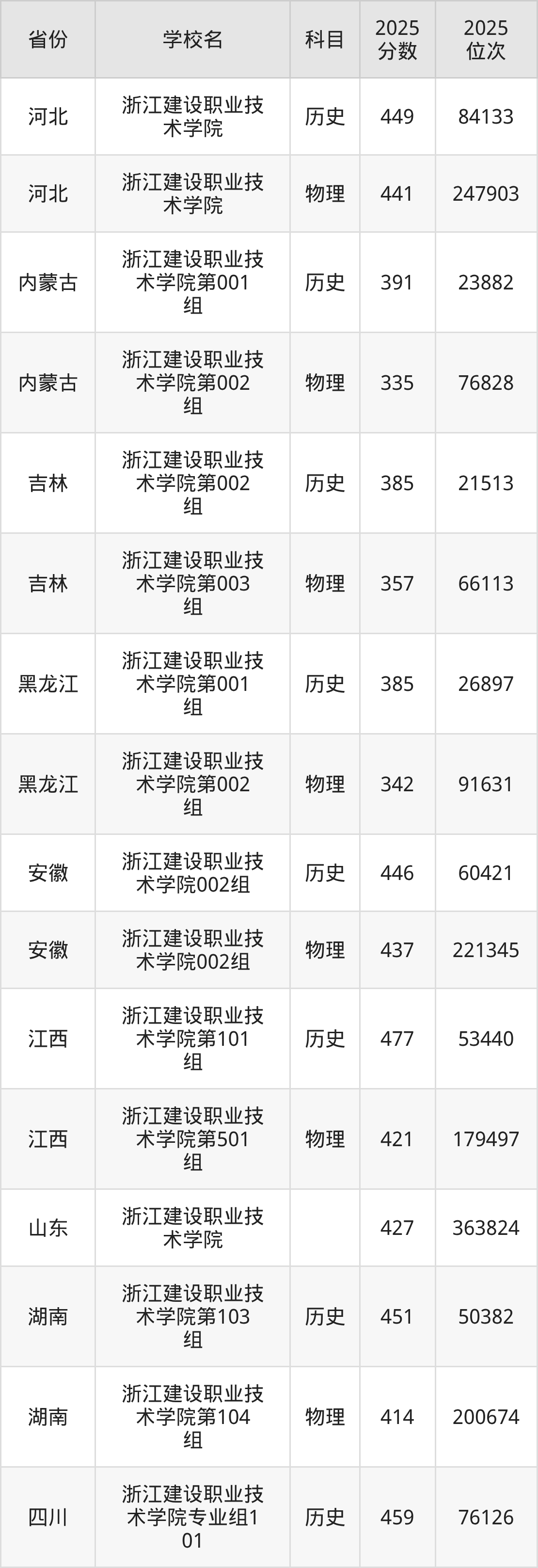 下面是浙江建设职业技术学院2025年录取分数线各省汇总,一起来了解下吧。