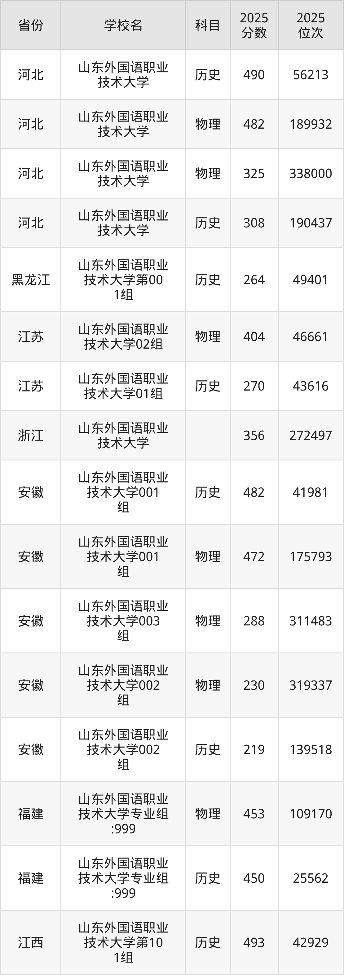 下面是山东外国语职业技术大学2025年录取分数线各省汇总,一起来了解下吧。